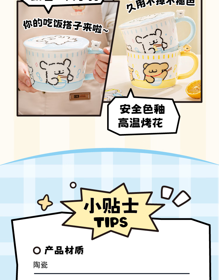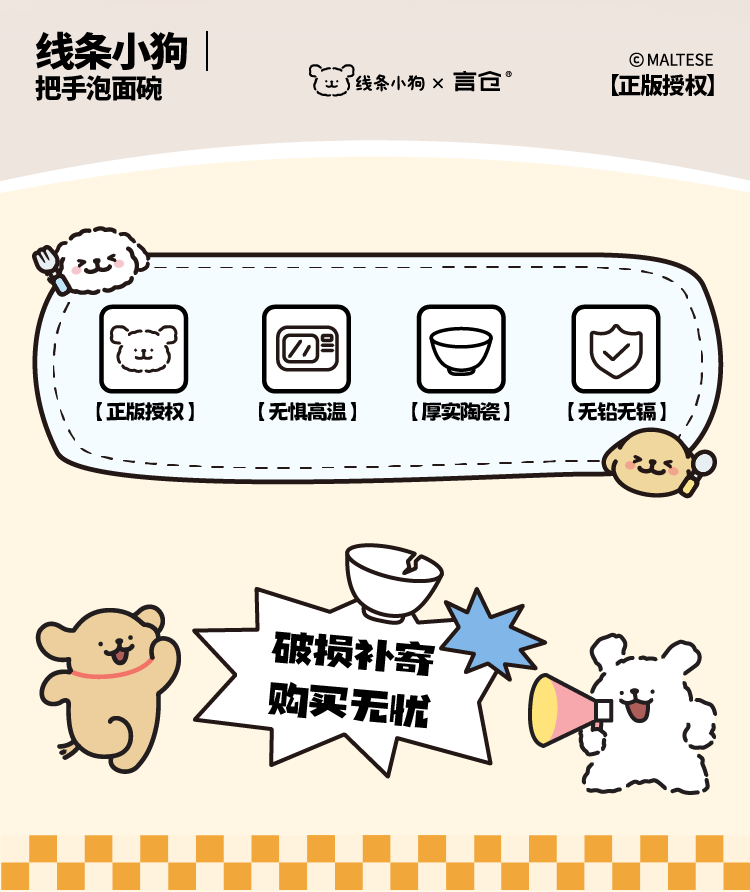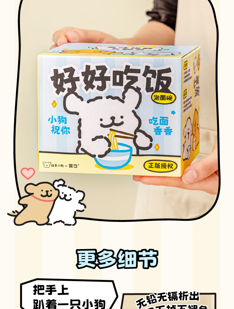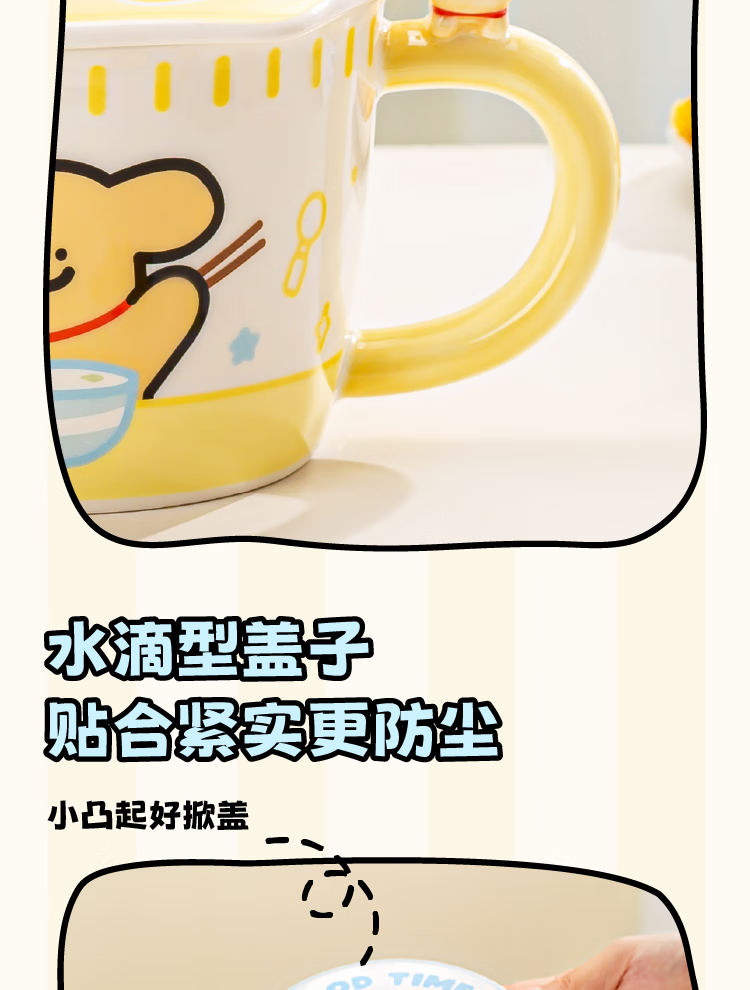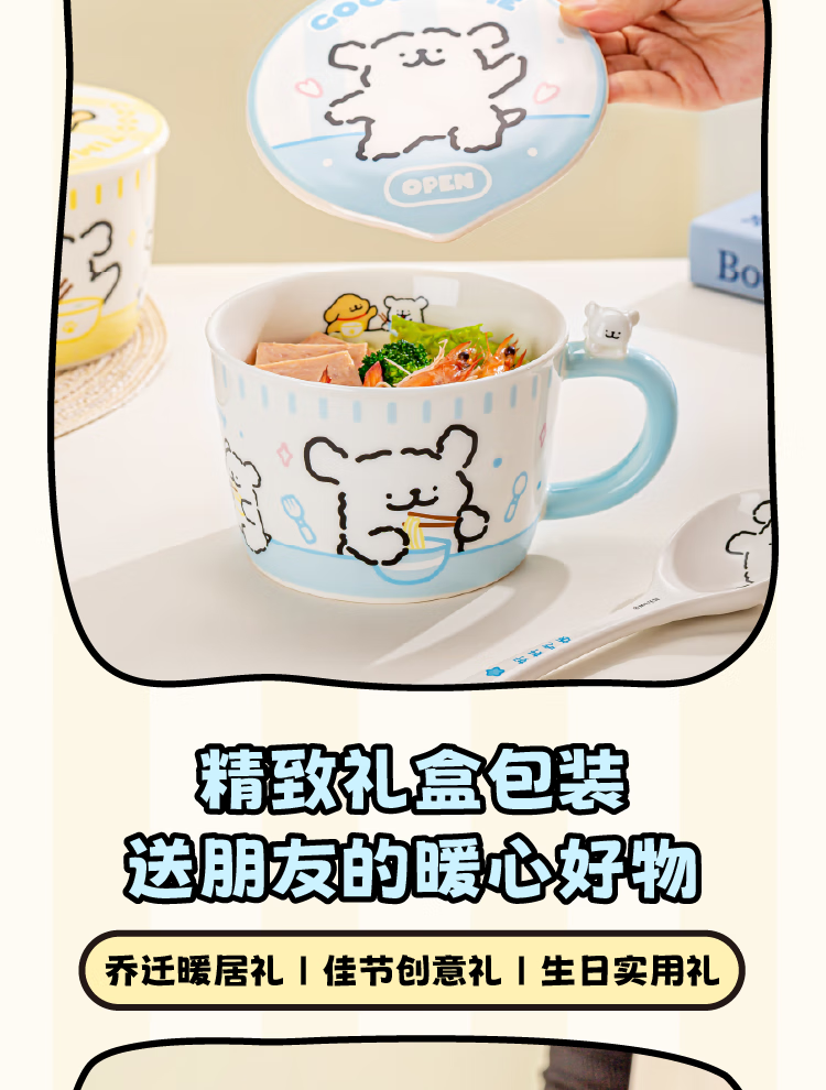 Yancang line puppy instant noodle bowl ceramic with handle large capacity soup bowl with lid practical for one person cute tableware small white handle instant noodle bowl