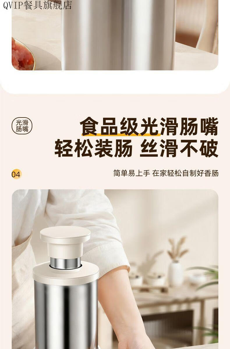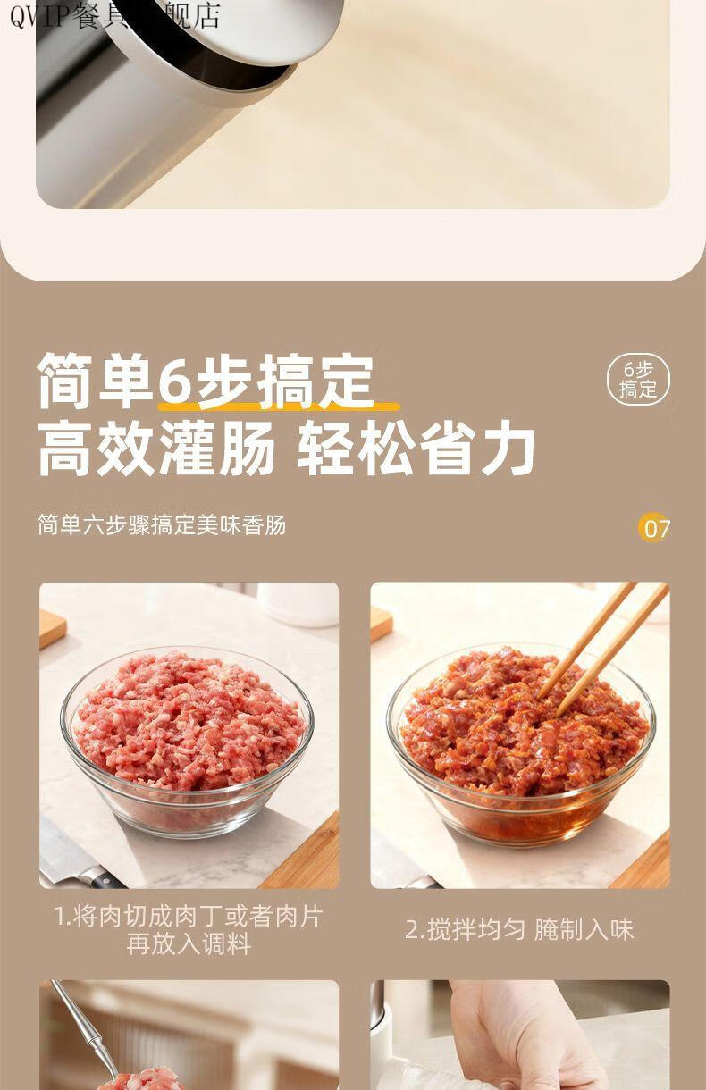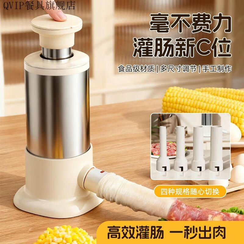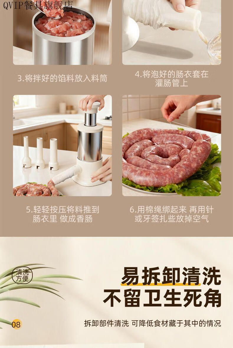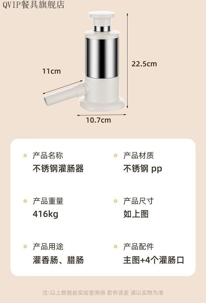 QVIP enema machine household stainless steel manual sausage enema machine canned meat casings sausage stuffing tool artifact food grade material enema* saves time and effort press type* upgraded stainless steel enema tube + cotton thread + 3 casings
