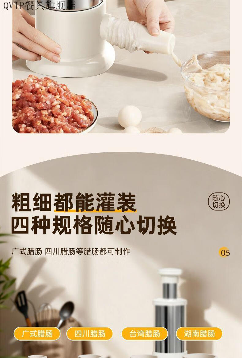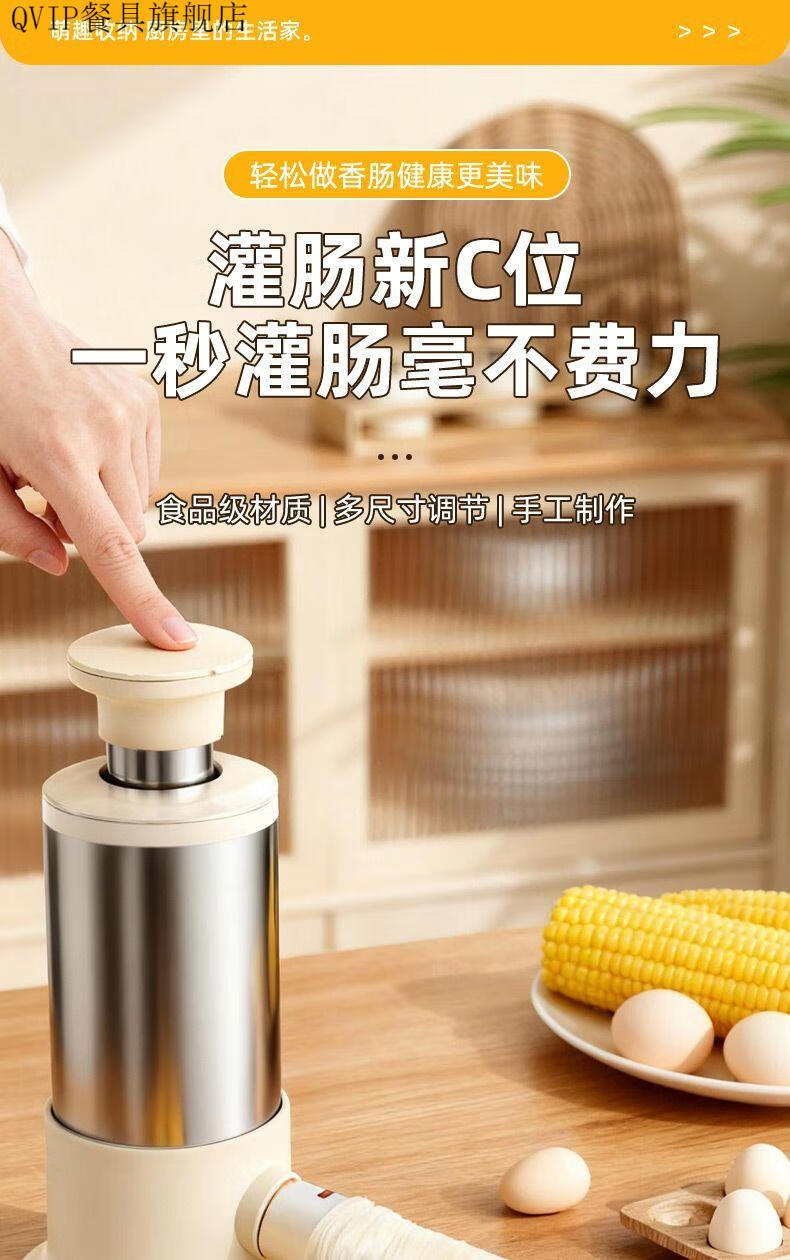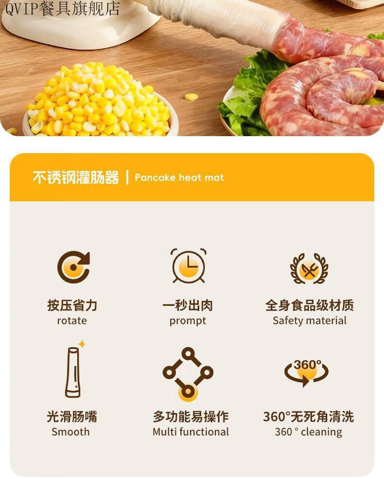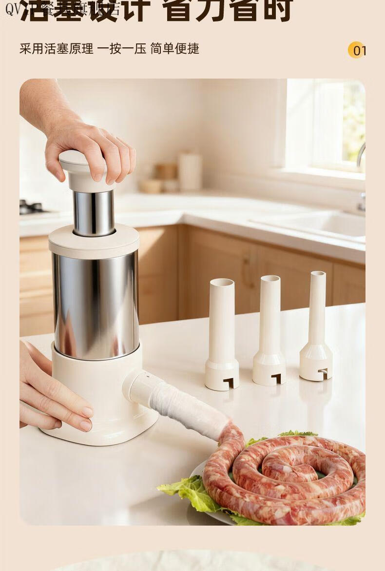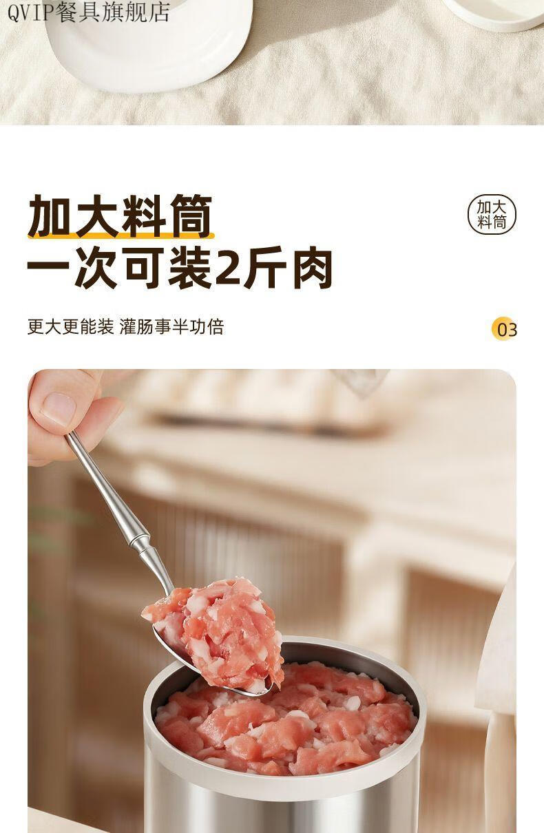 QVIP enema machine household stainless steel manual sausage enema machine canned meat casings sausage stuffing tool artifact food grade material enema* saves time and effort press type* upgraded stainless steel enema tube + cotton thread + 3 casings