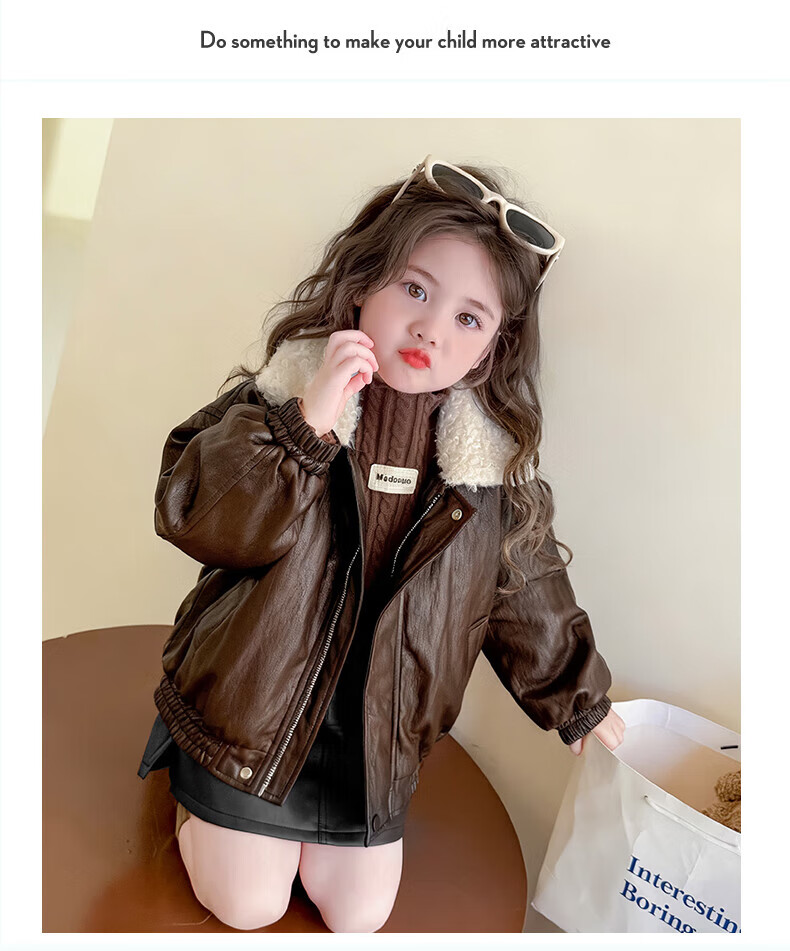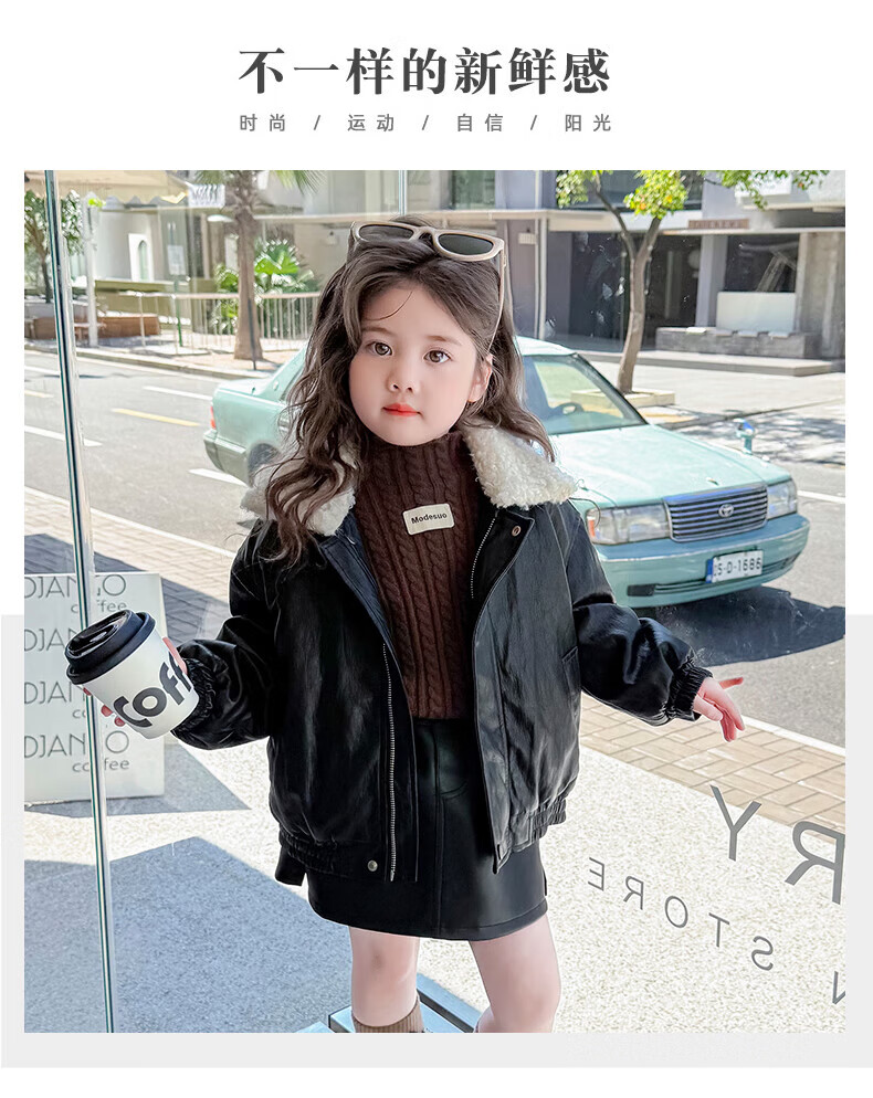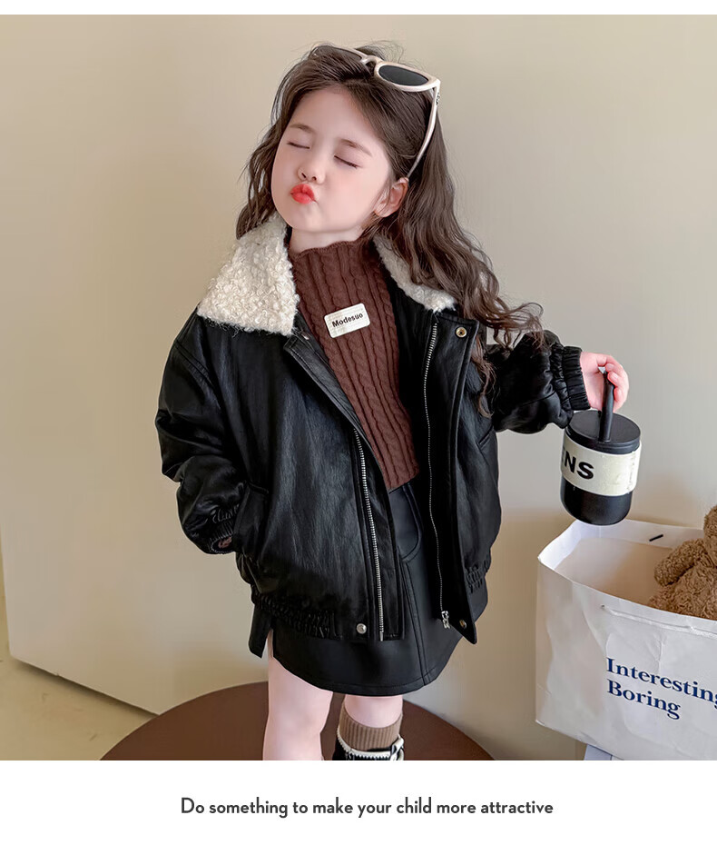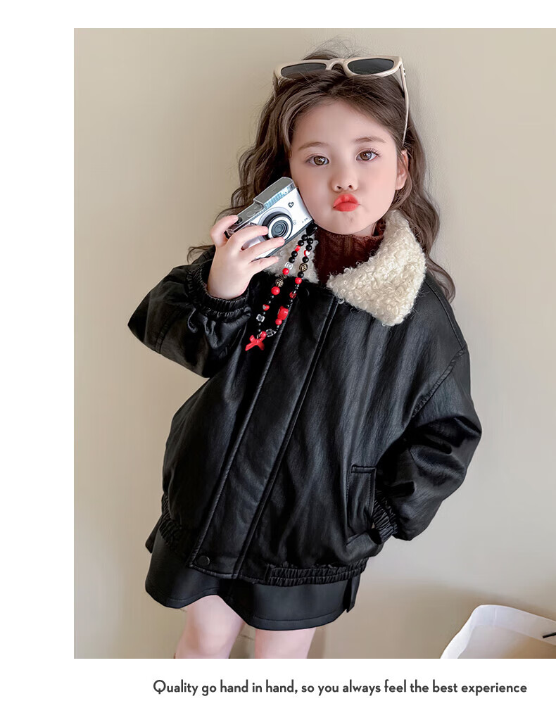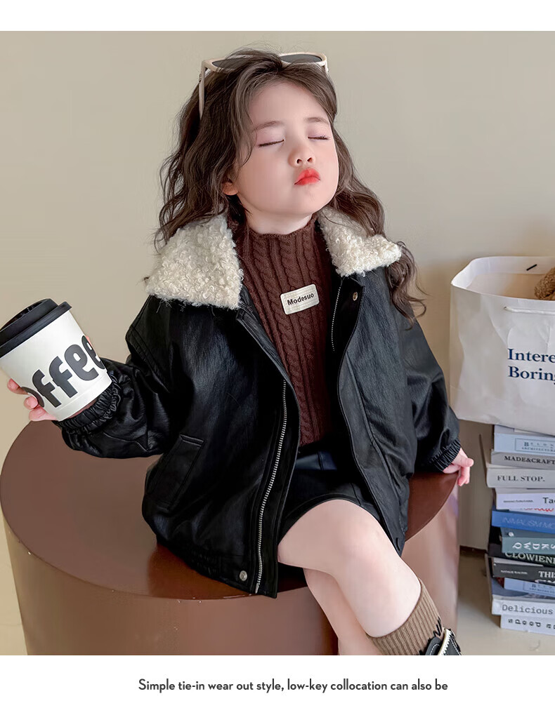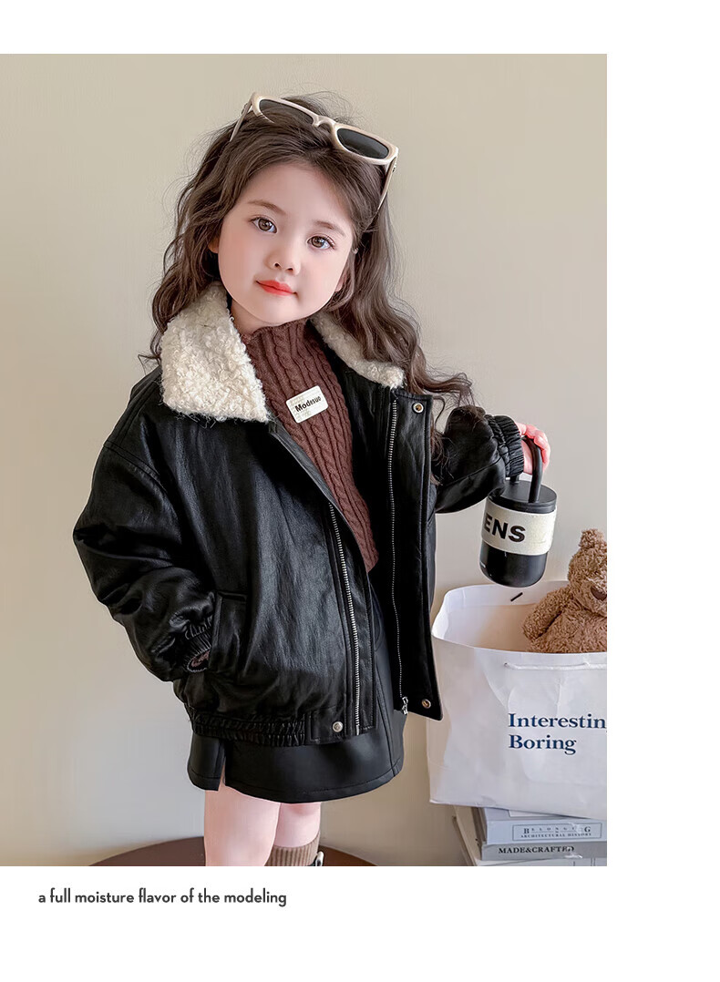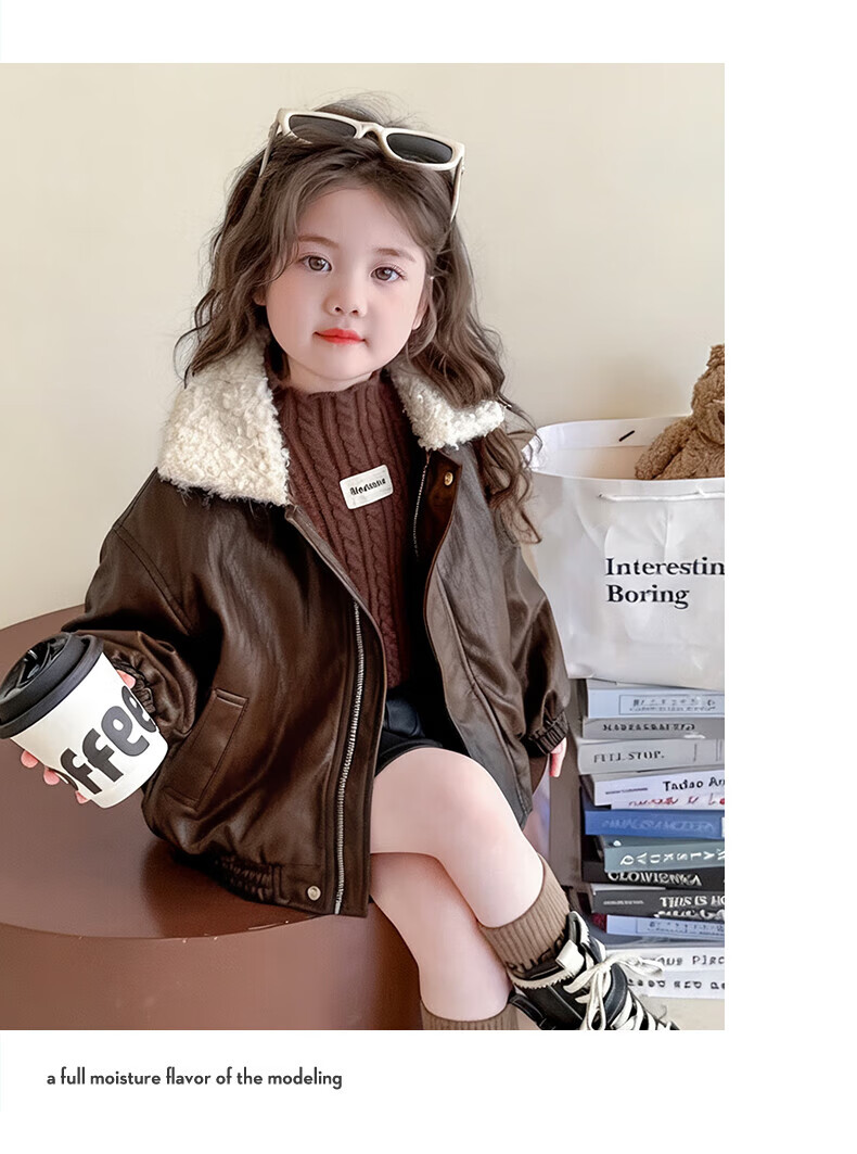 G.duck baby clothes for girls plus velvet leather jacket autumn and winter 2025 new style super good-looking children's early winter clothes for baby girls coffee color 90