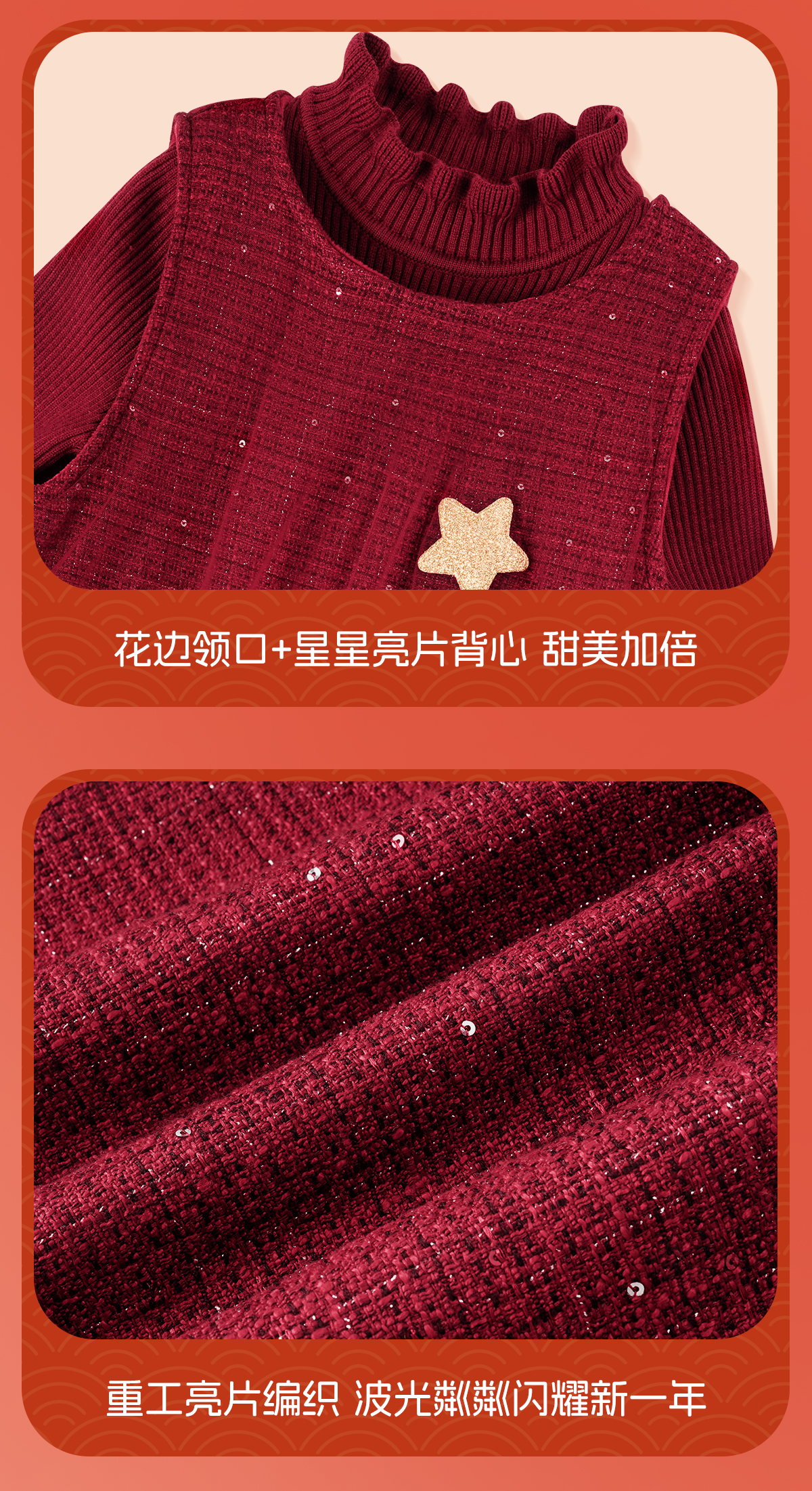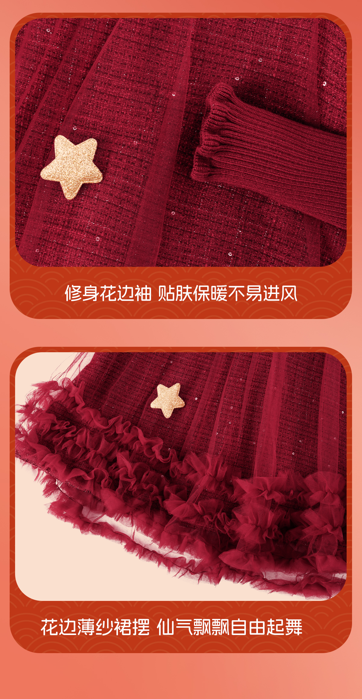 Jeanswest Girls Autumn and Winter Skirt 2026 Girls New Red Skirt Children's Zodiac Senior Skirt Skin Friendly Horse Year New Year Clothes Pearl Vest Skirt Burgundy 140 Recommended Weight 56-68Jin Jin is equal to 0.5 kg