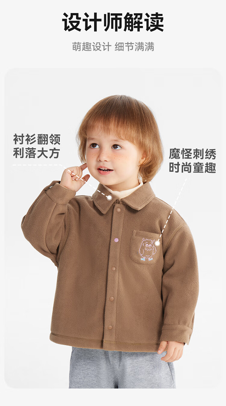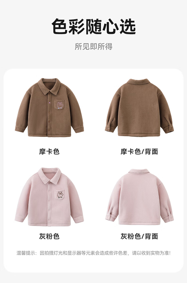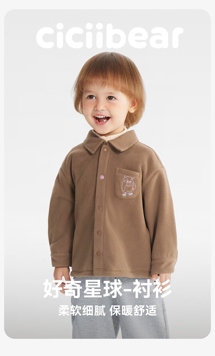 Ciciibear (ciciibear) 300g anti-static polar fleece Ciciibear baby velvet shirt boys jacket winter children's thermal shirt mocha color 90