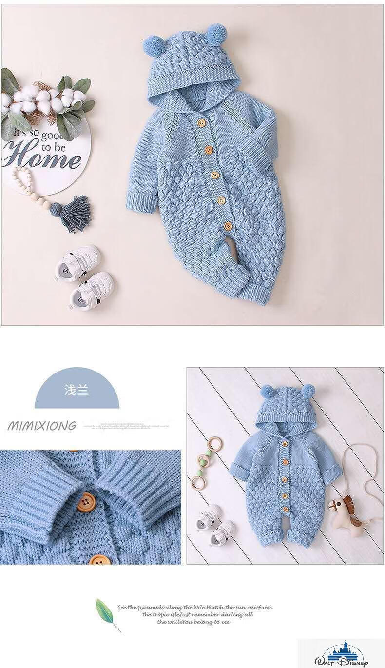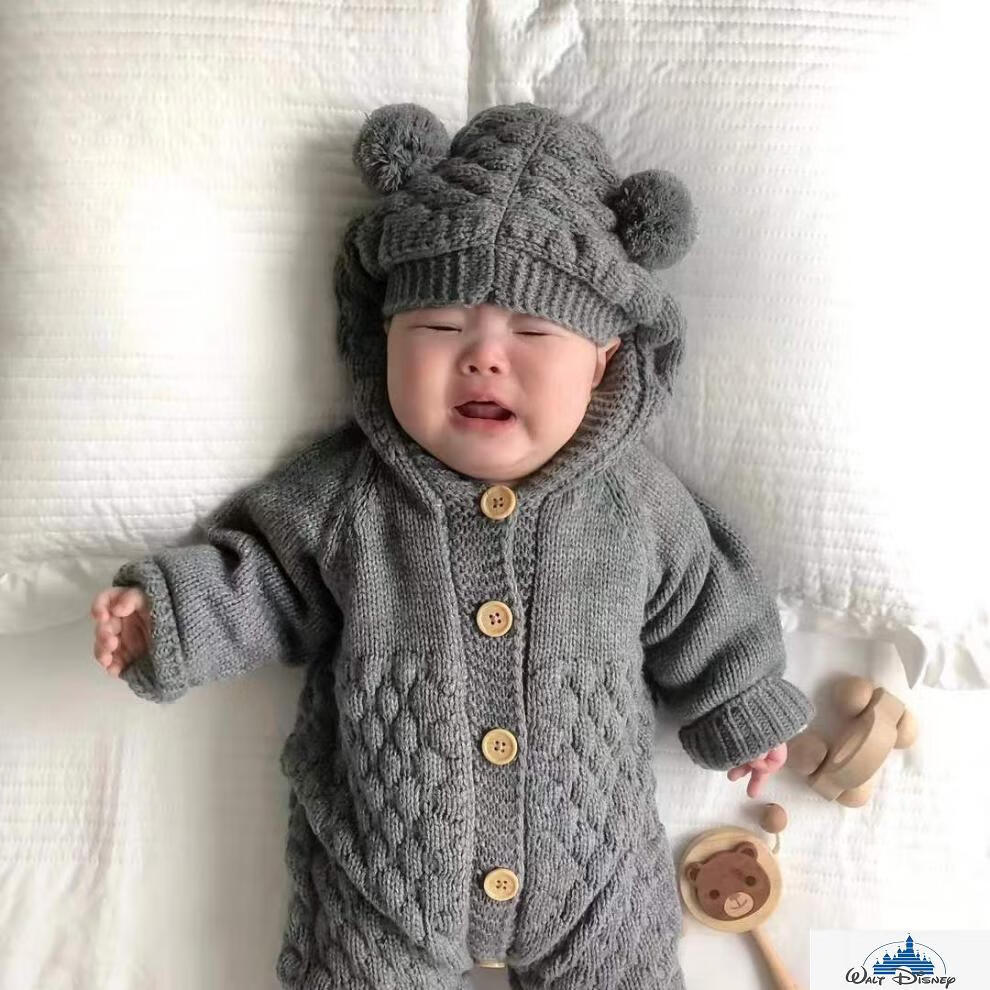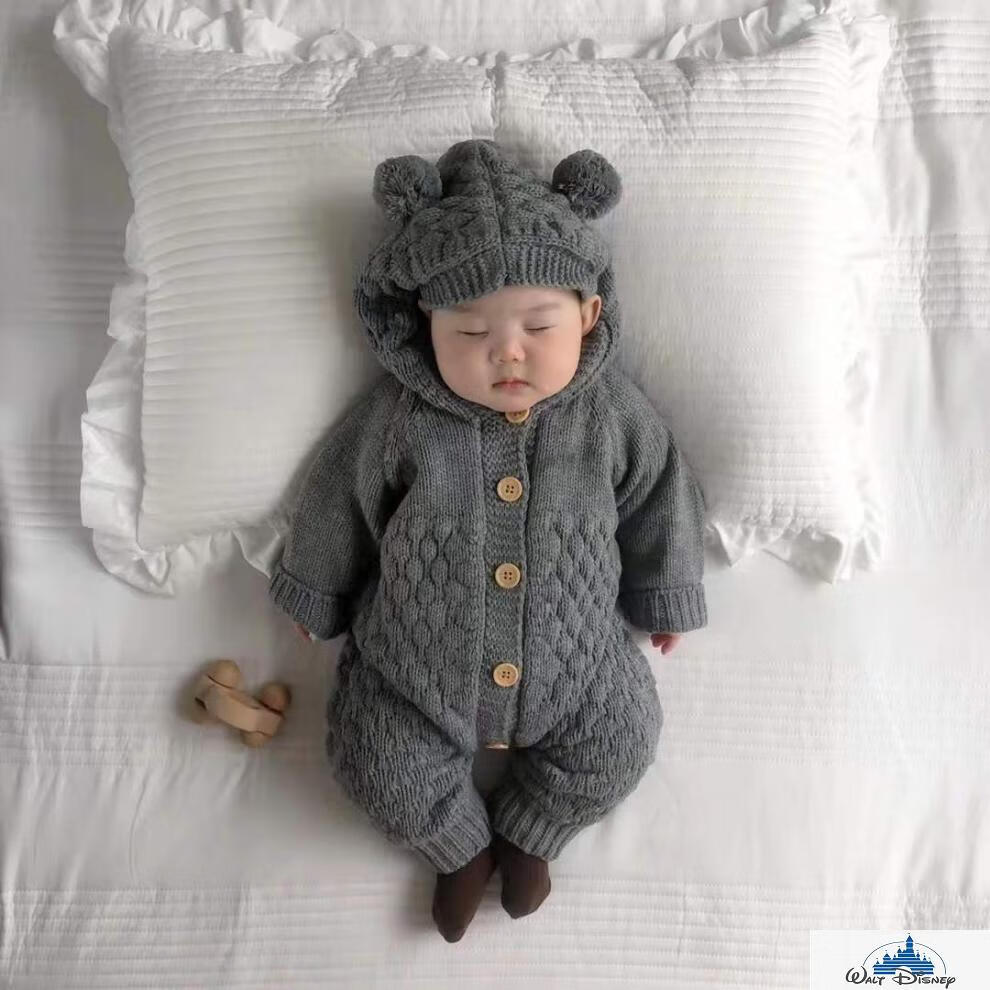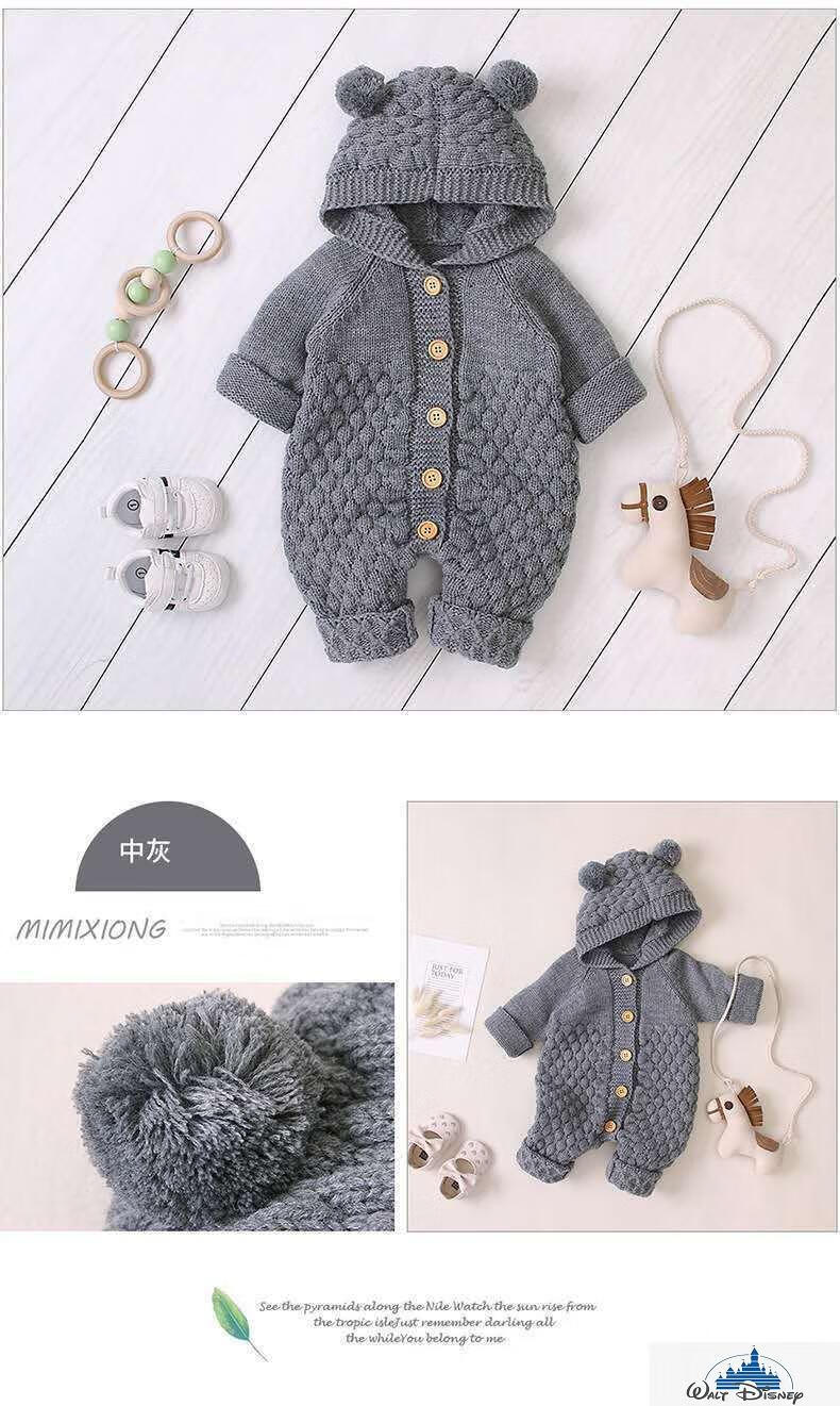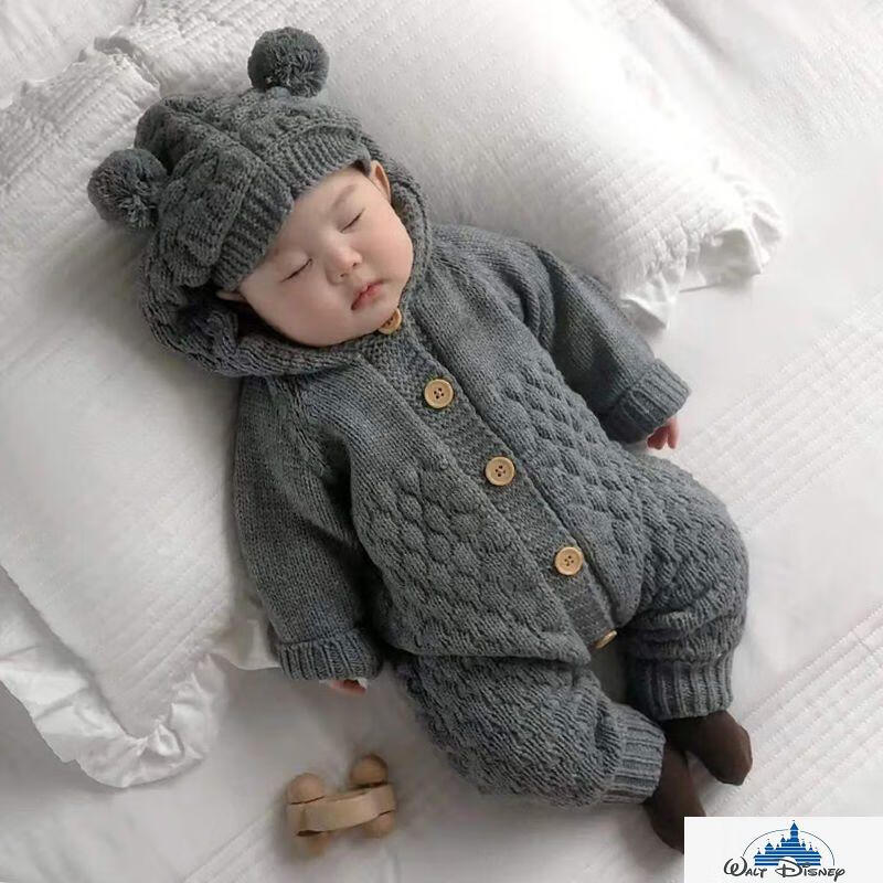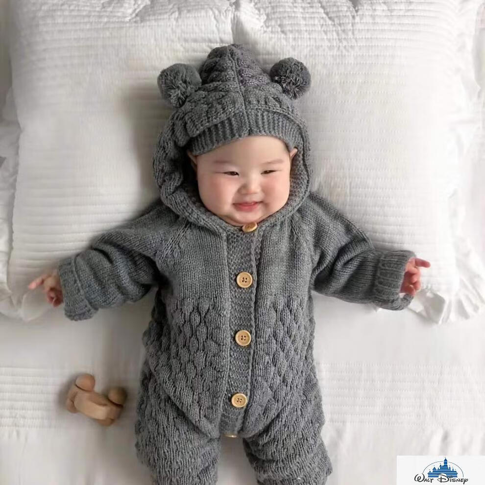 Disney (Disney) baby knitted jumpsuit bodysuit 2026 autumn and winter new baby fashionable rompers plus velvet and thickened warm outing clothes gray 36cm 66