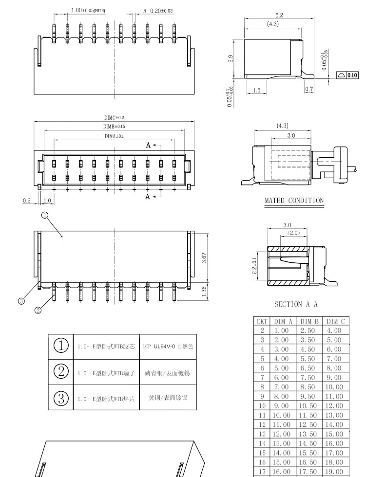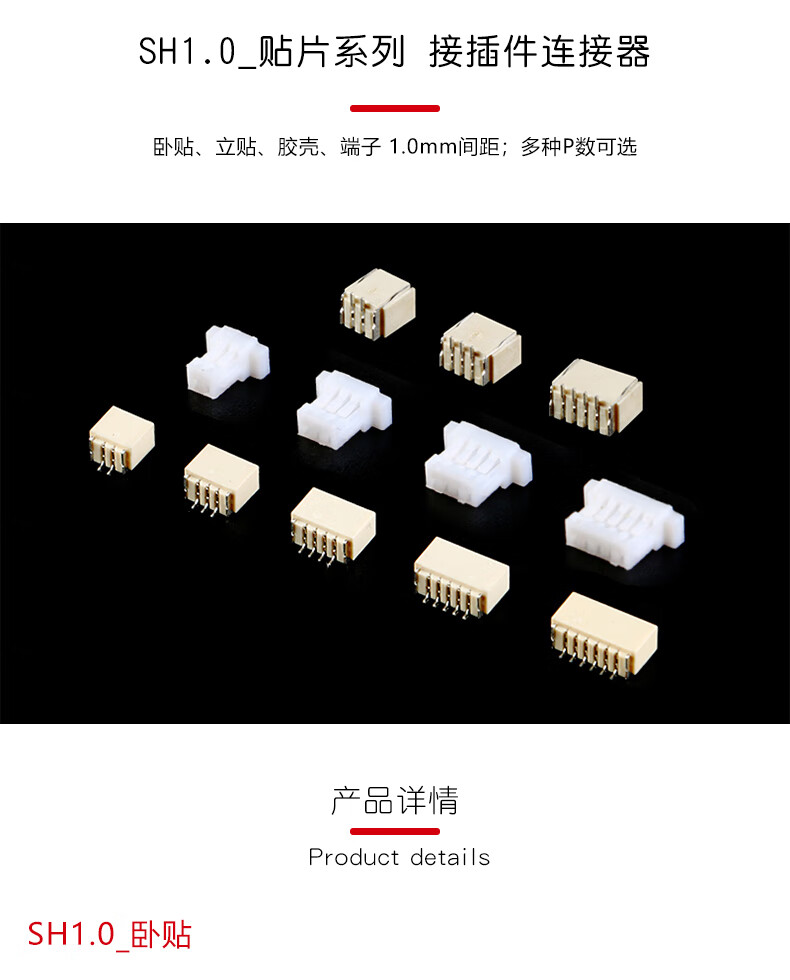 SH1.0 connector patch 1.0mm pitch connector horizontal patch vertical patch socket rubber shell plug spring terminal SH1.0_3P_horizontal patch (10 pieces) No Specifications