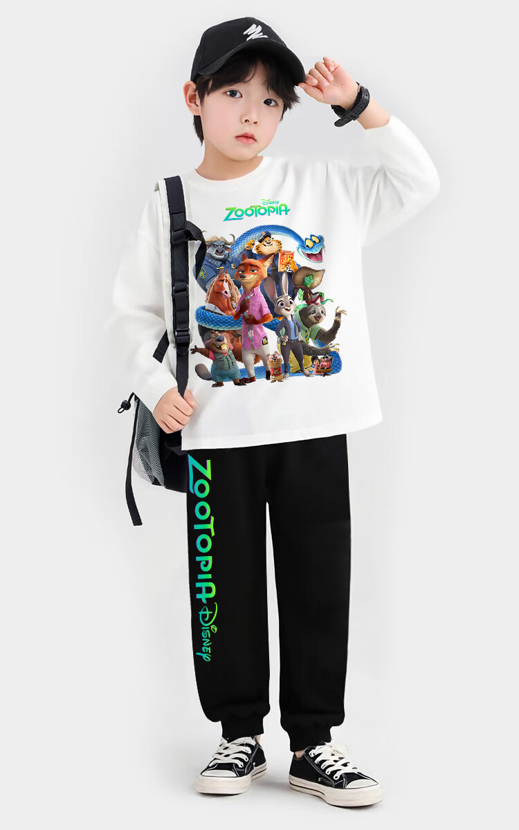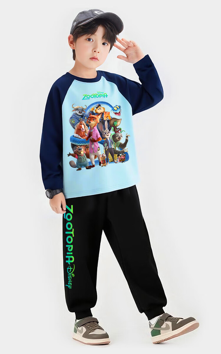 Oxygen Zootopia 2 Long Sleeve T-Shirt Cotton Zootopia Clothes Children's Nick Judy Boys Top Light Blue-Zootopia 130 cm