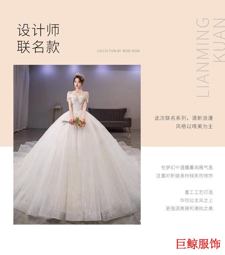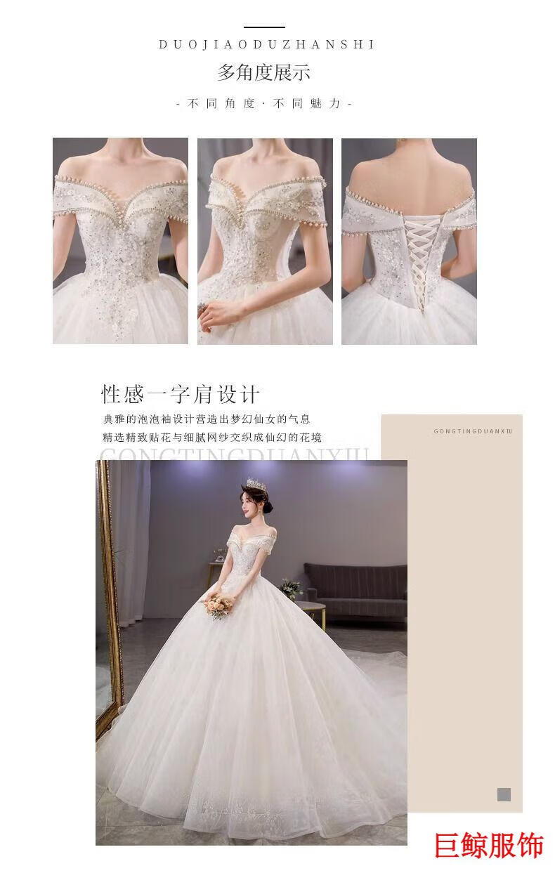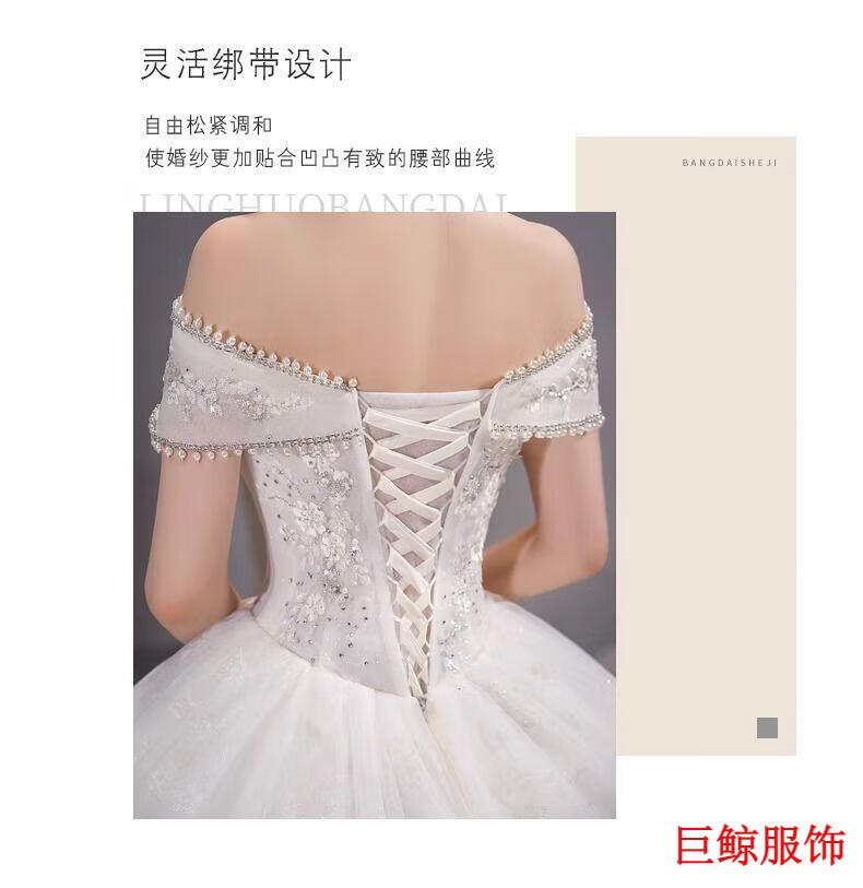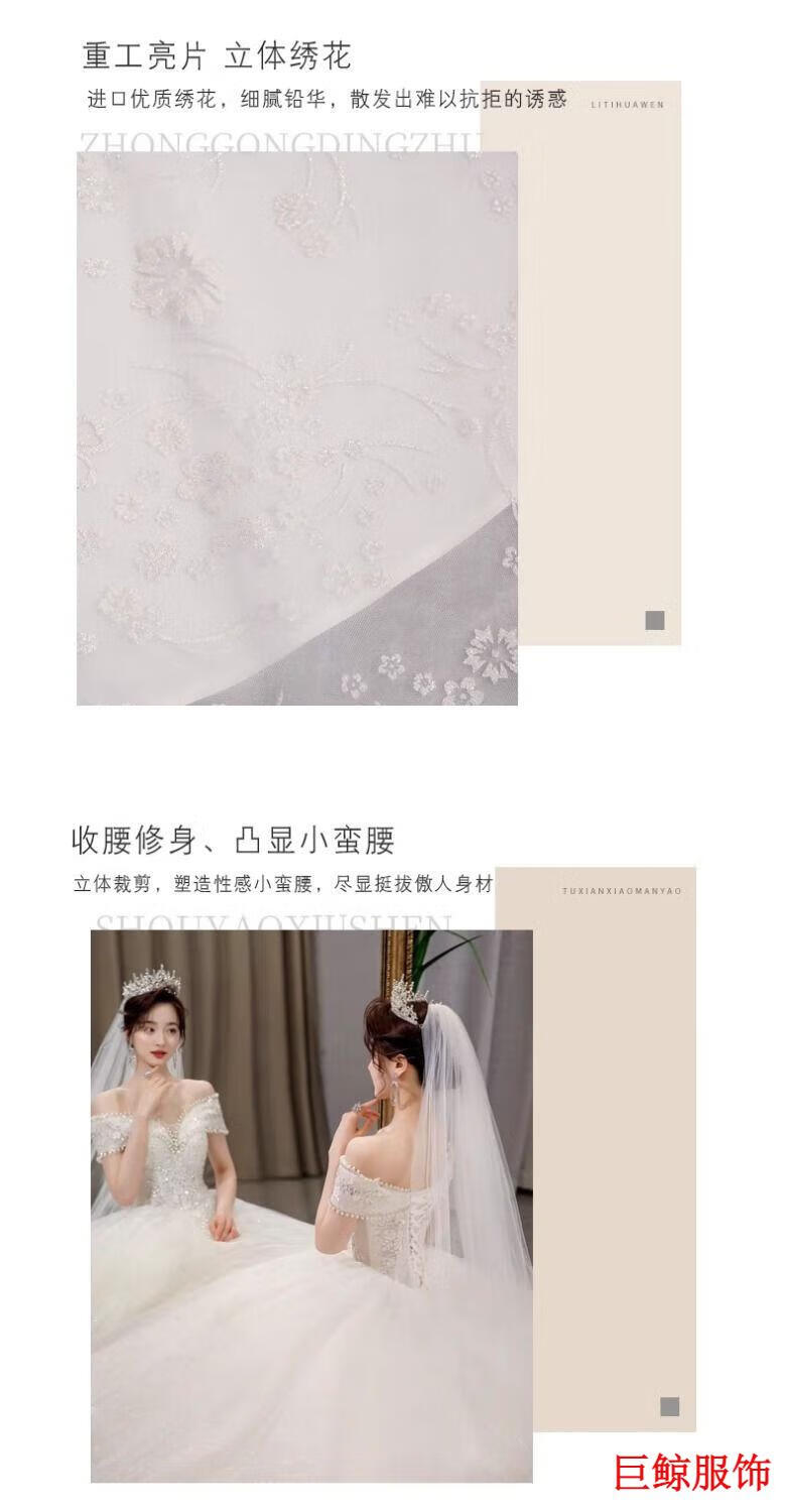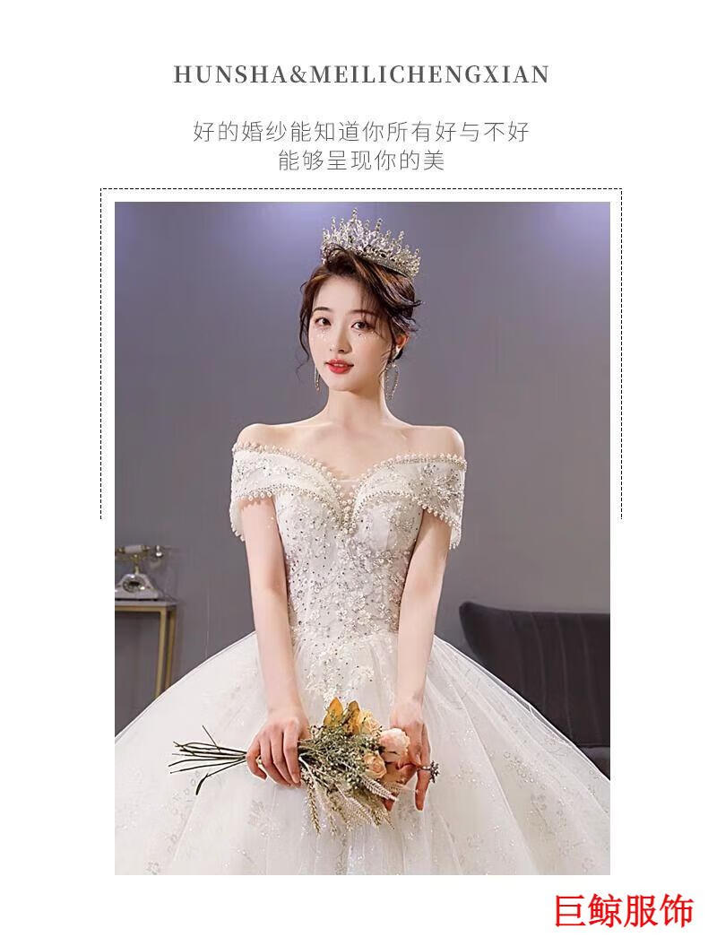 Tromlfz one-shoulder wedding dress new bridal main yarn palace style heavy industry trailing white going out yarn simple floor-length M