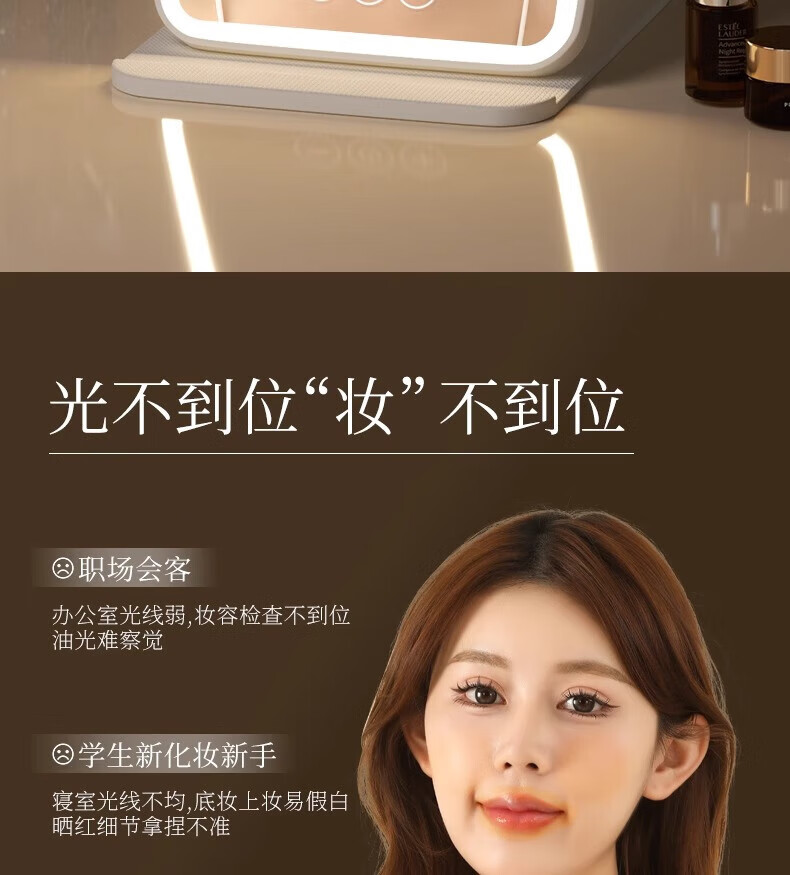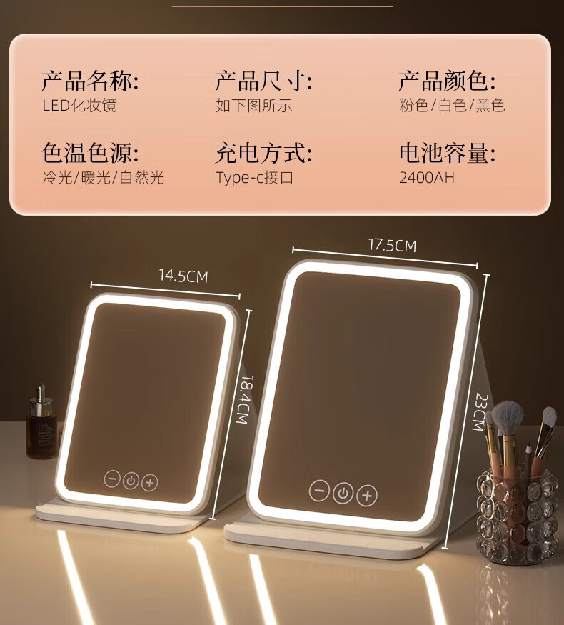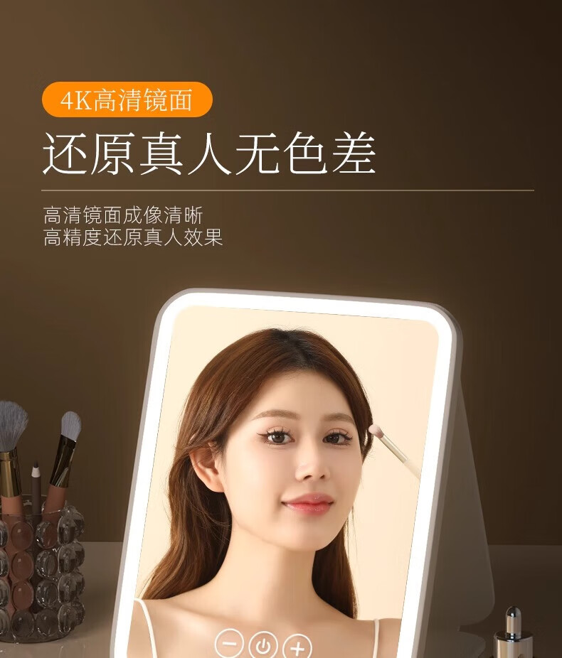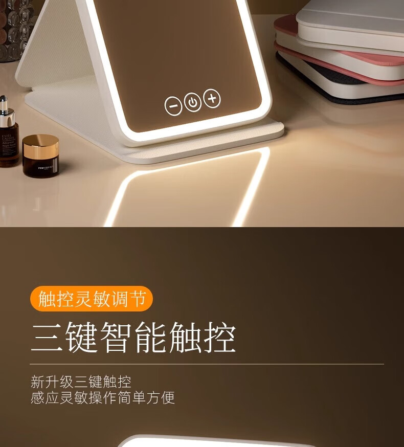 Led makeup mirror with light home ultra-thin large size makeup mirror student dormitory desktop large folding portable makeup mirror smart fill-in light makeup remover mirror Mother's Day gift folding makeup mirror off-white + smart fill-in light