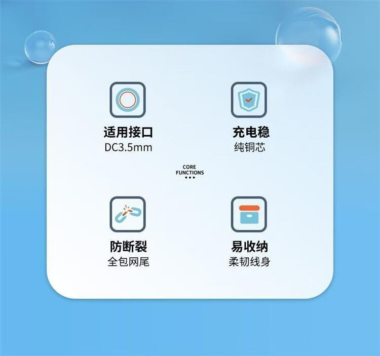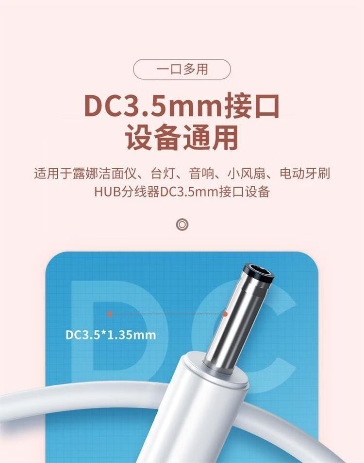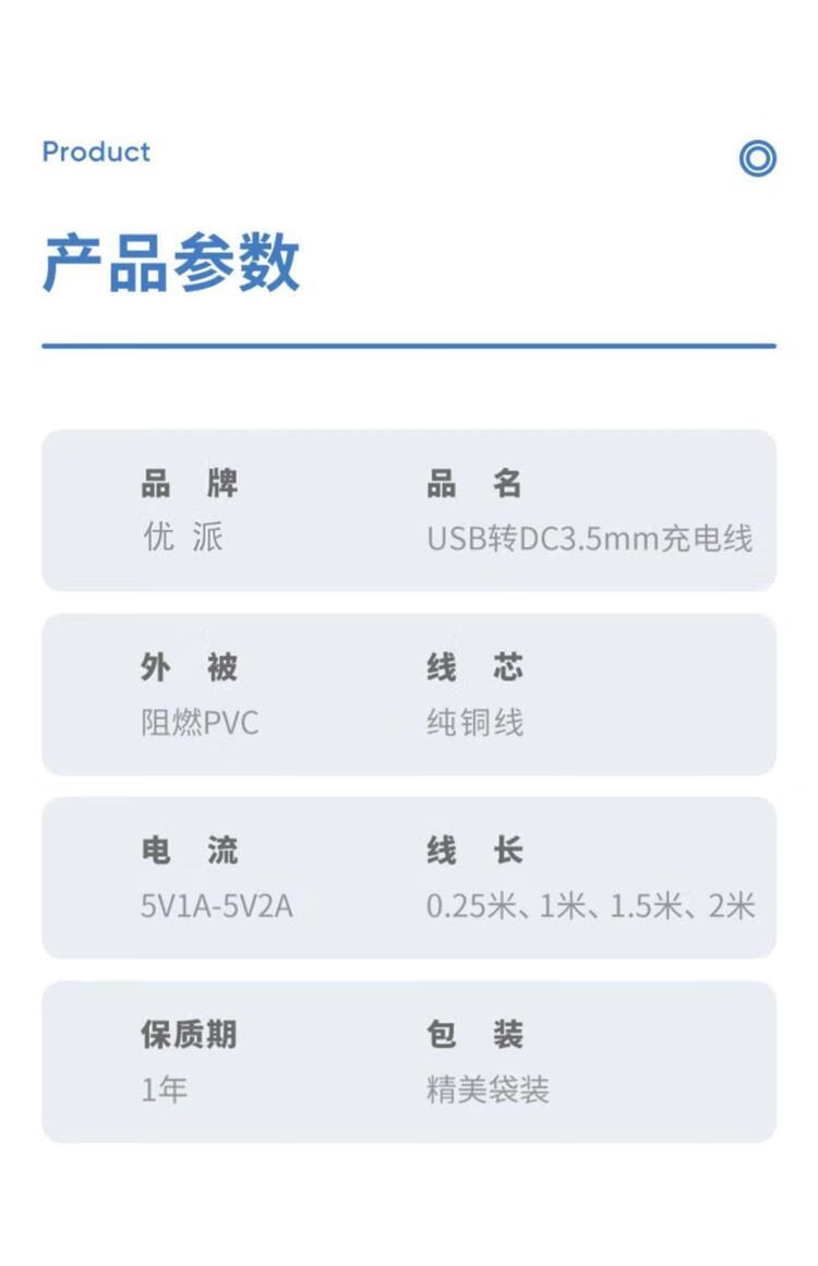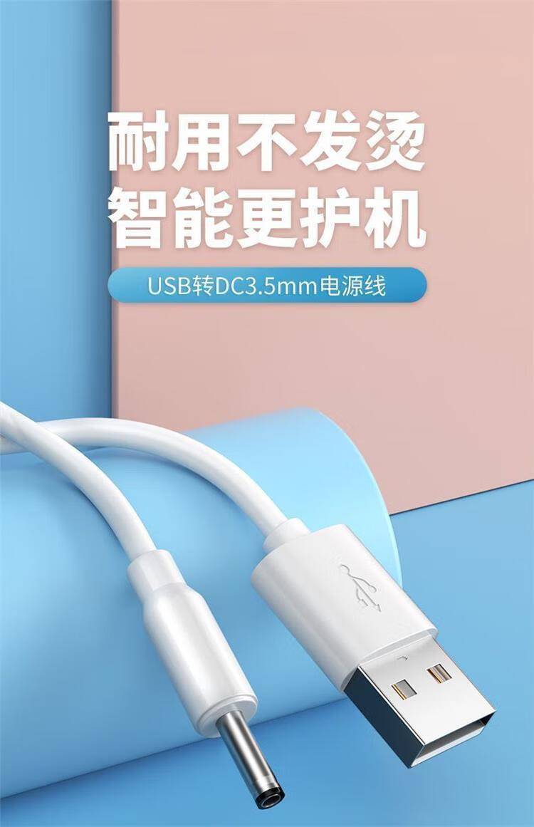 USB to DC power cord 3.5mm charging cable suitable for electric toothbrush fan LED desk lamp audio makeup mirror cleanser round hole data cable fan round hole charging cable round white 3.5mm - thick copper core 1 meter DC to 3.5
