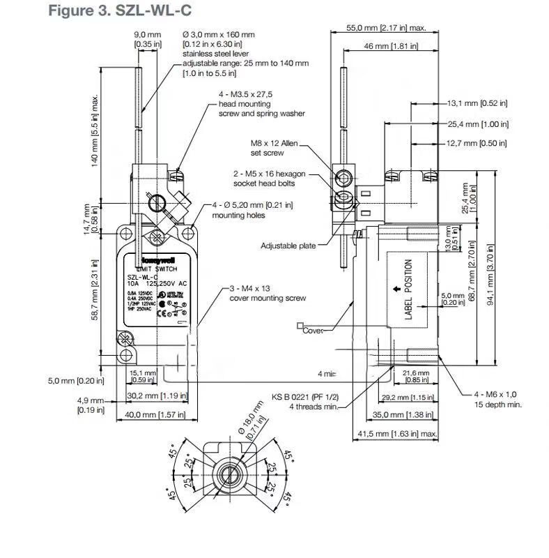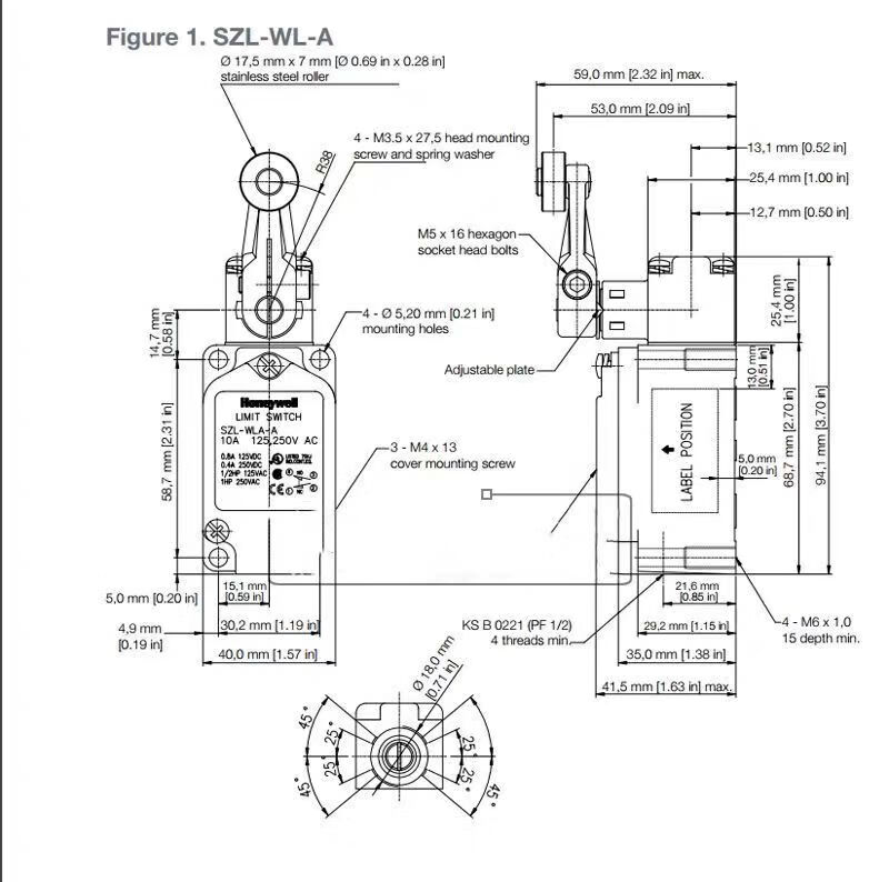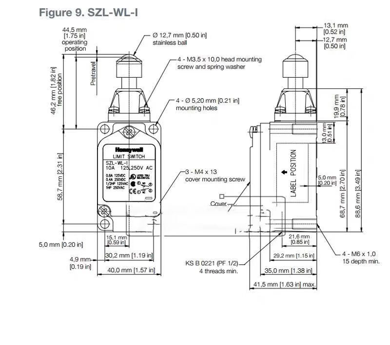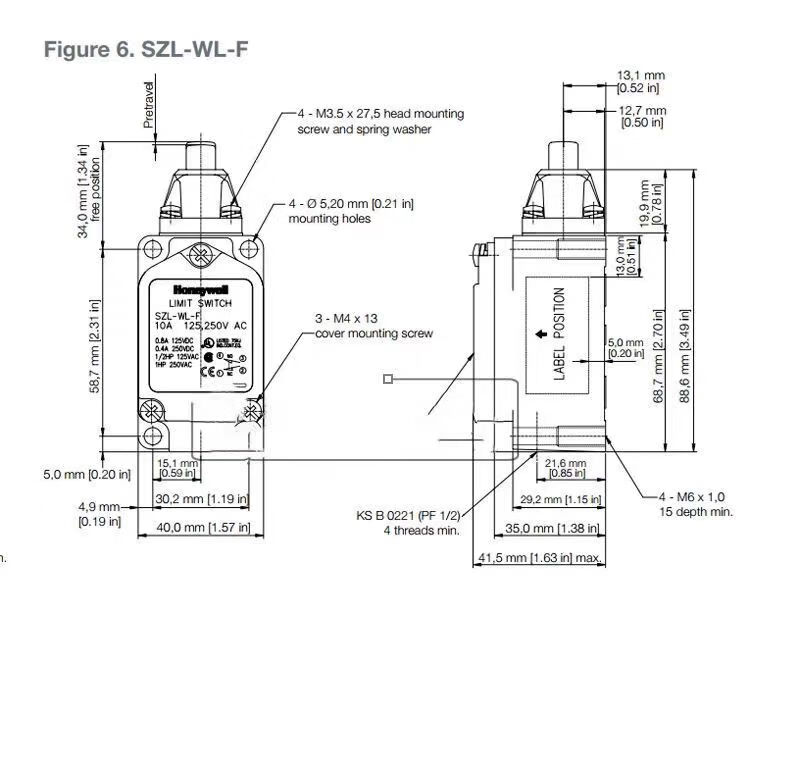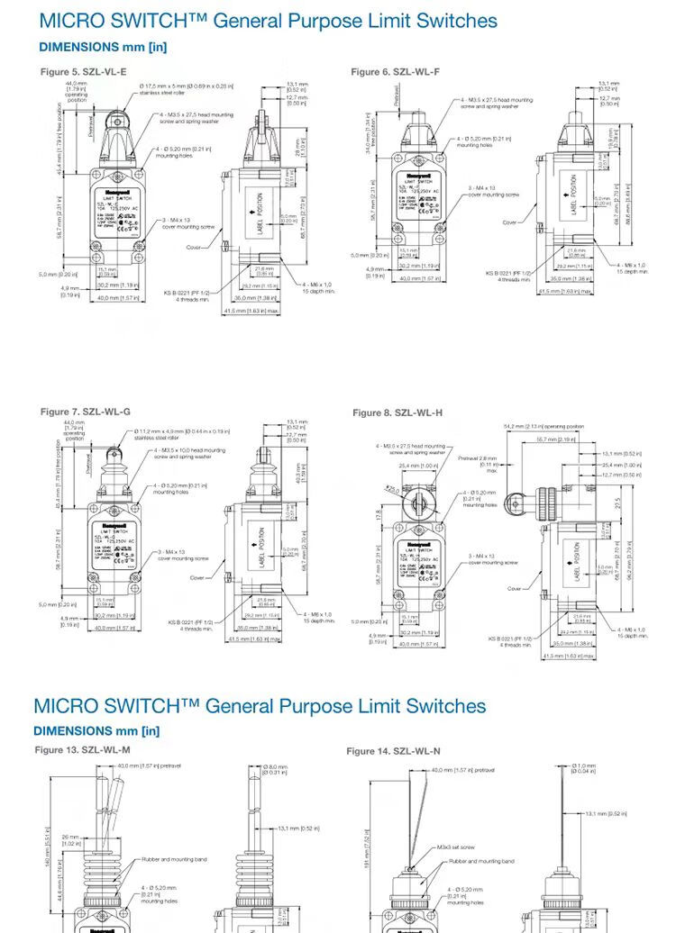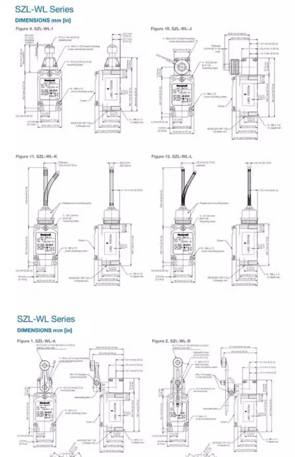 Honeywell travel limit switch SZL-WLC-B SZL-WLC-A SZL-WL-B K C D SZL-WL-J