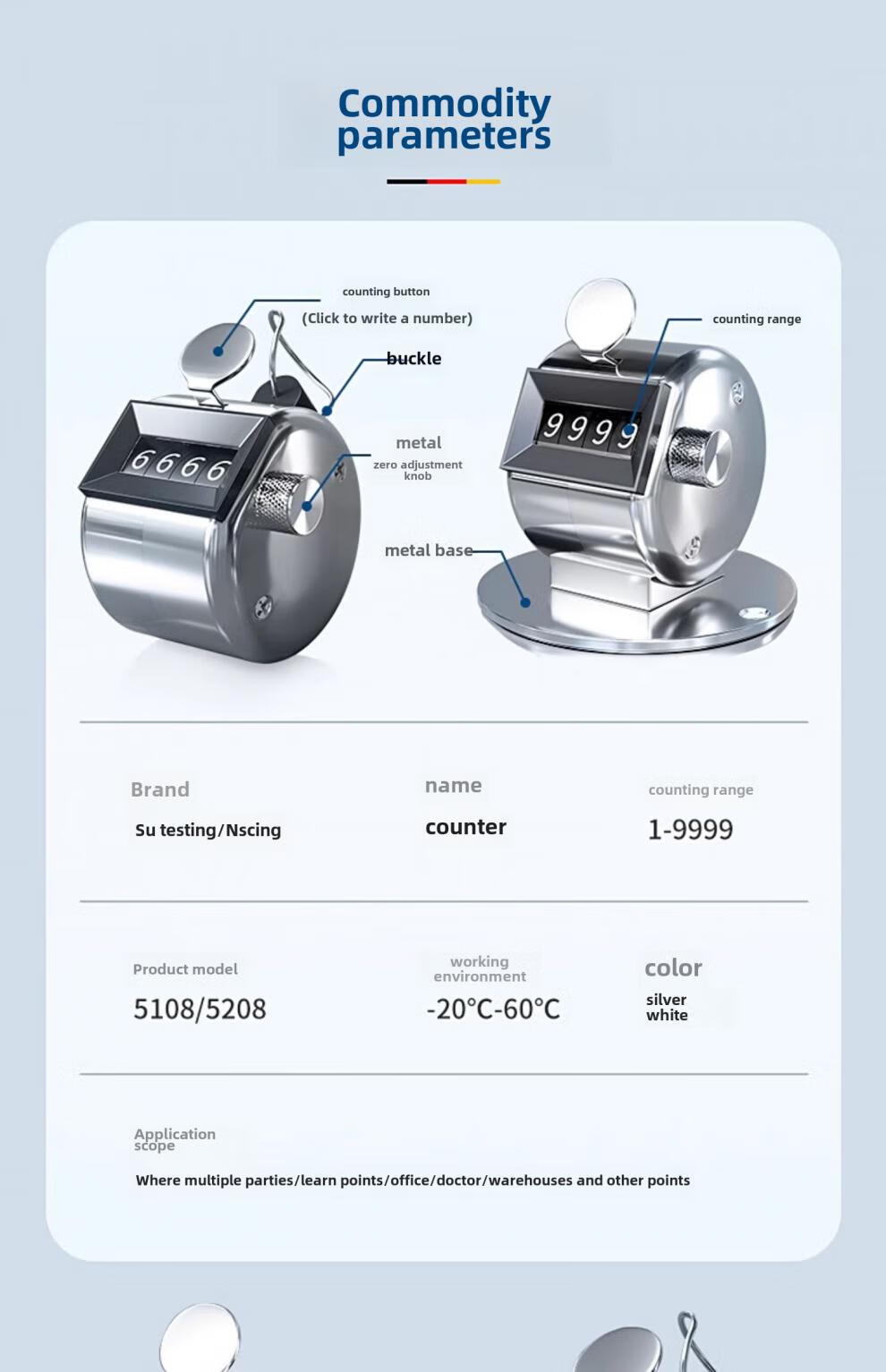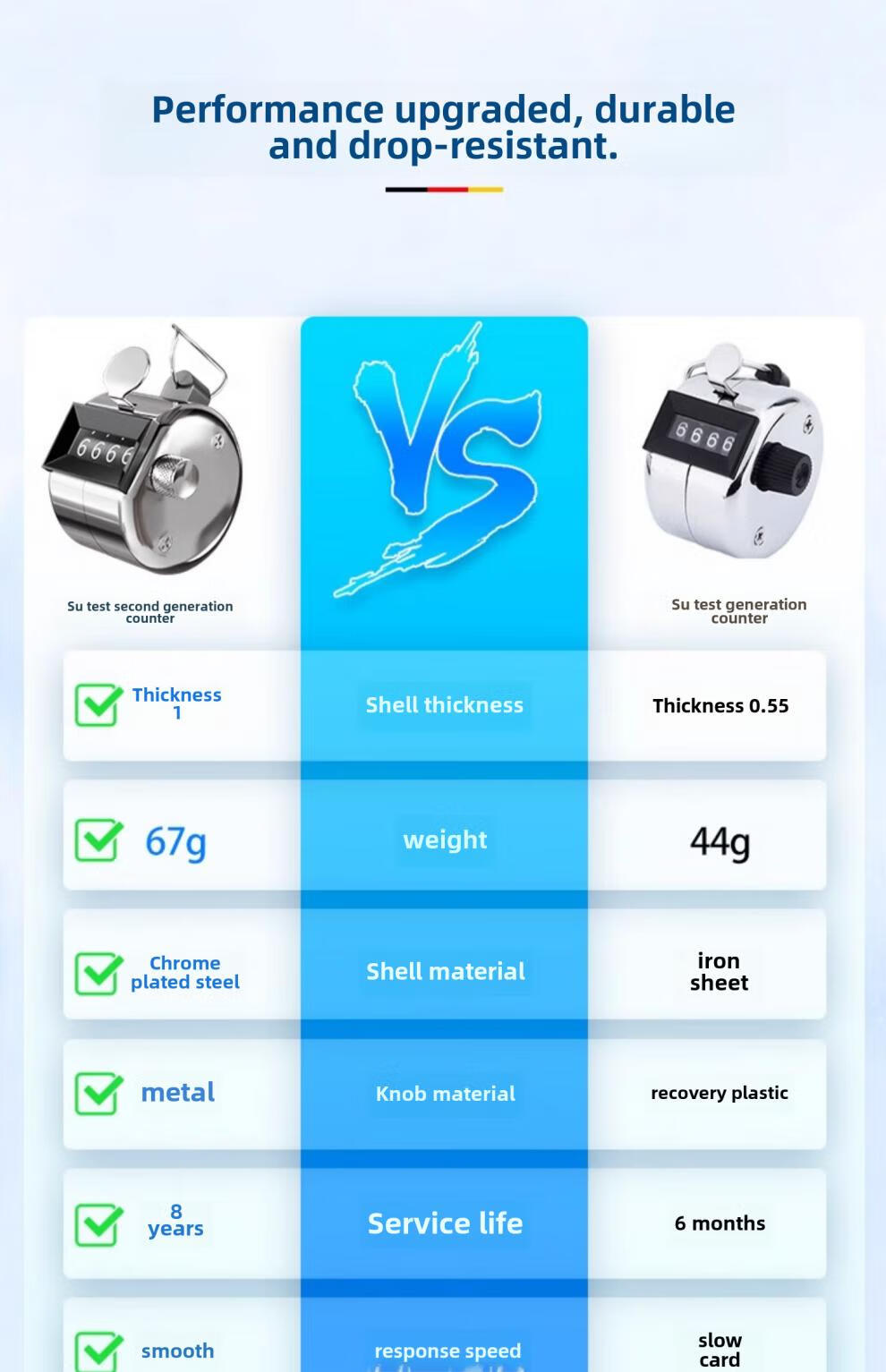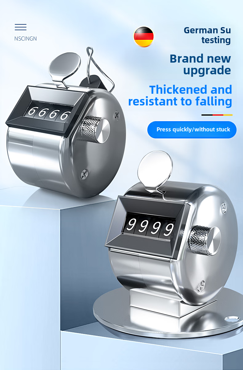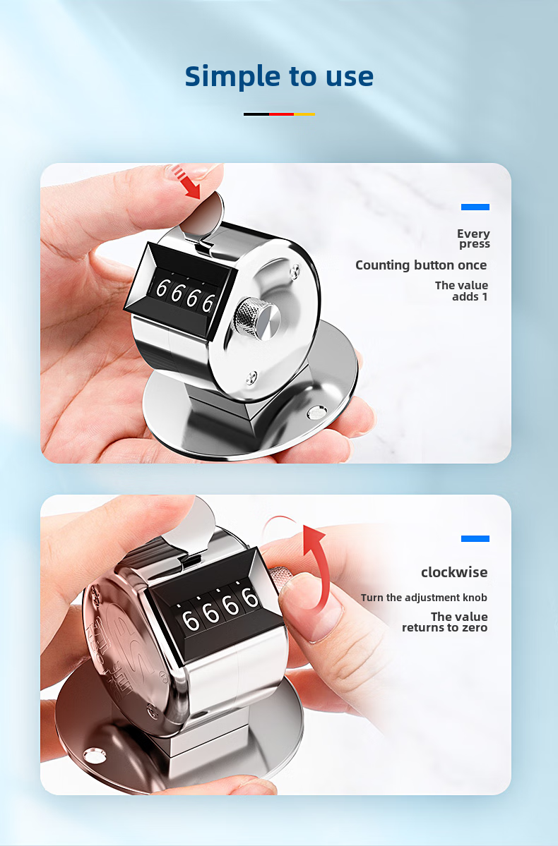 Counter hand press manual counting artifact counter passenger counter passenger flow mechanical counter counting 10 pieces with base second generation thickened (metal shell + metal knob