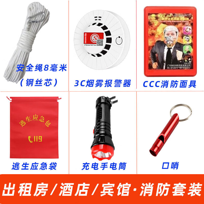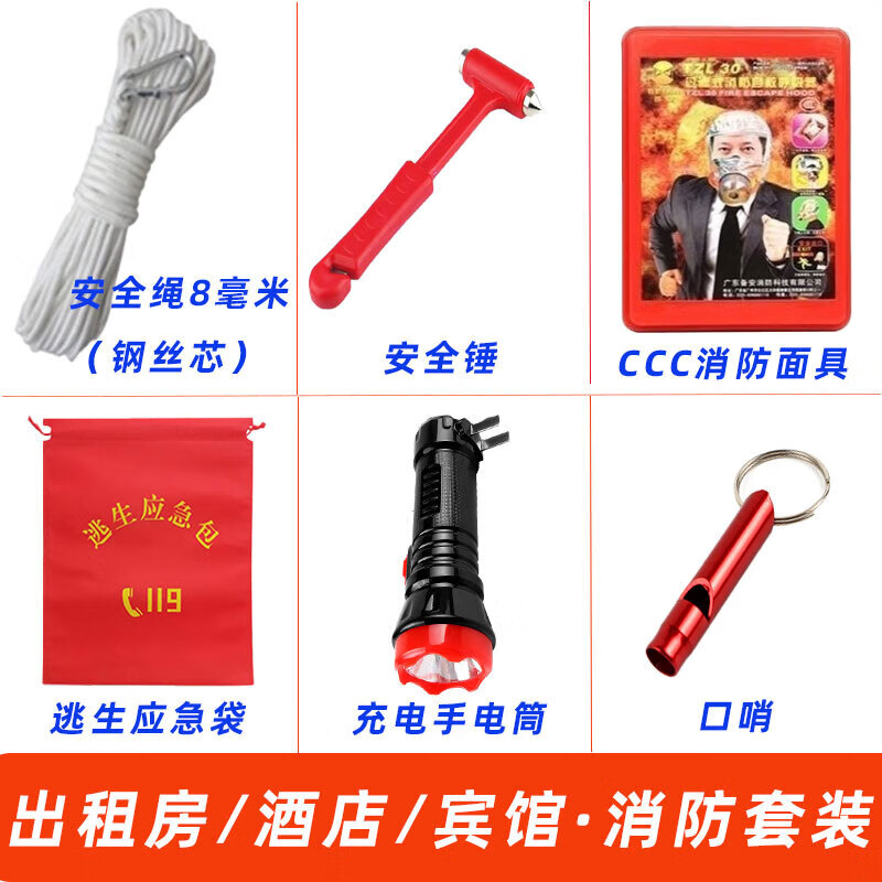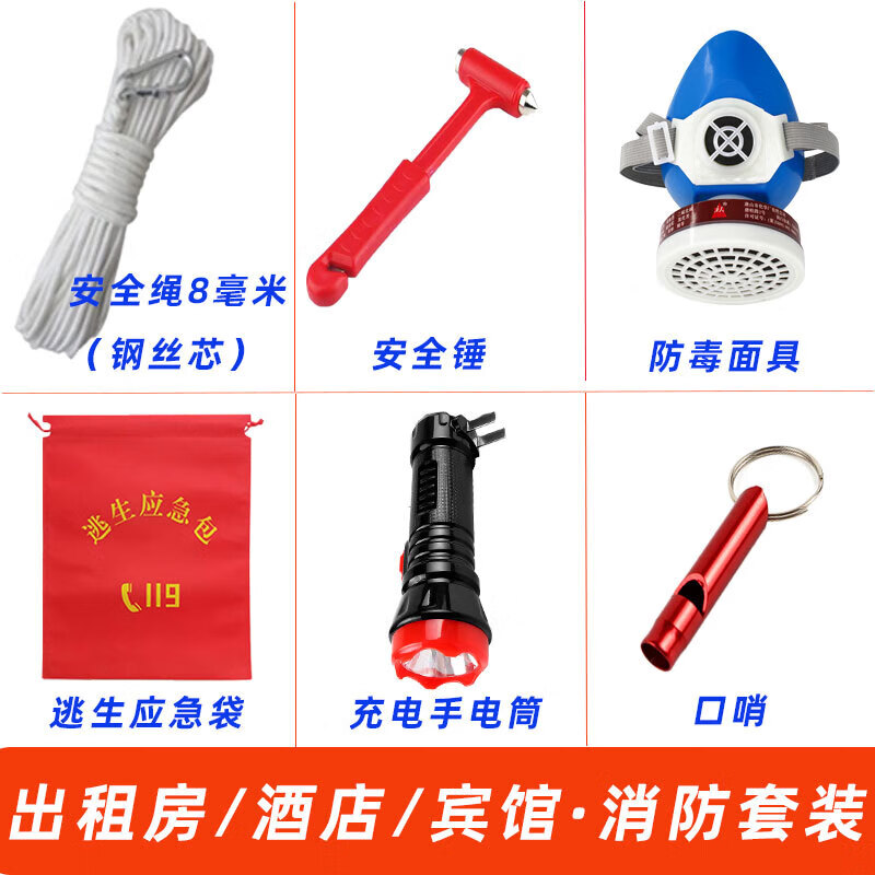 Firefighting five-piece set four-piece rental hotel dormitory fire extinguisher mask set safety rope escape emergency kit firefighting 5-piece set (smoke mask + fire blanket)