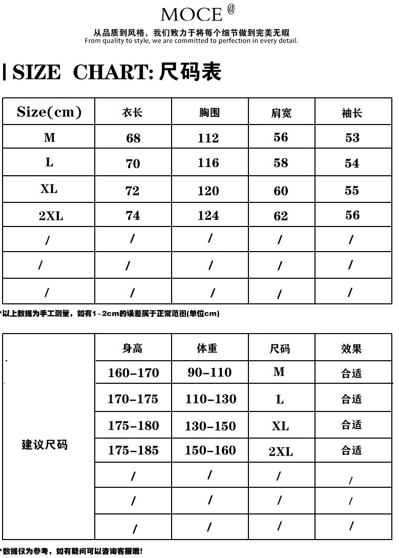 China (cm) 165 / 88-90 170 / 96-98 175 / 108-110 180 / 118-122 185 / 126-130