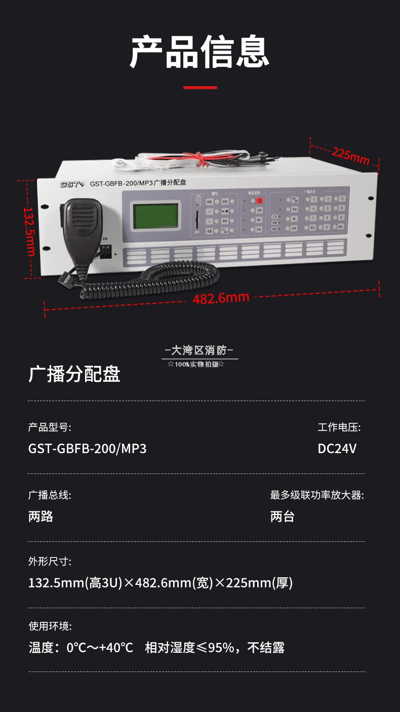 GST Bay Broadcast Distribution Panel Broadcast Fire Broadcast Emergency Controller GST-GBFB-200_MP3 Broadcast Distribution Panel Gulf_