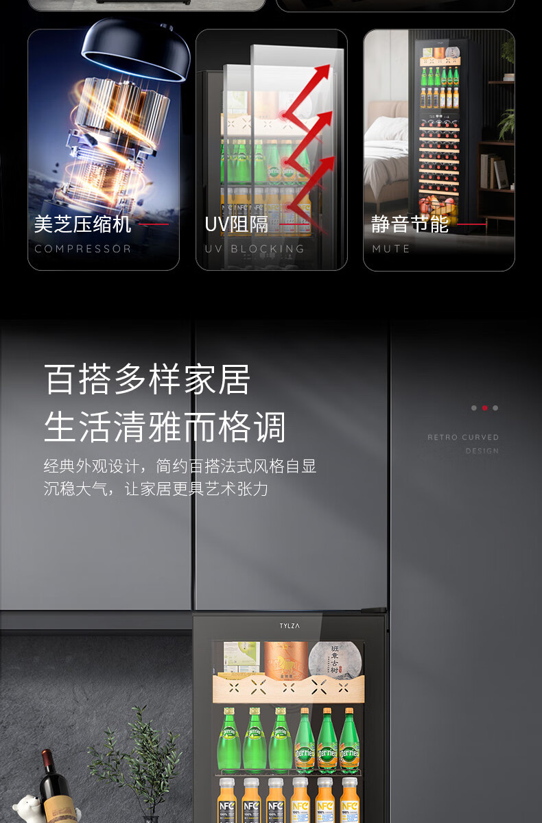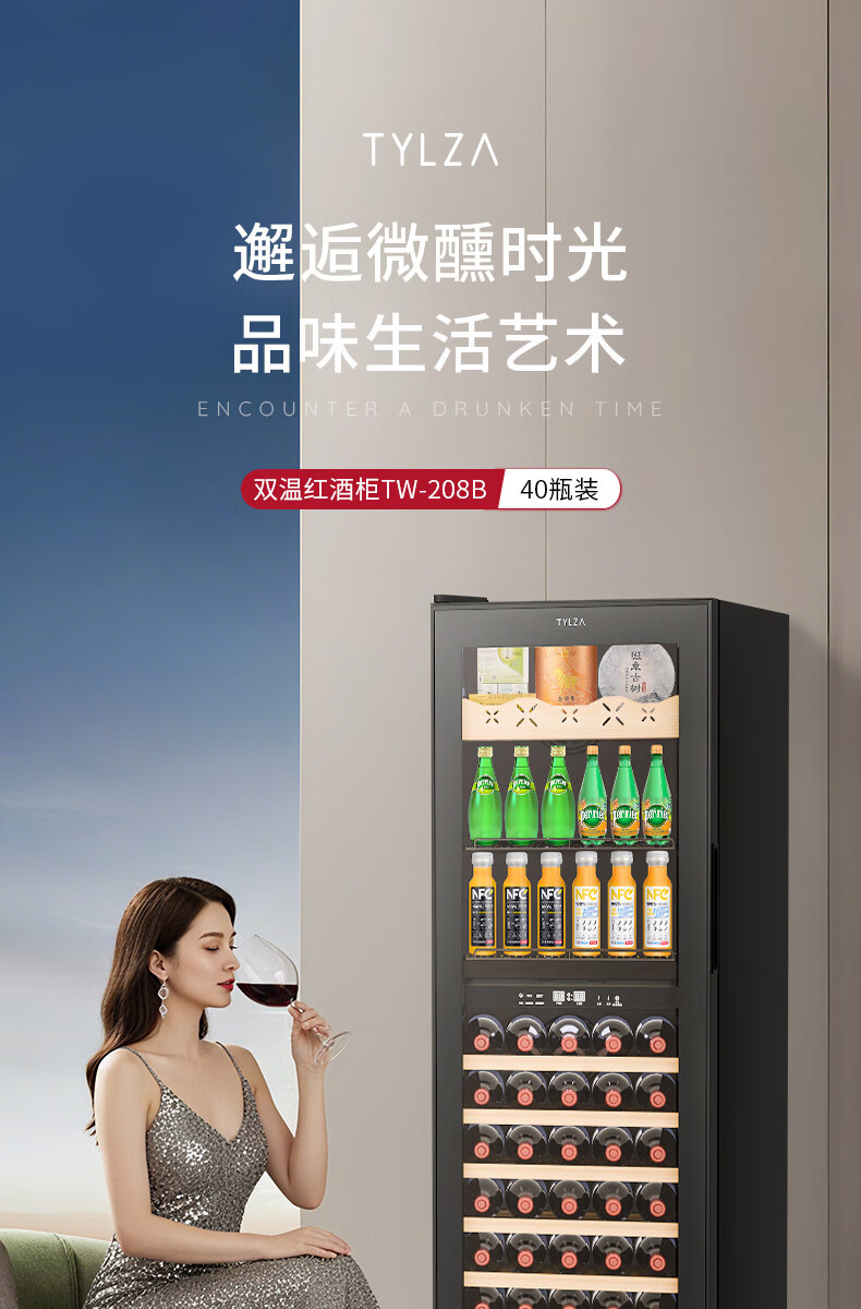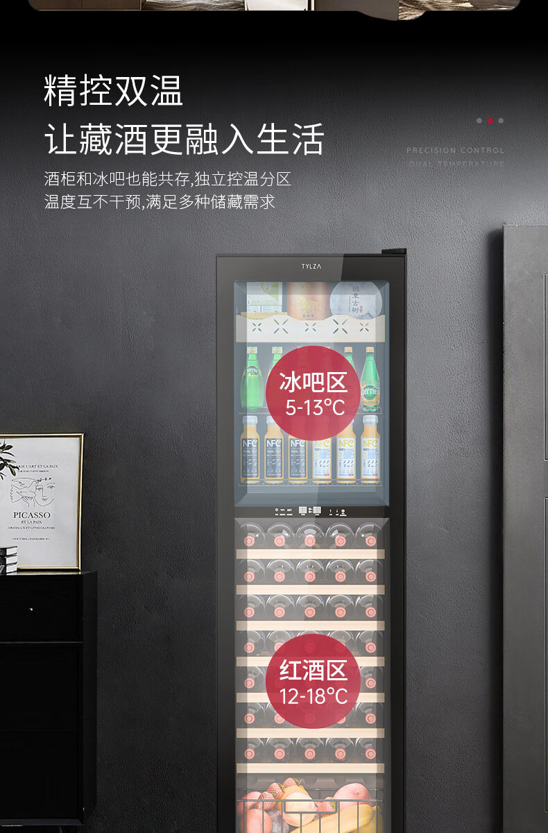 The middle shopkeeper TYLZA constant temperature and humidity wine cabinet household refrigerated ice bar tea cabinet fresh cabinet refrigerator TW dual temperature zone wine cabinet hanging cup display