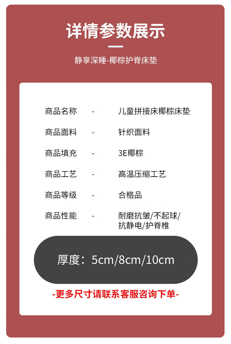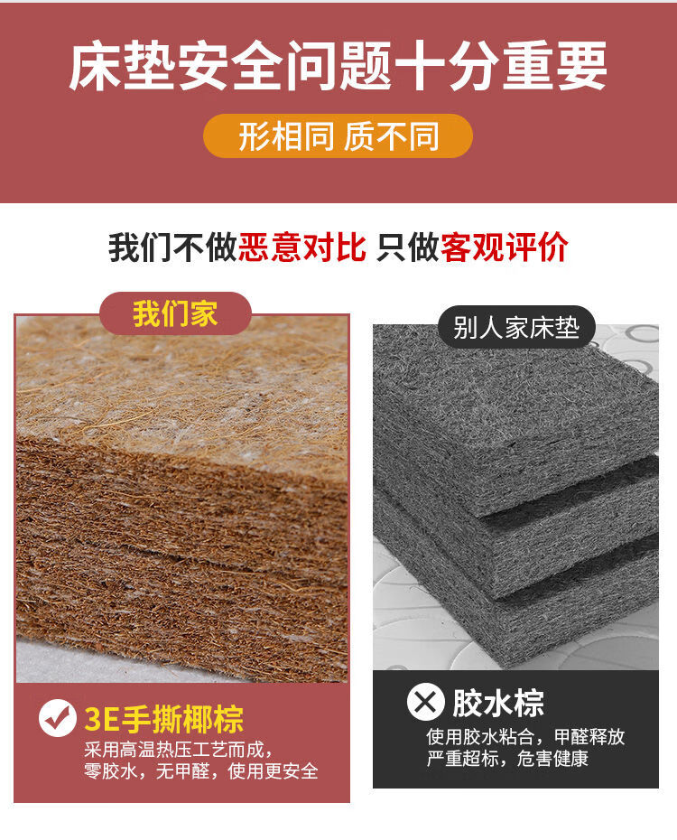 Jiyunmao Spliced Mattress Natural Coconut Palm Mat Baby Mattress Hard Ridge Guard Customized Spliced Mattress Extra Wide Mattress 180cmX30cm No. 1 Color 5cm Thick One-piece Children's Mattress