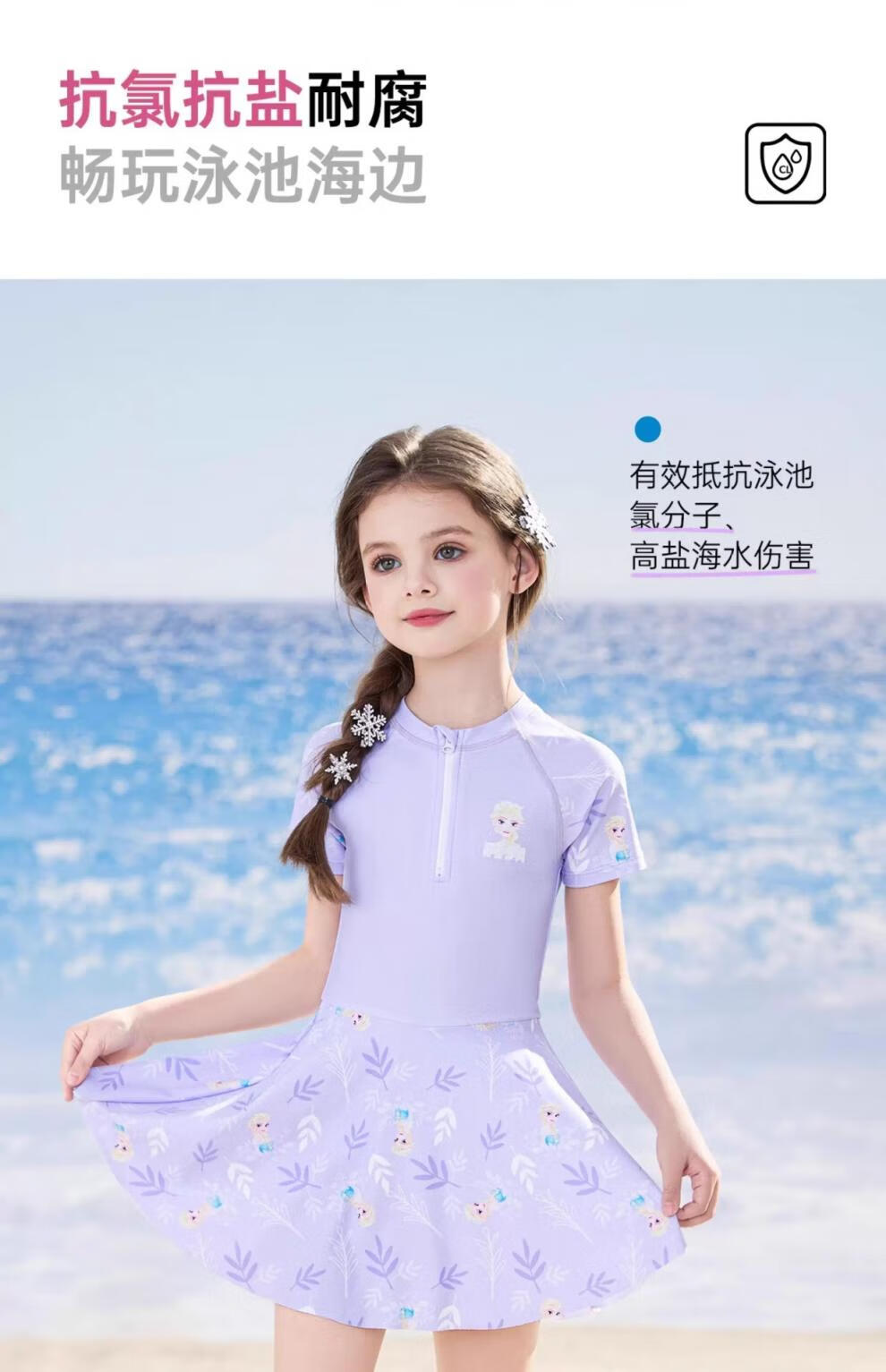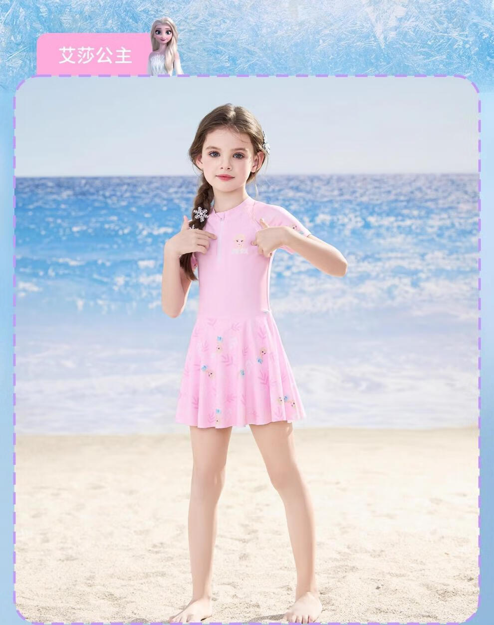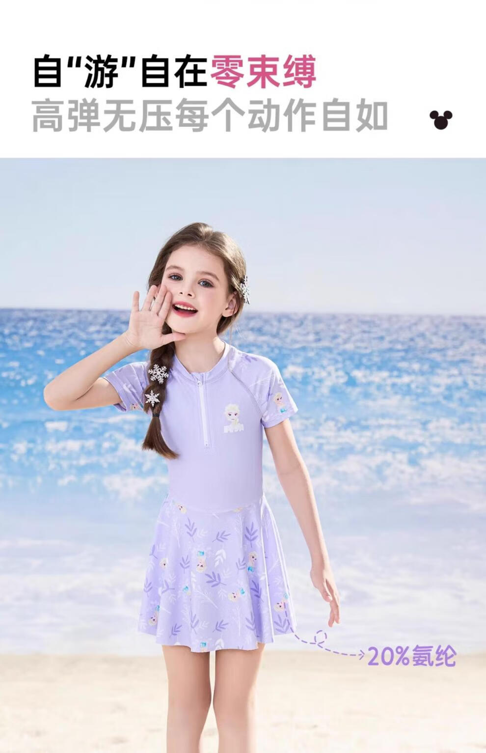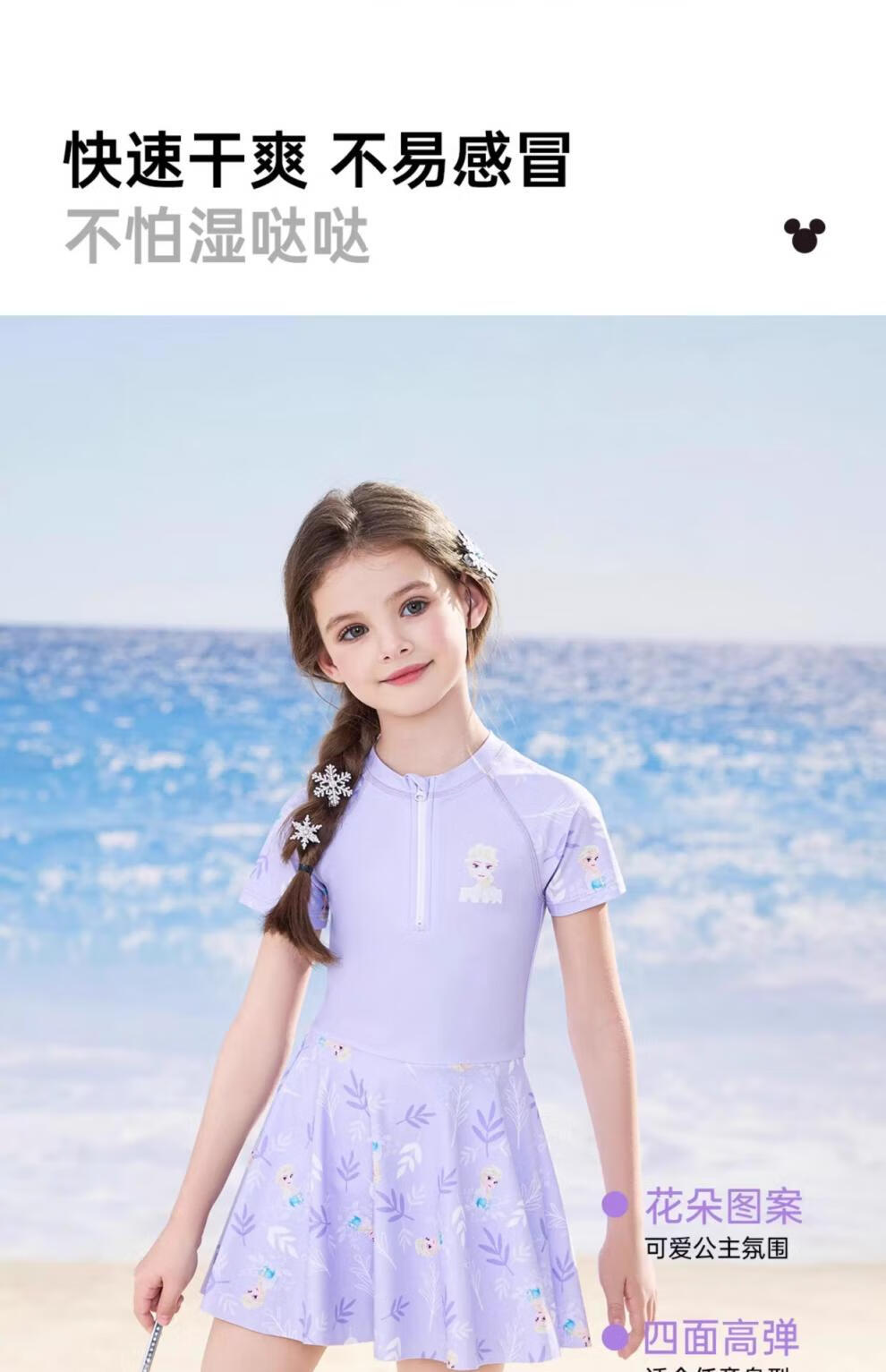Disney children's swimsuit girls one-piece sun protection swimsuit 2025 new girls middle and large children junior high school student training swimsuit pink Princess Elsa 110 100 height 100-110cm weight 25-35Jin Jin is equal to 0.5 kg