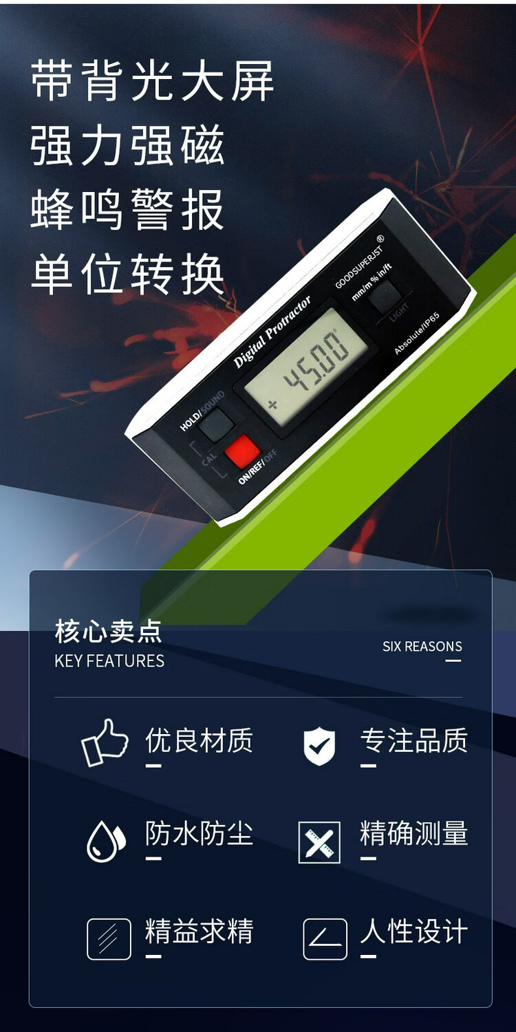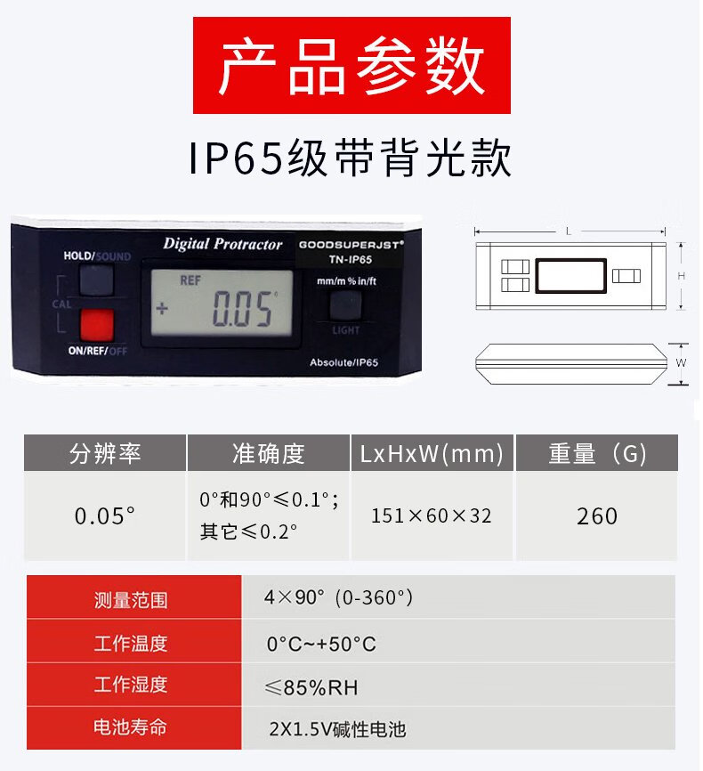 German core waterproof digital display inclinometer TNIP65 level ruler electronic angle ruler with magnetic angle meter small screen 360 TN-XP90 classic small screen model
