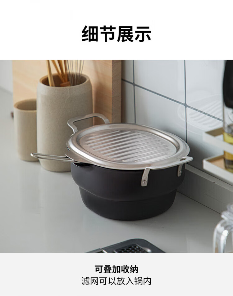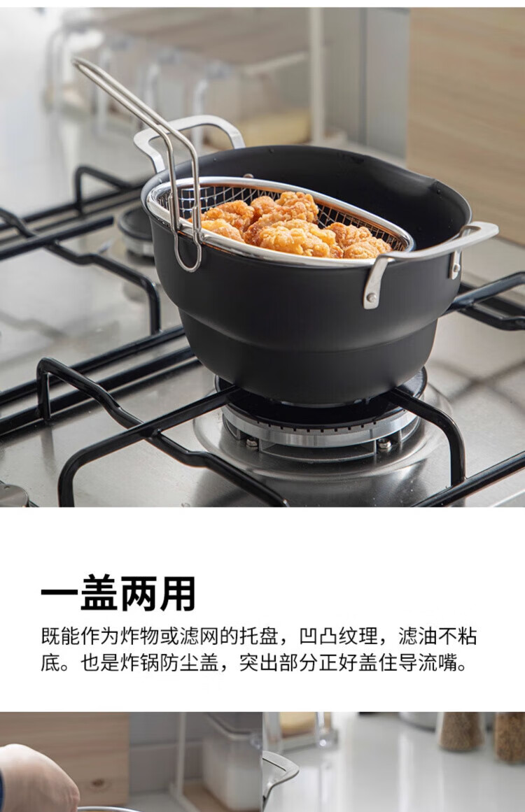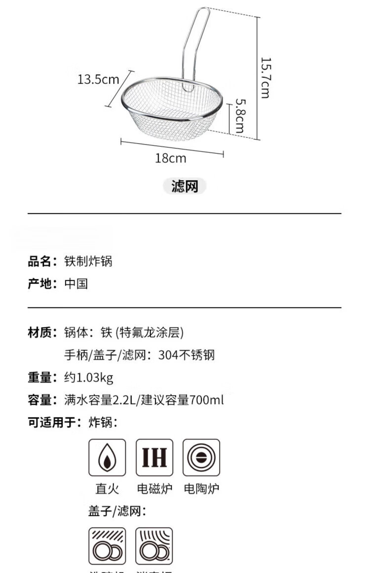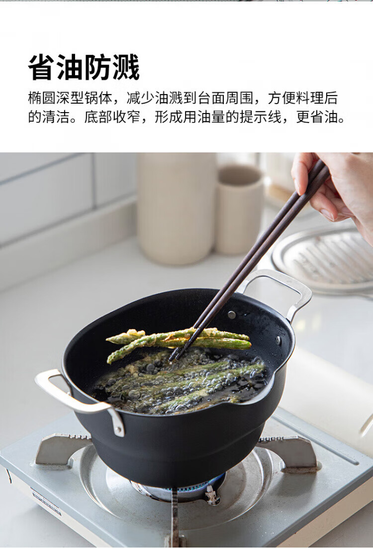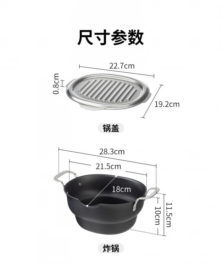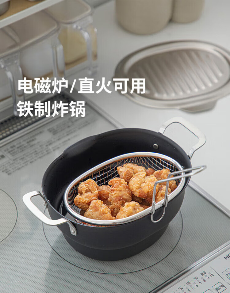 Huayin Teflon coated anti-splash deep fryer oval deep iron fryer tempura fried skewers special small pot three-piece set 1cm 2 points 7cm