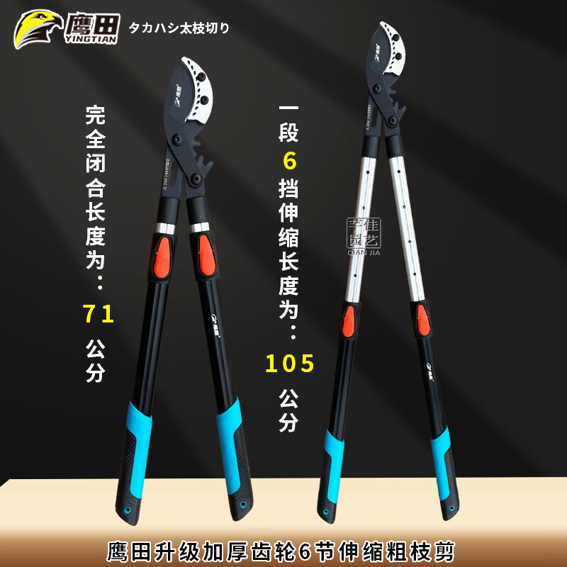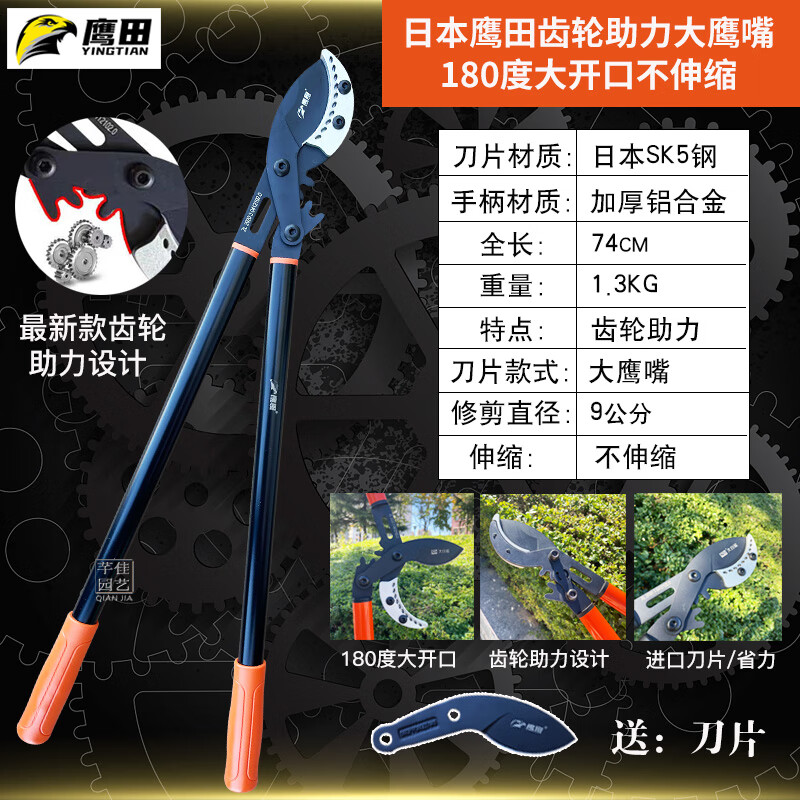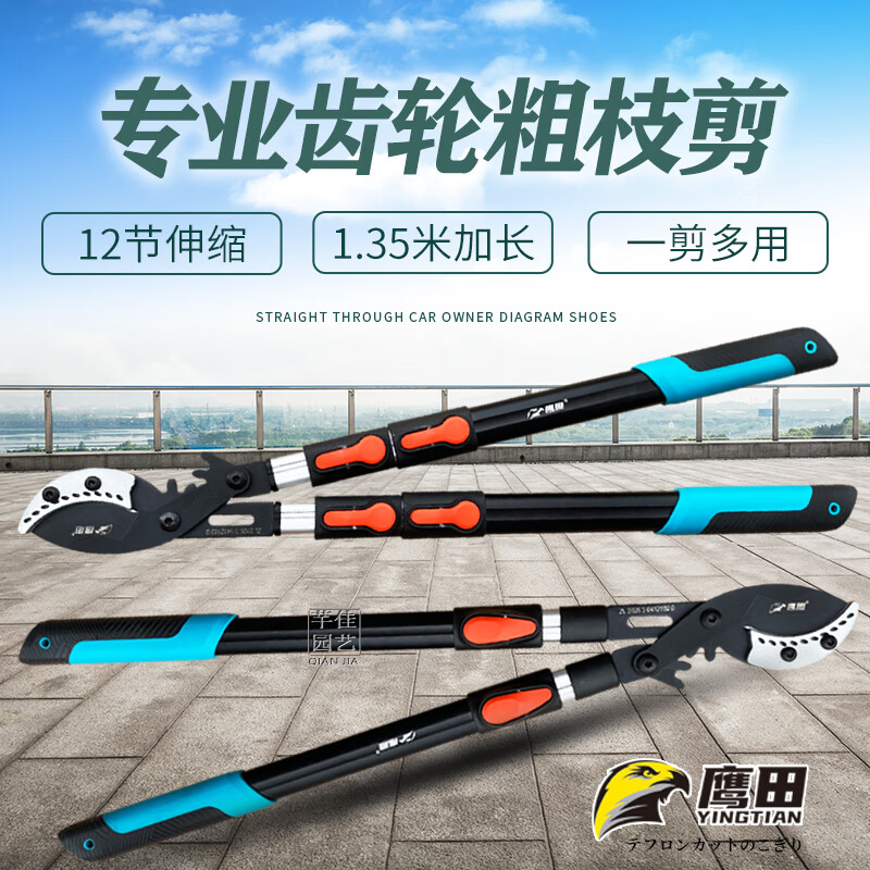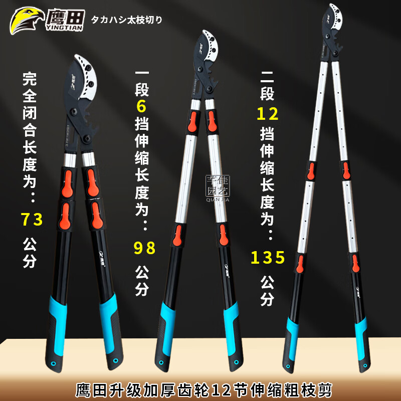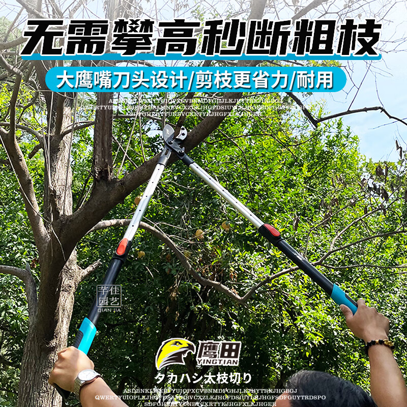 Tijeras para ramas gruesas japonesas Takada Gear Tijeras telescópicas potentes para ramas altas de árboles frutales de jardín y potentes tijeras para ramas gruesas. Tijeras no retráctiles pico de águila 9 cm