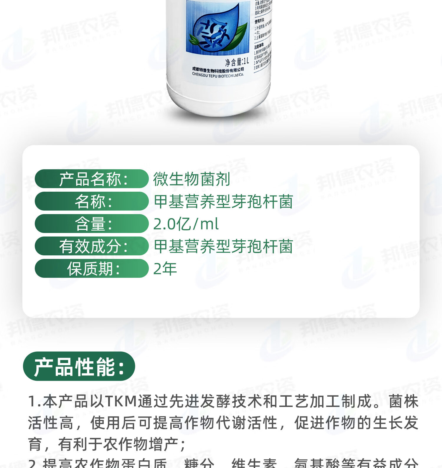 Taikang Woyou methylotrophic Bacillus microbial agent for vegetable cabbage to promote growth and increase yield foliar fertilizer 1L bottle
