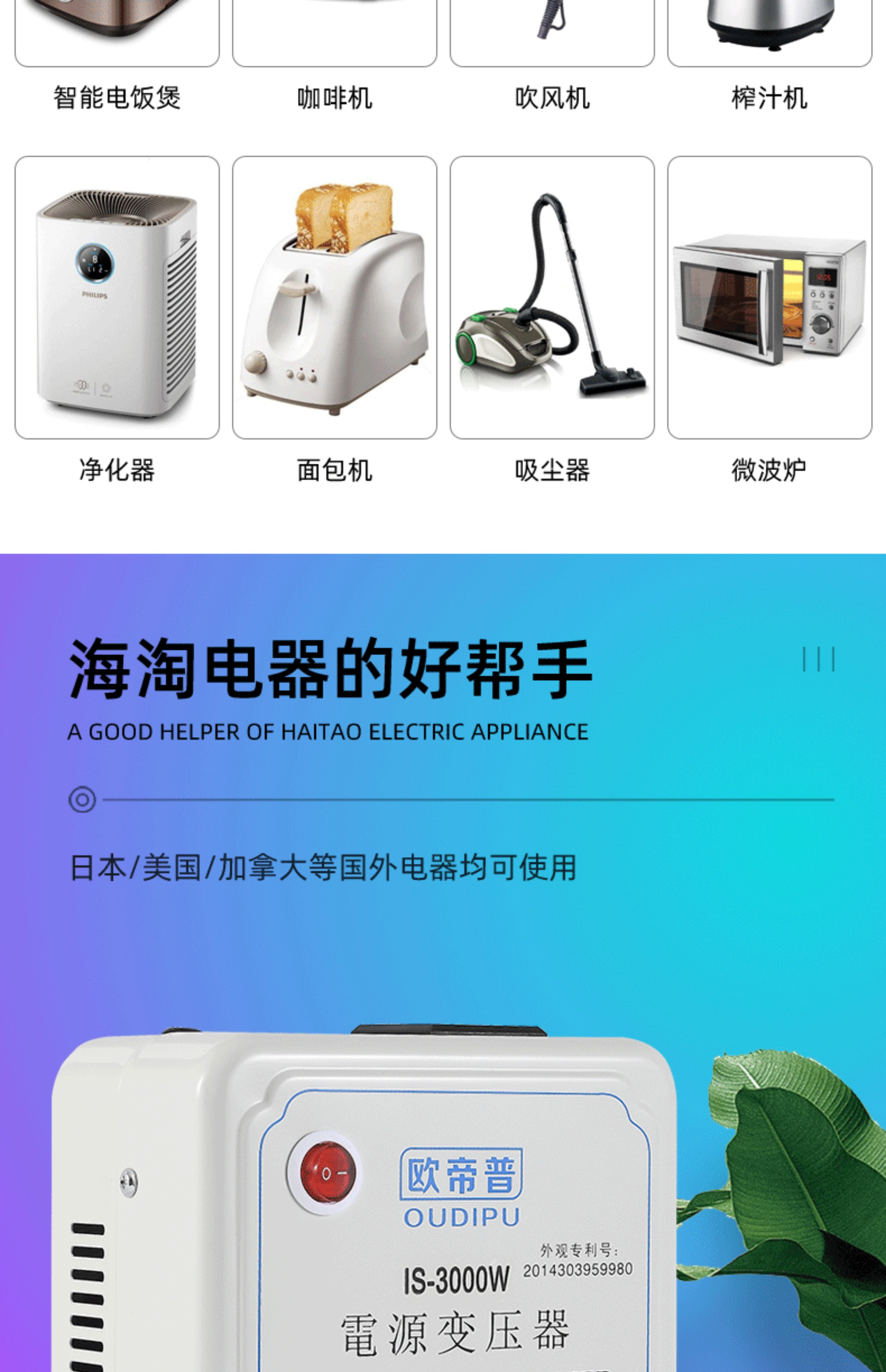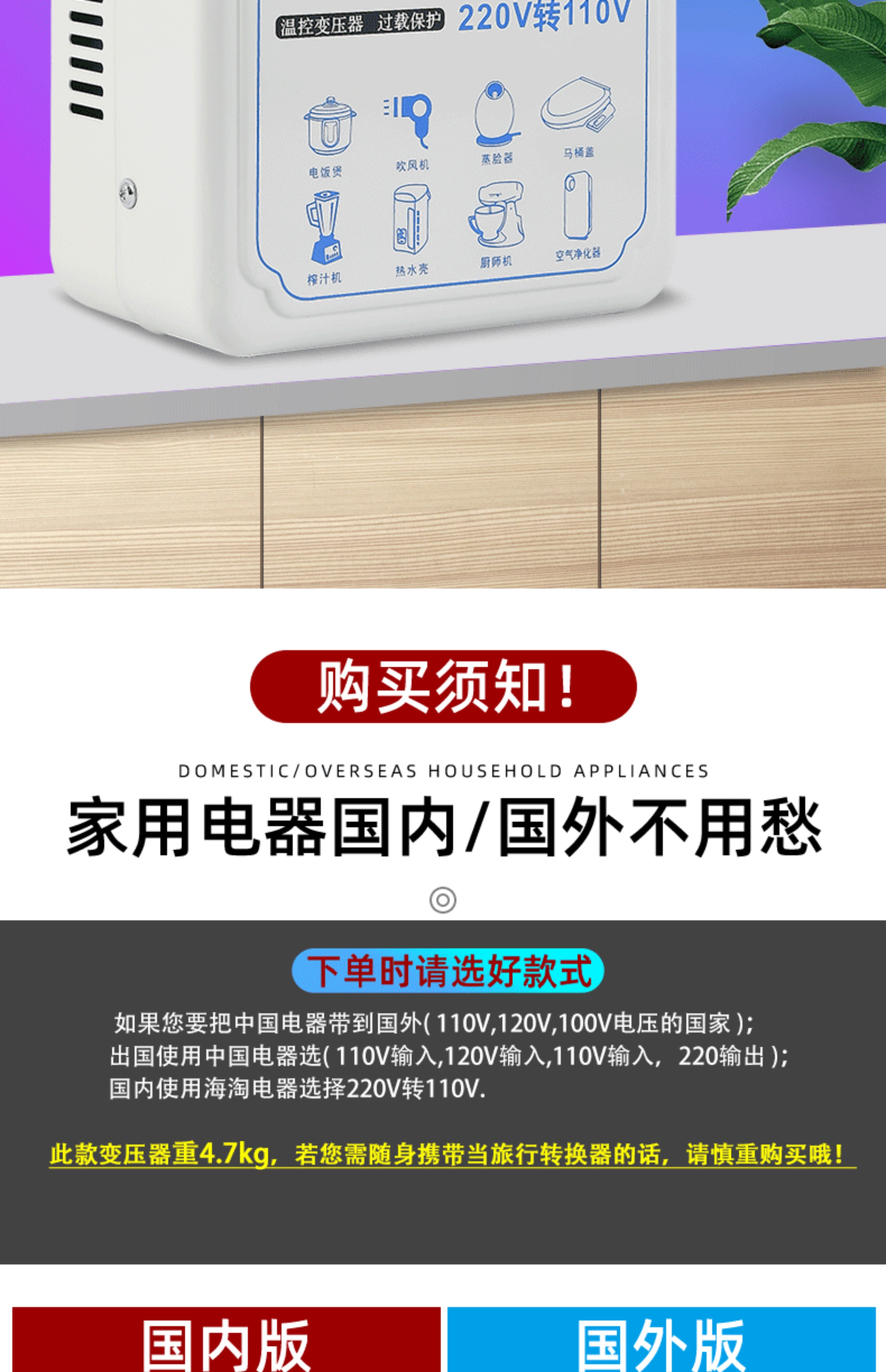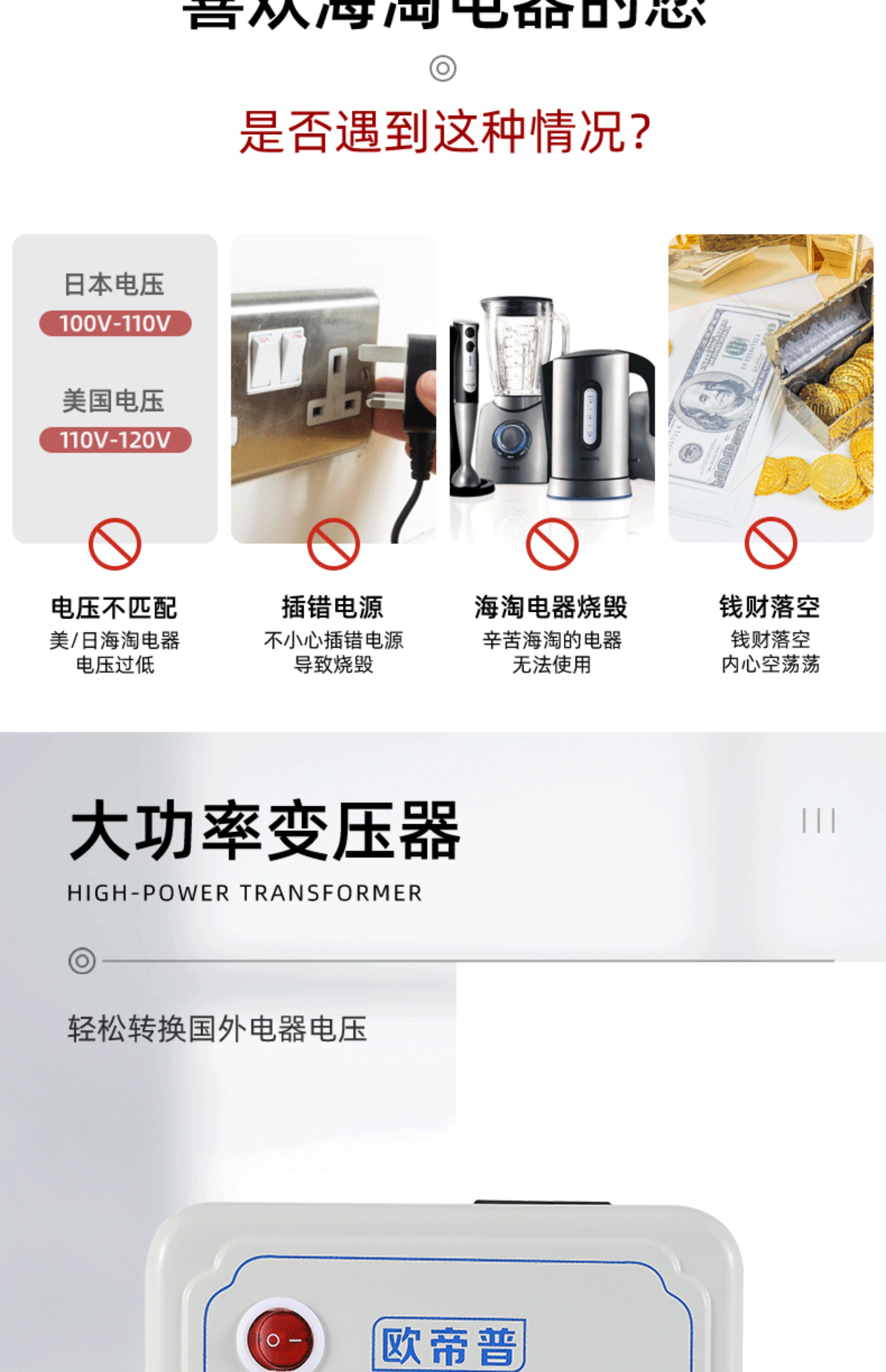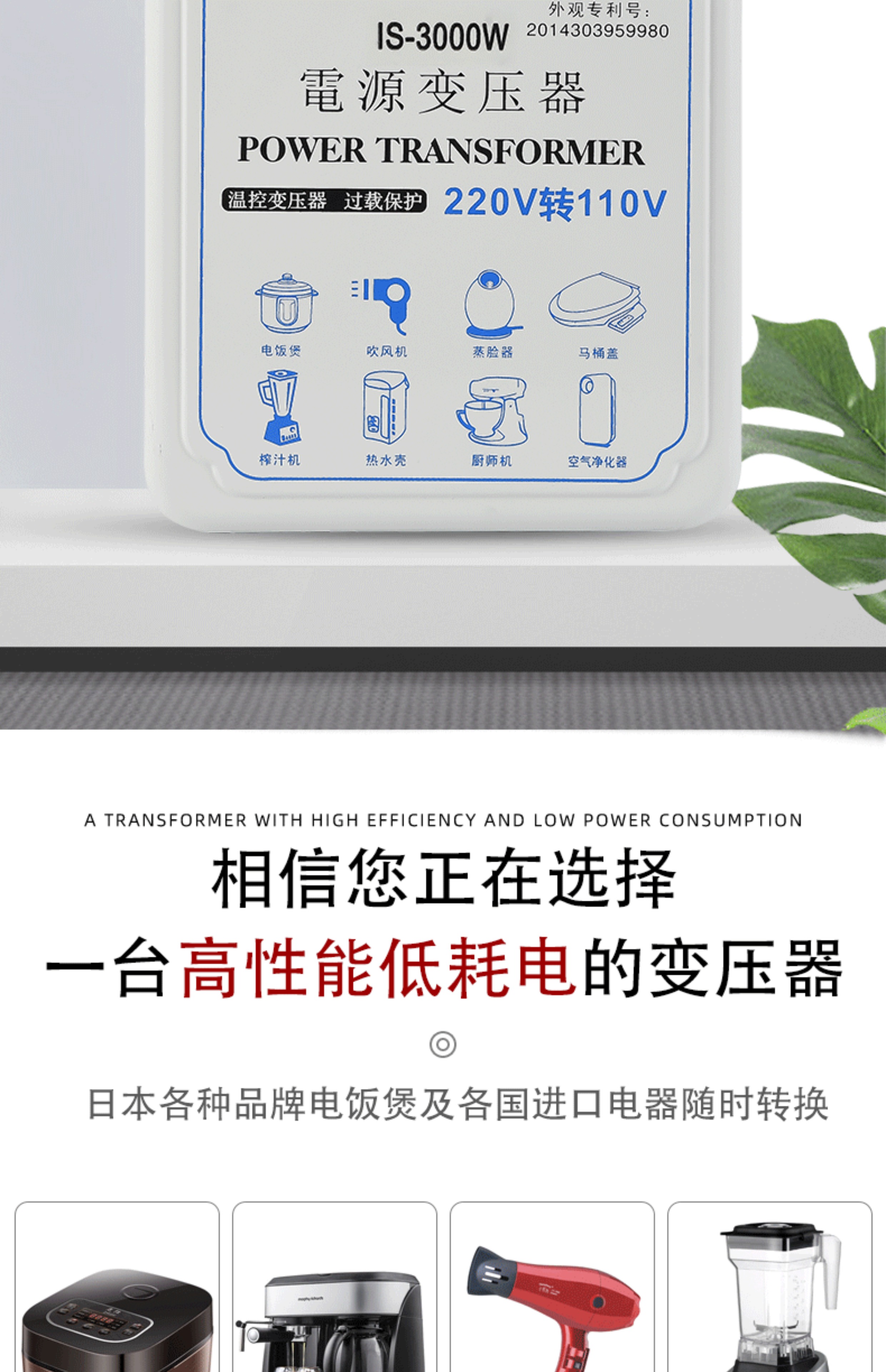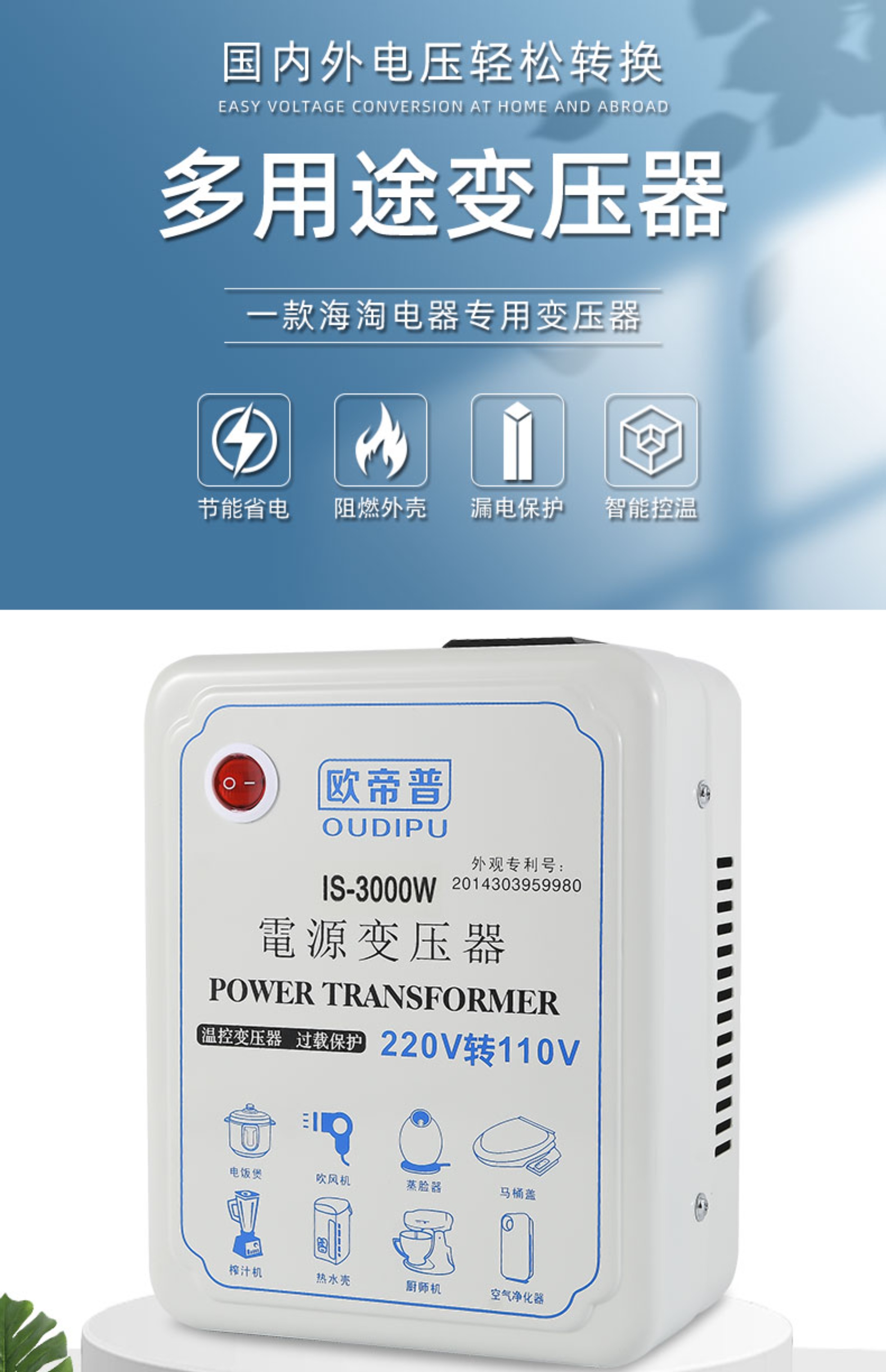 Transformer 220v to 110v power converter 100 buck Japanese 120 volt American tooth cleaner socket plug 220v to 120v domestic peak 3000w
