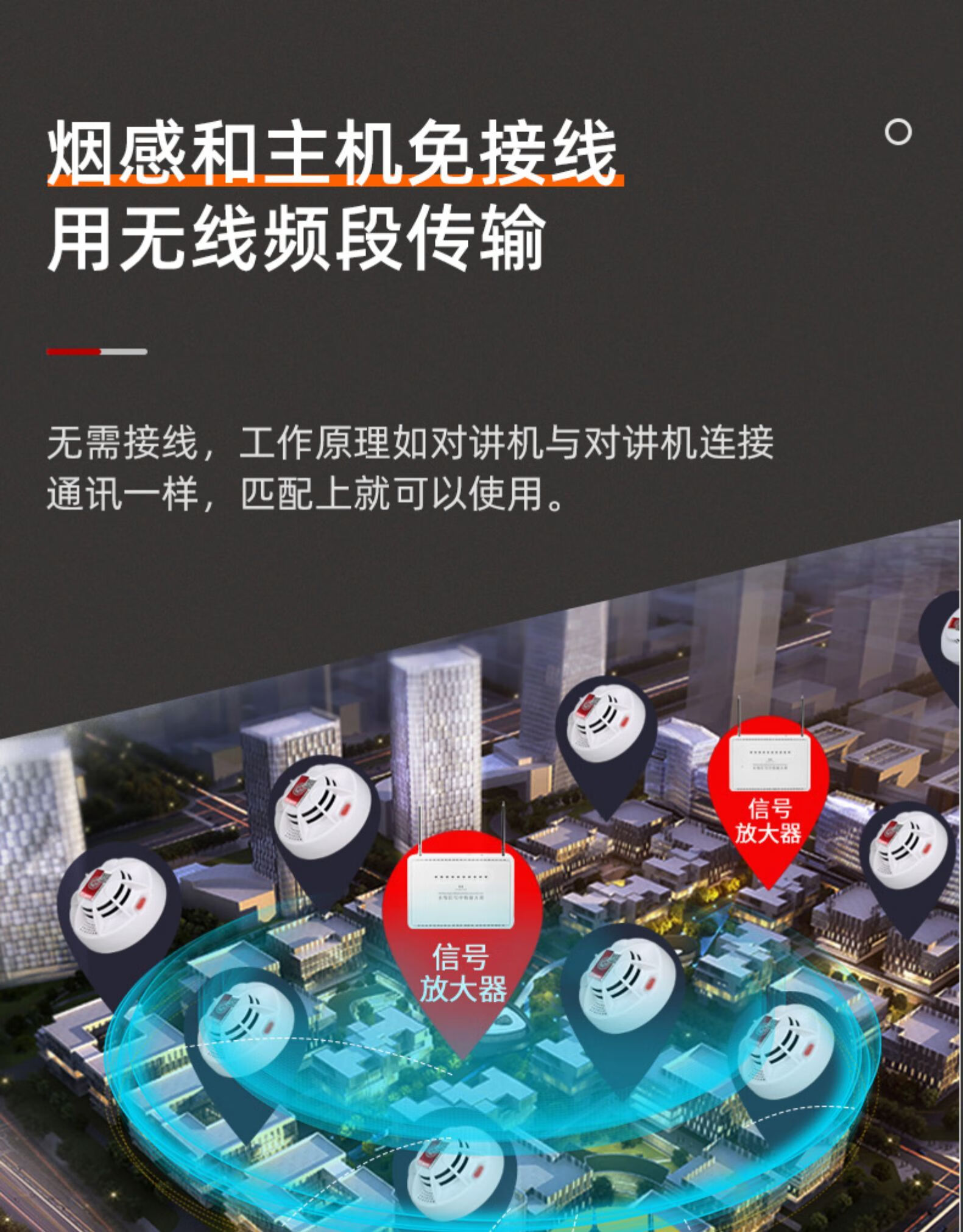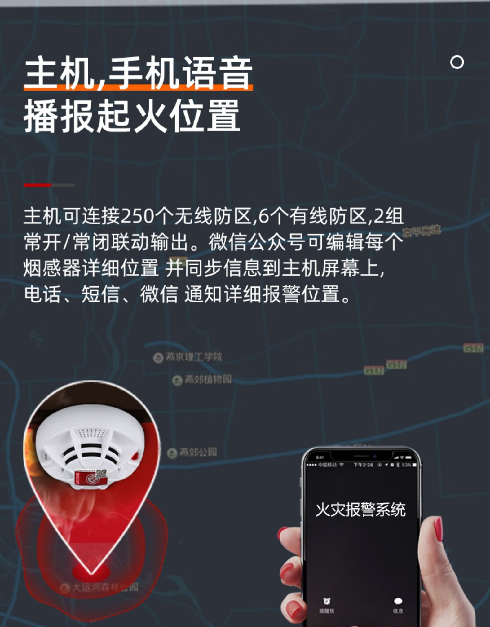 Wireless smoke alarm, commercial smoke alarm, fire-fighting dedicated intelligent remote networked fire sensing system, Internet of Things, alarm host + 20, fire certification, smoke detector