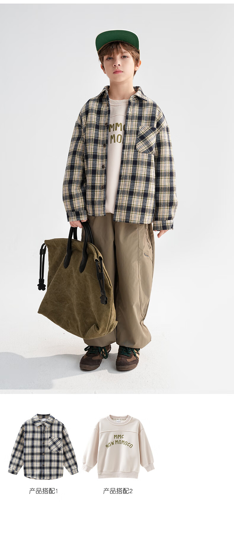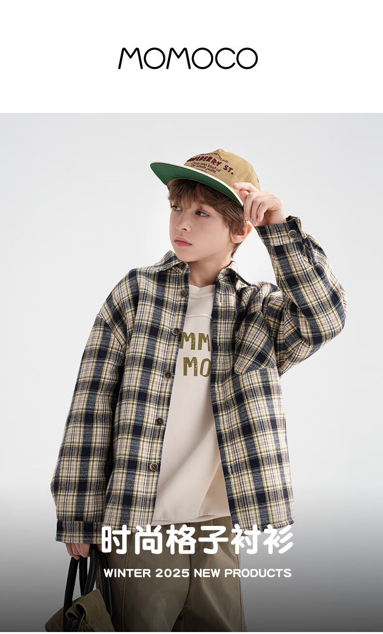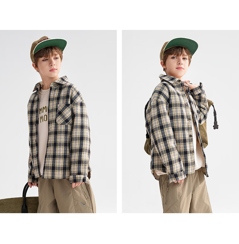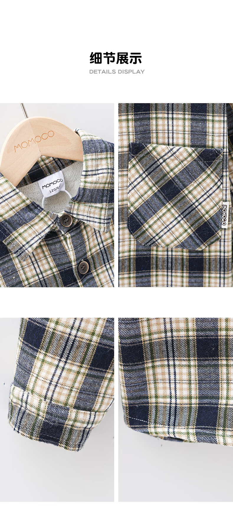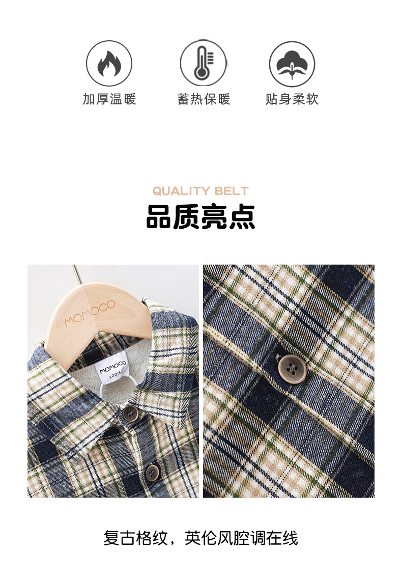 Mami Maka (MOMOCO) children's clothing boys' shirts 2025 winter fashion plaid shirt for middle and large children, navy plaid 120