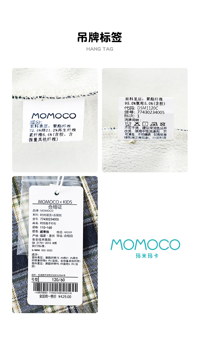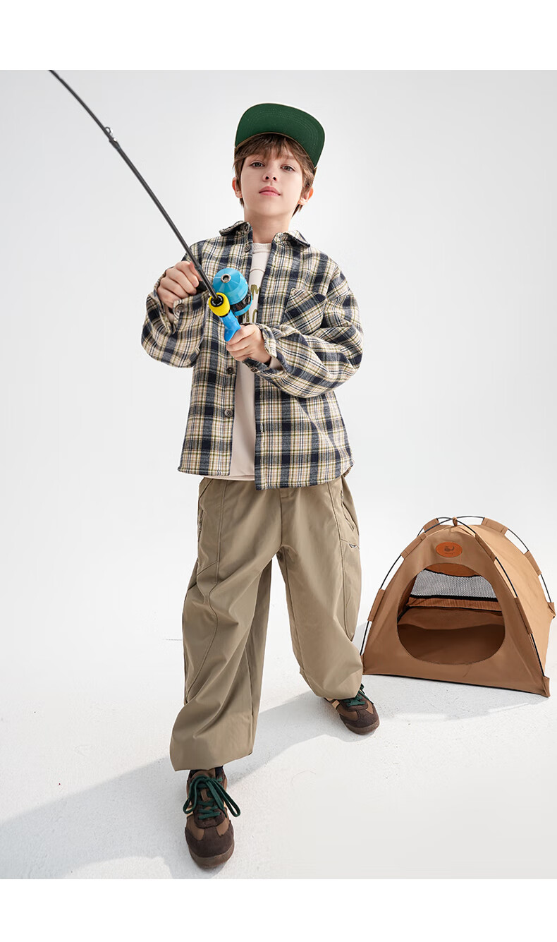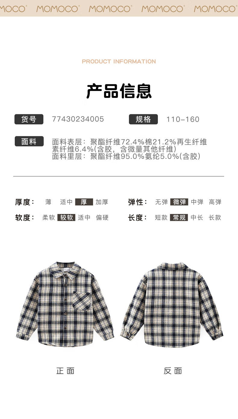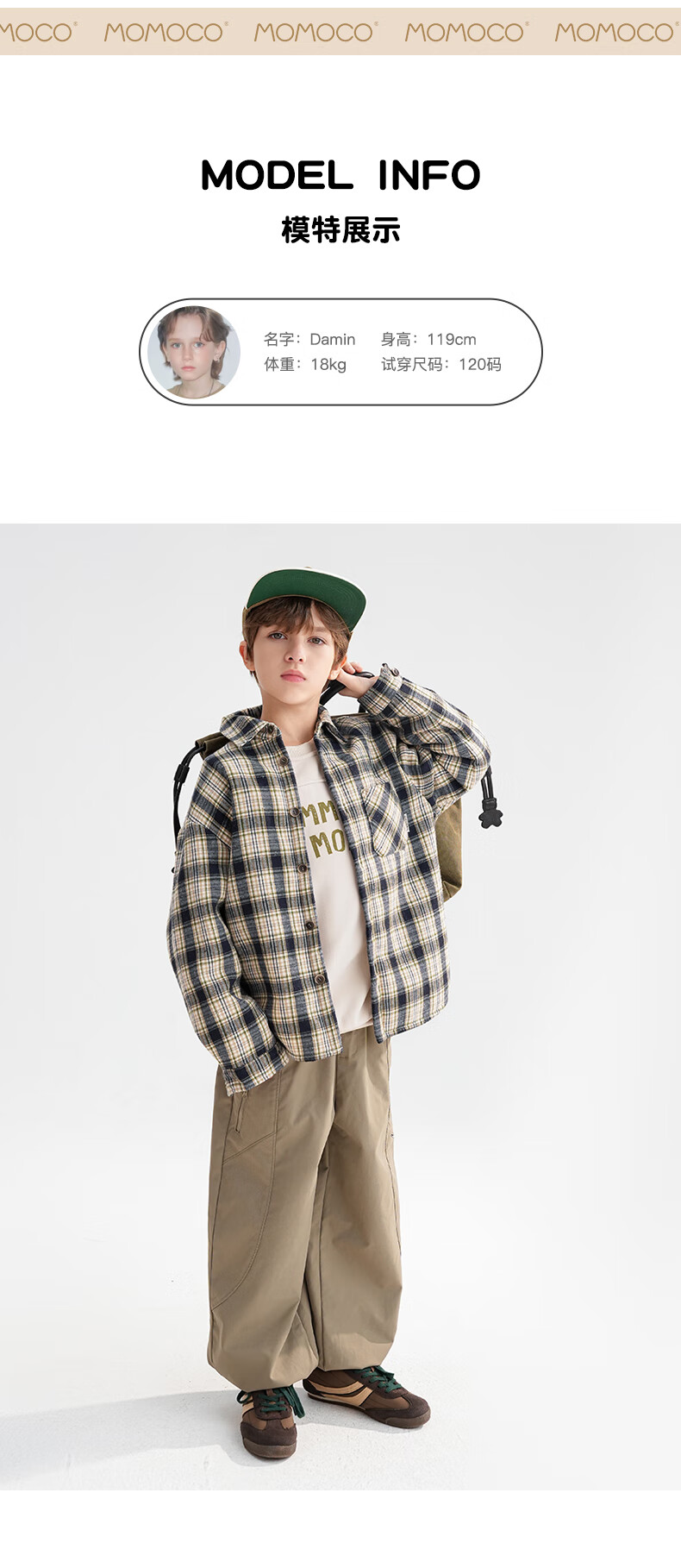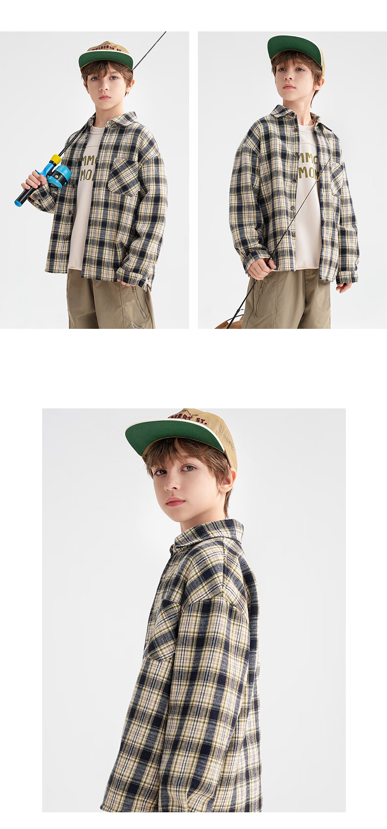 Mami Maka (MOMOCO) children's clothing boys' shirts 2025 winter fashion plaid shirt for middle and large children, navy plaid 120
