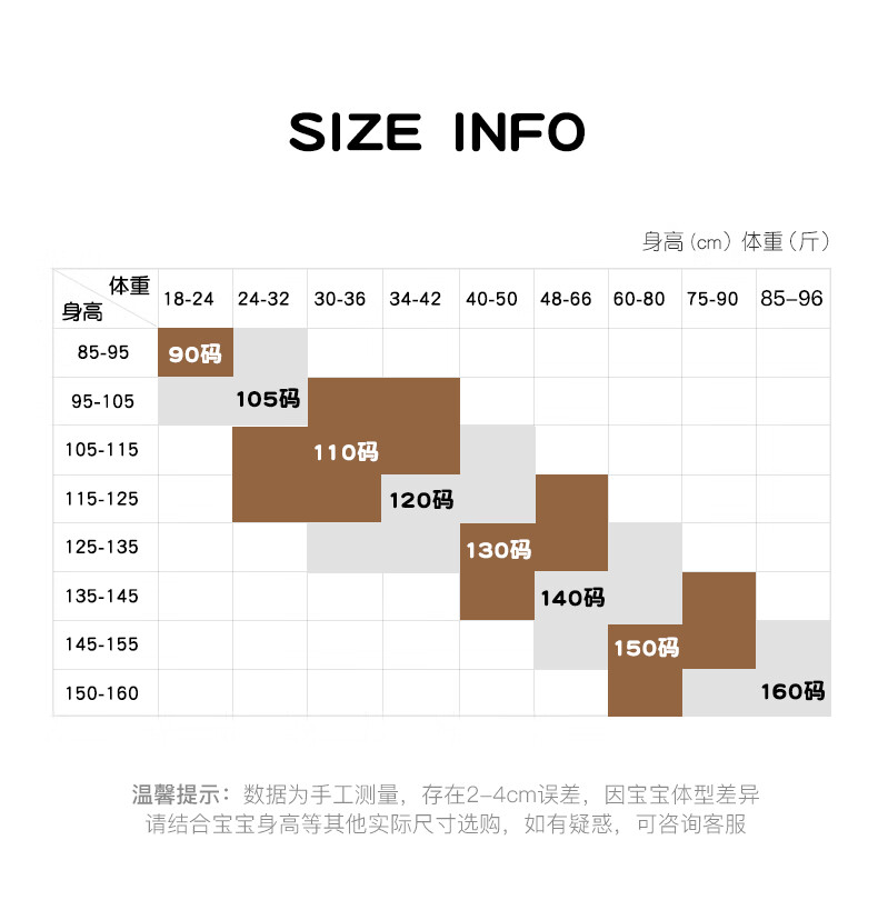 China (cm) 160-165/84-86 165-170 / 88-90 167-172 / 92-96 168-173 / 98-102 170-176 / 106-110
