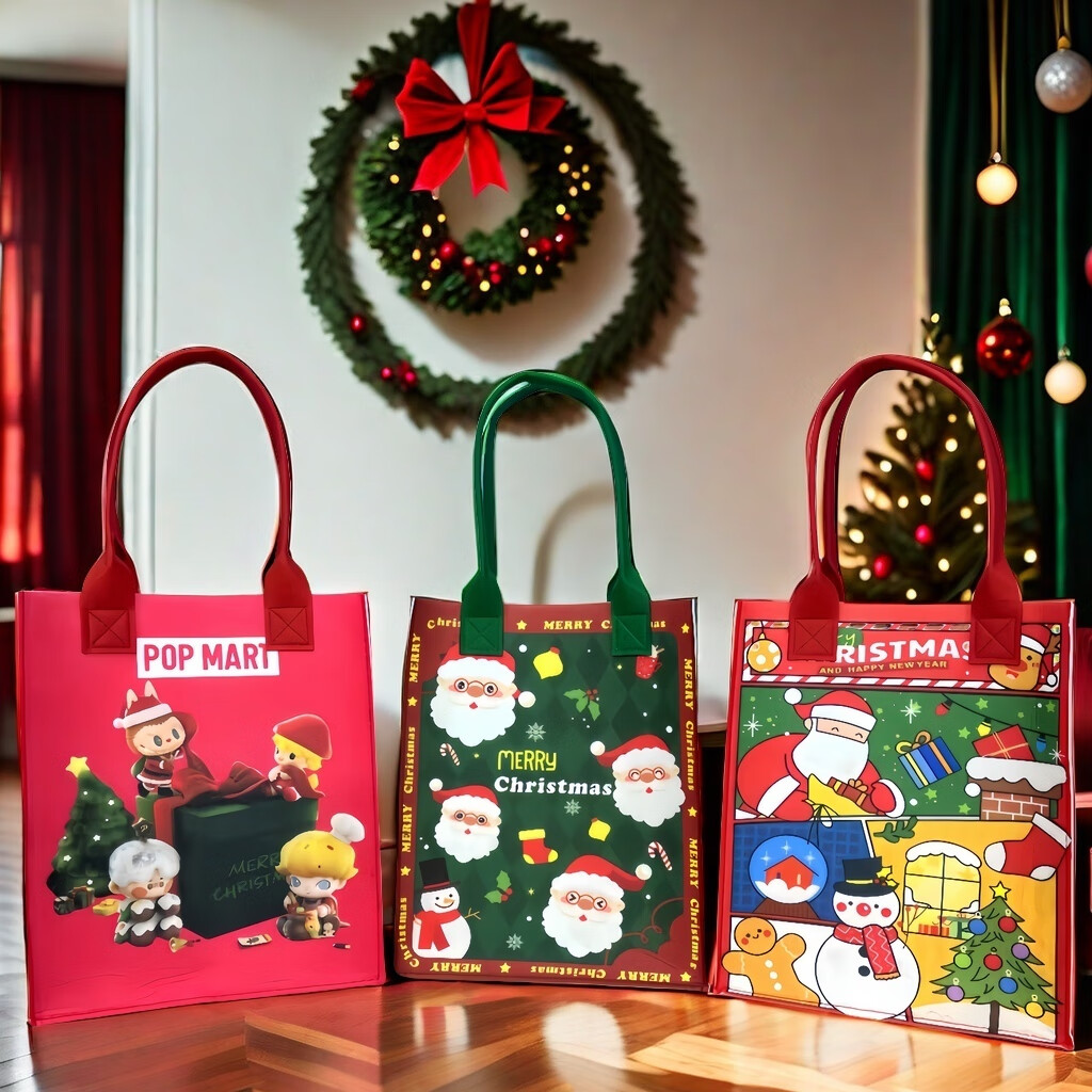 Christmas cartoon non-woven gift bag handbag Christmas green