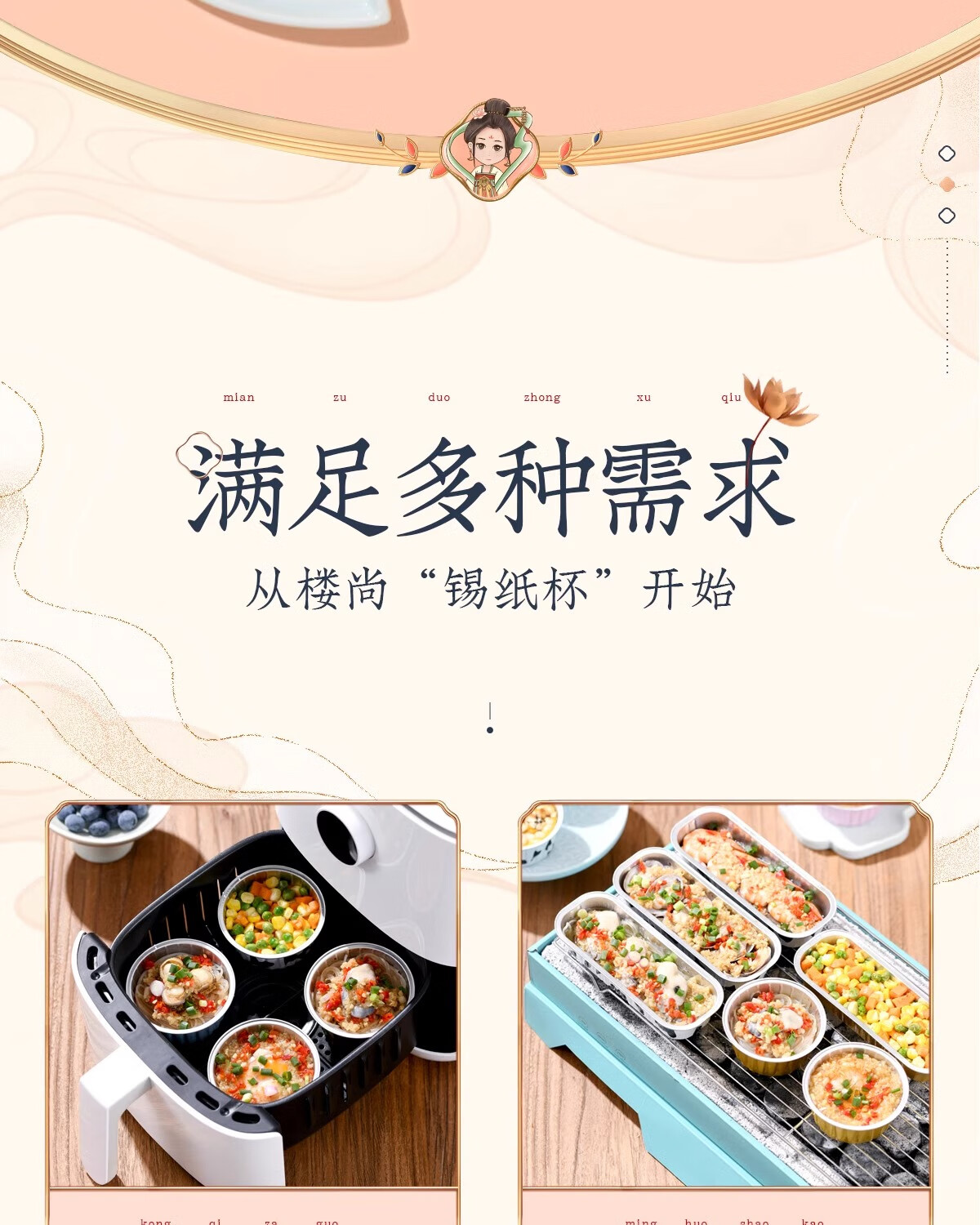 Xincong Air Fryer Special Tin Foil Bowl Egg Cup Shrimp Pulled Egg BBQ Oven Baking Mold Small Bake-resistant Pudding Cup Upgraded Extra Thick Cow Model 20 Pack Can Be Used Repeatedly