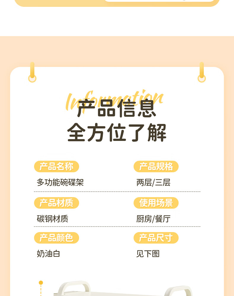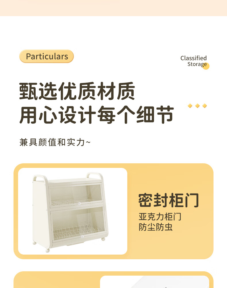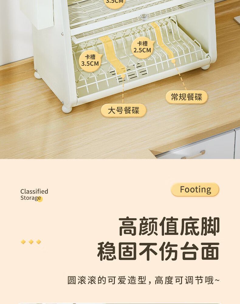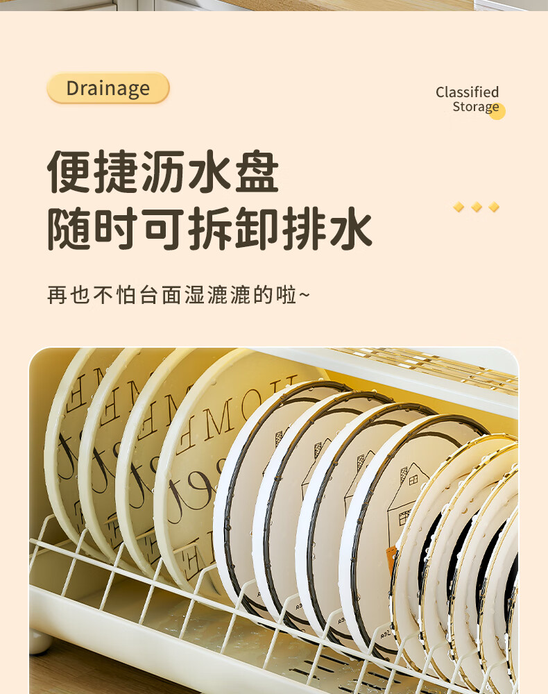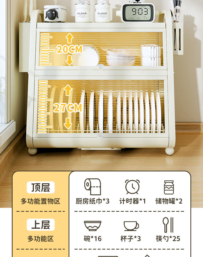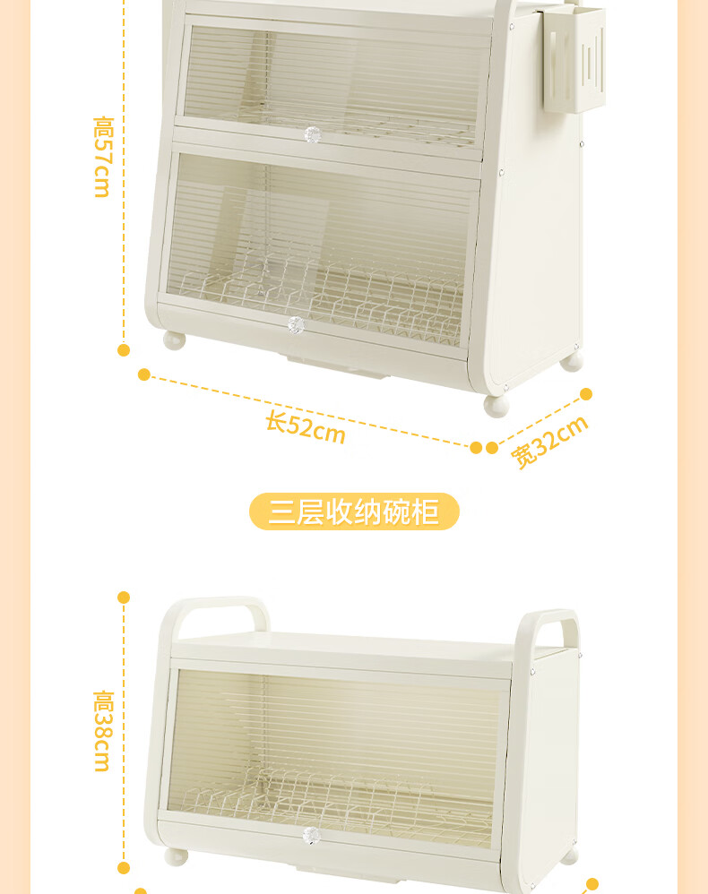 Shijanu kitchen dish cabinet dish storage shelf countertop household dish storage tableware bowl chopstick box drain rack extended 52CM milk white - three-layer dish cabinet (drain tray + knife holder +