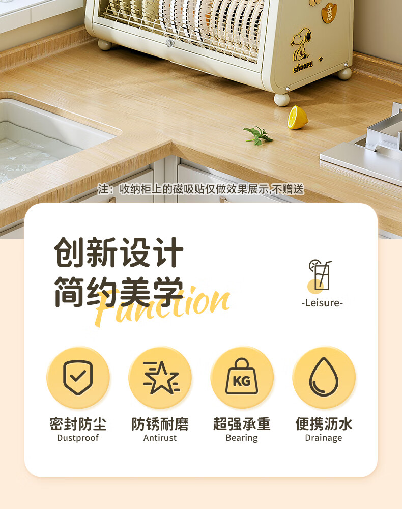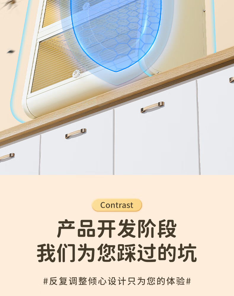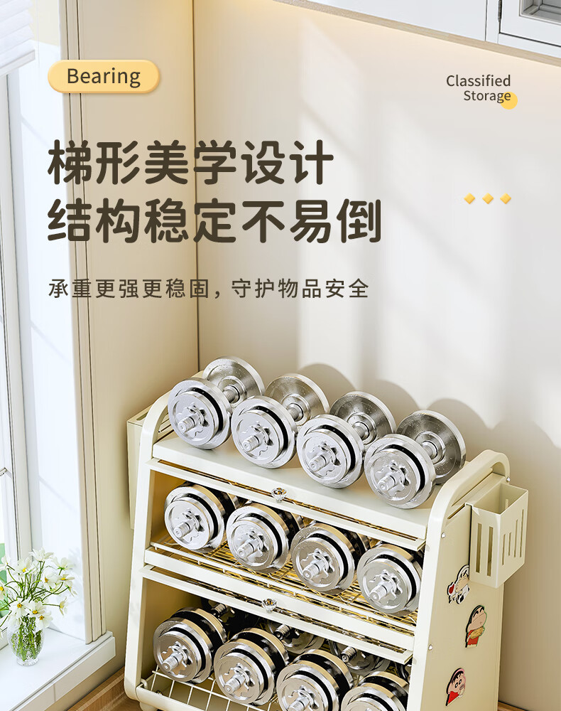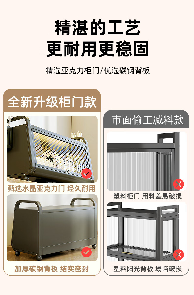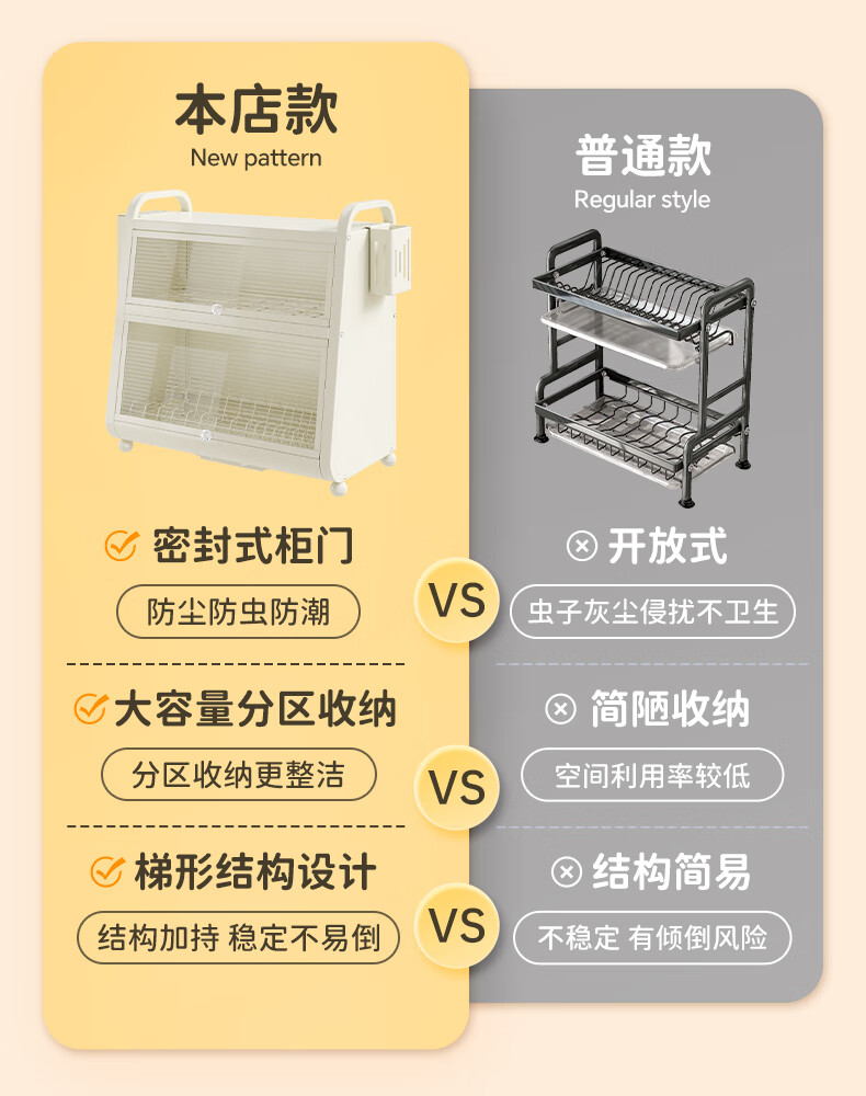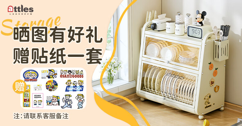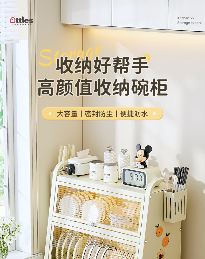 Shijanu kitchen dish cabinet dish storage shelf countertop household dish storage tableware bowl chopstick box drain rack extended 52CM milk white - three-layer dish cabinet (drain tray + knife holder +