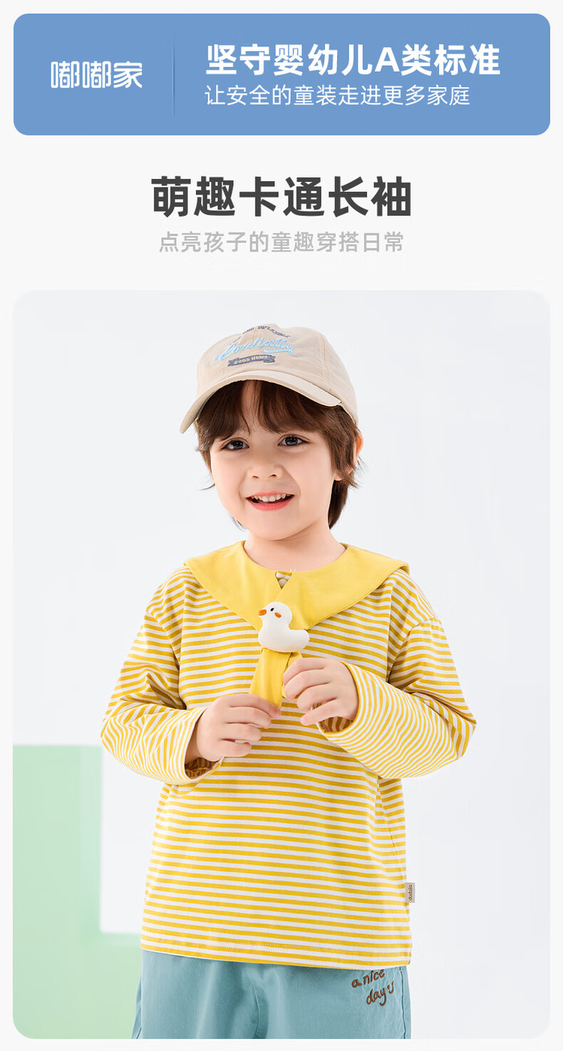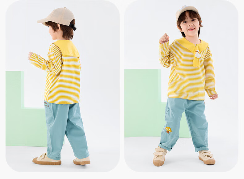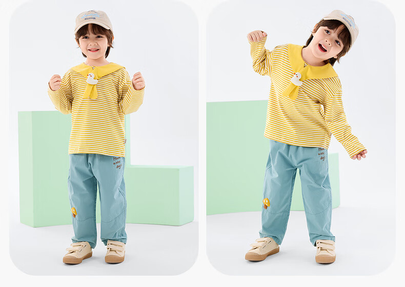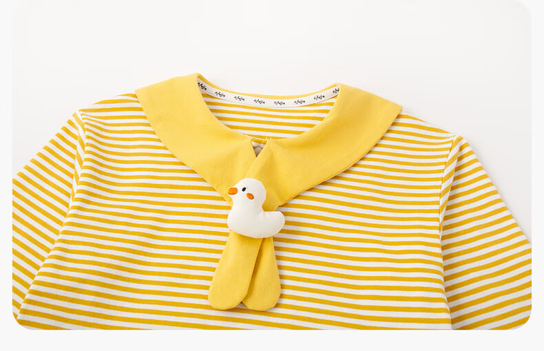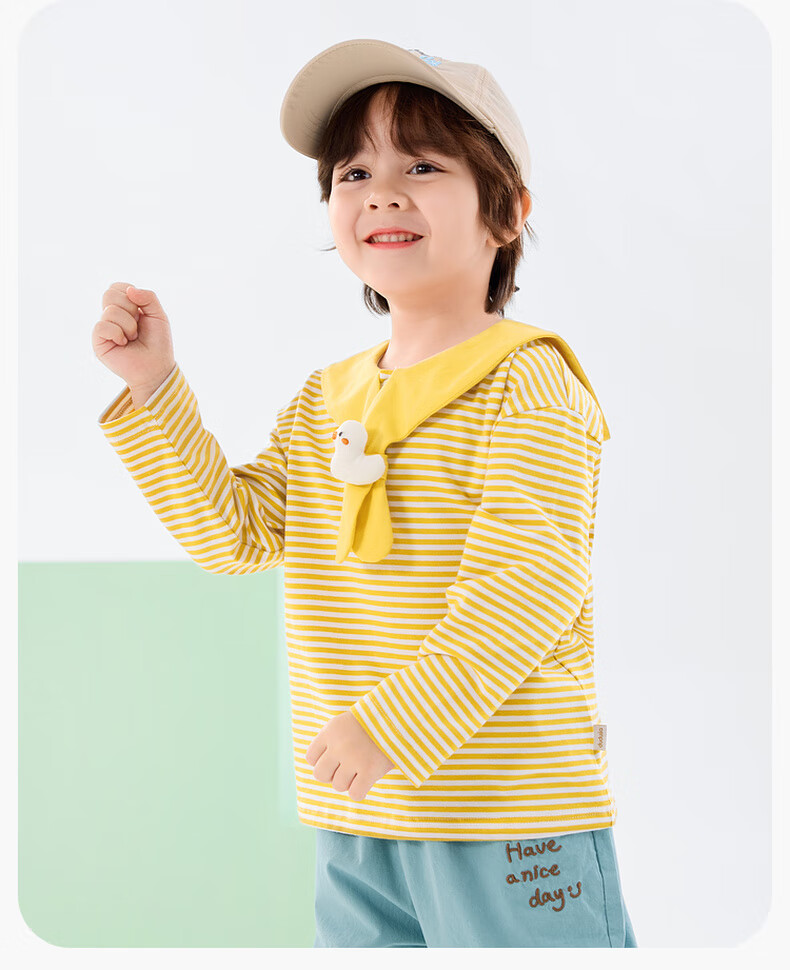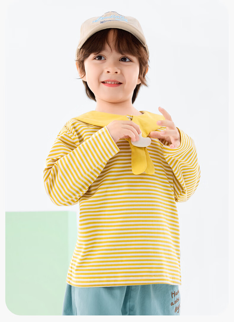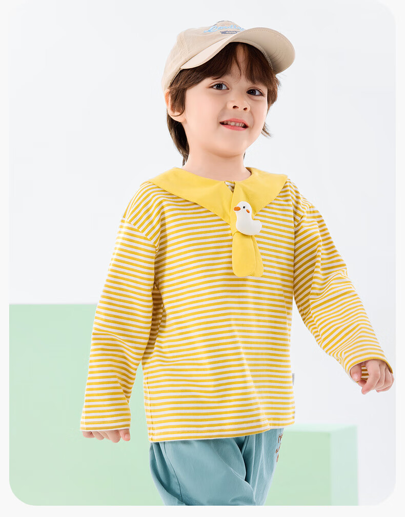 Dudujia College Style Boys T-shirt Spring Clothes Children Skin Friendly Casual Long Sleeve Girls Versatile Spring Shawl Collar Top Yellow Stripes 120