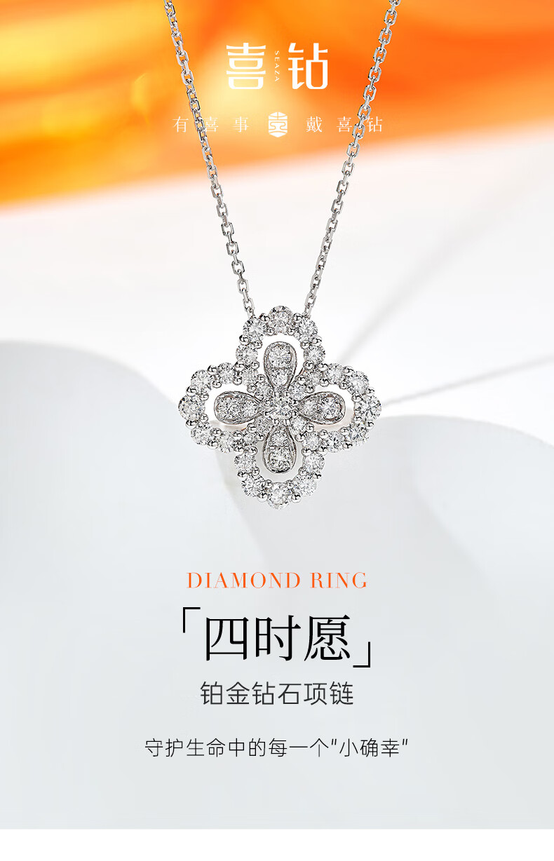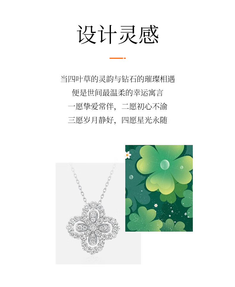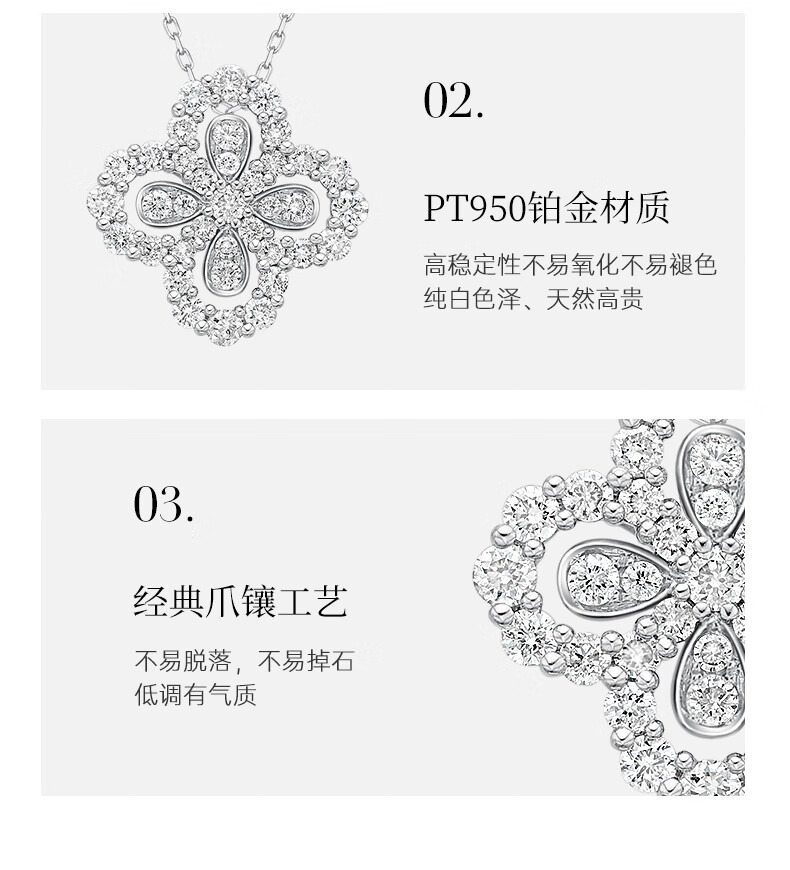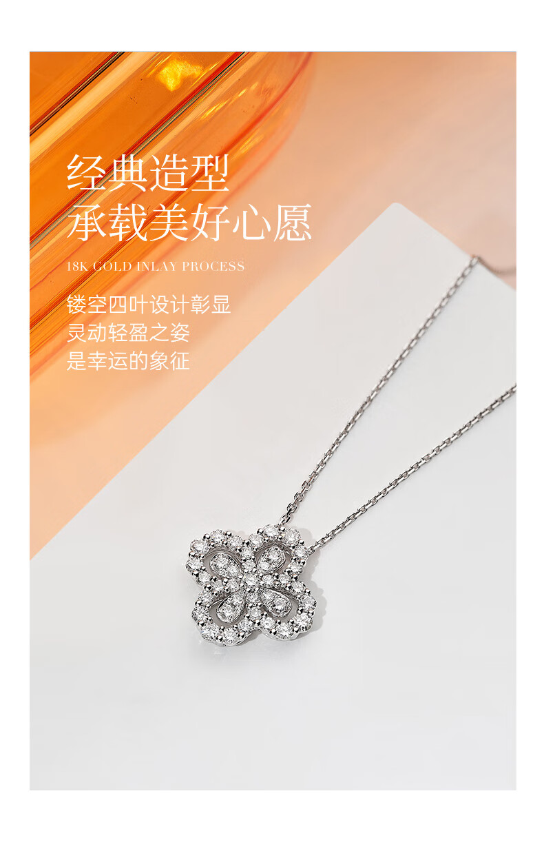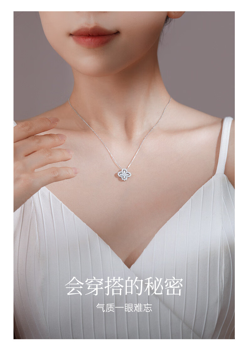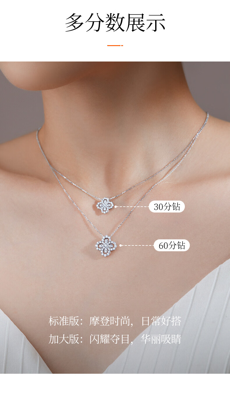 Diamonds in stock, Valentine's Day gift, platinum diamond necklace for women, four-leaf clover diamond necklace, versatile clavicle chain pendant, total 40 points + flash o platinum necklace (J20823+S0169)