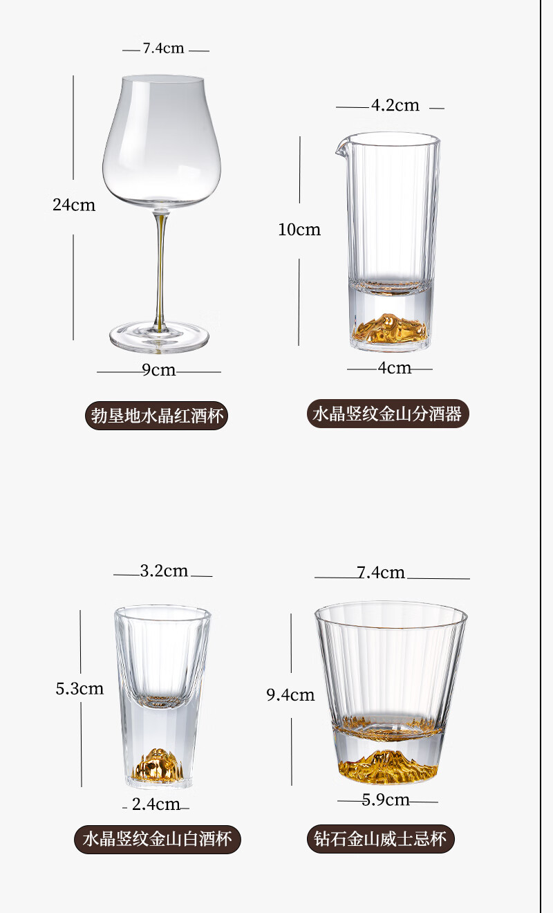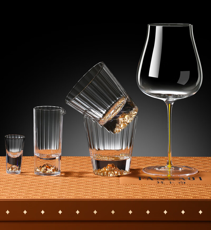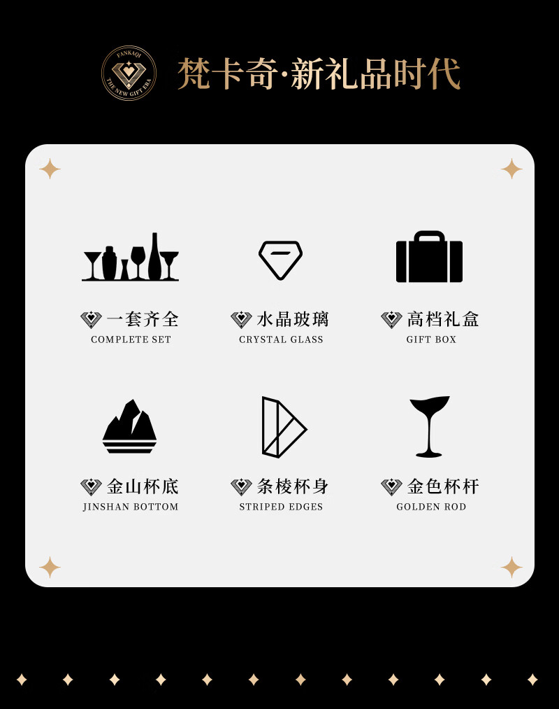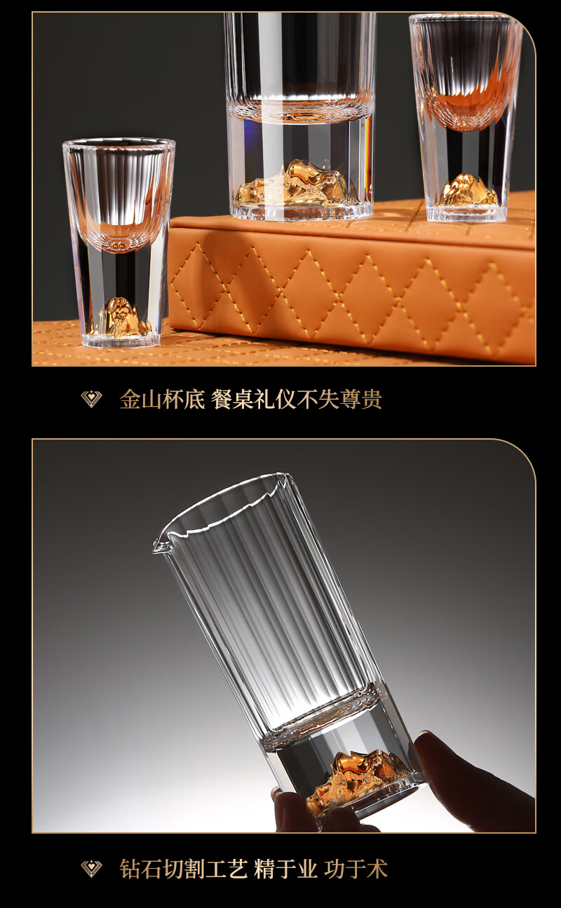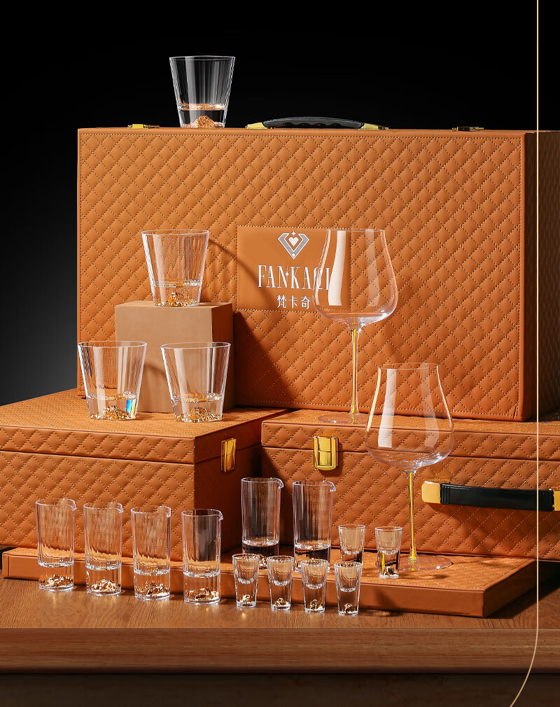 FANKAQI high-end luxury red wine glass, white wine glass, foreign wine glass, collection wine set gift box, collection wine set gift box, 18-piece set, yellow leather