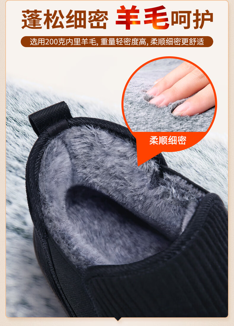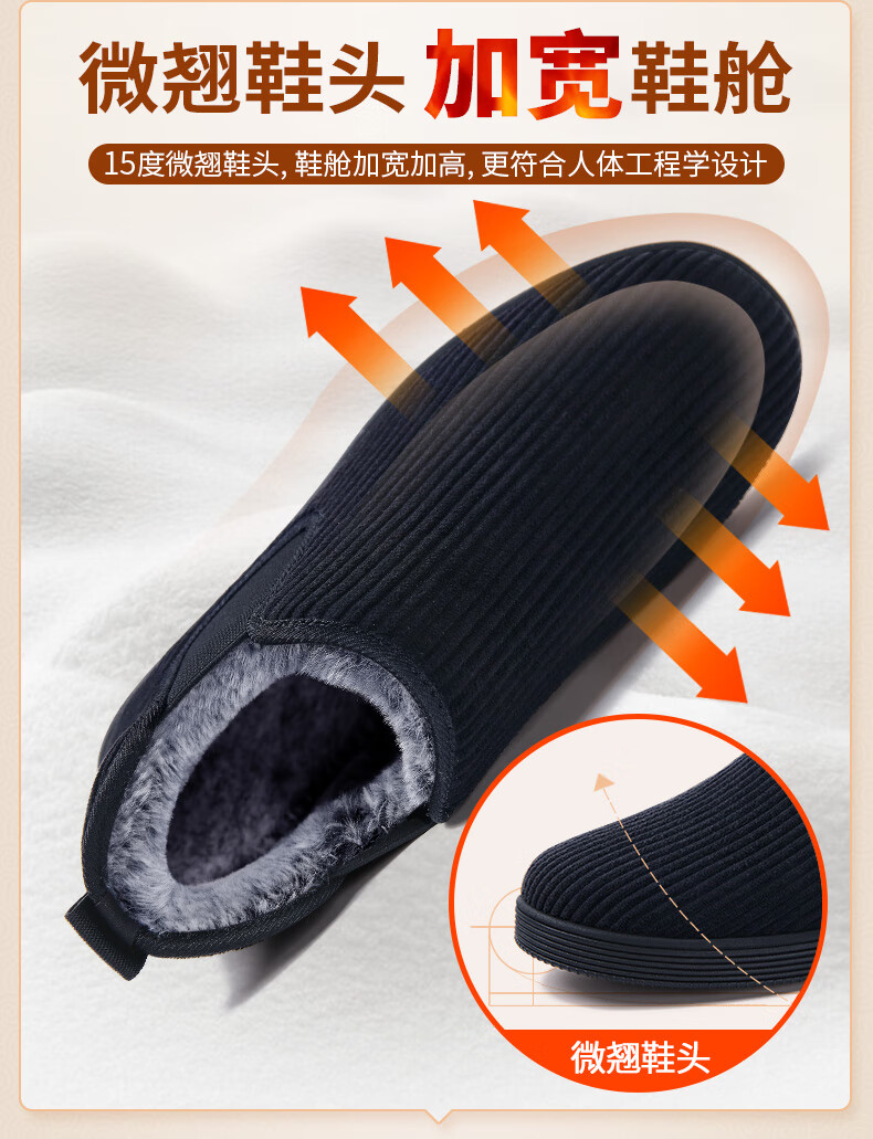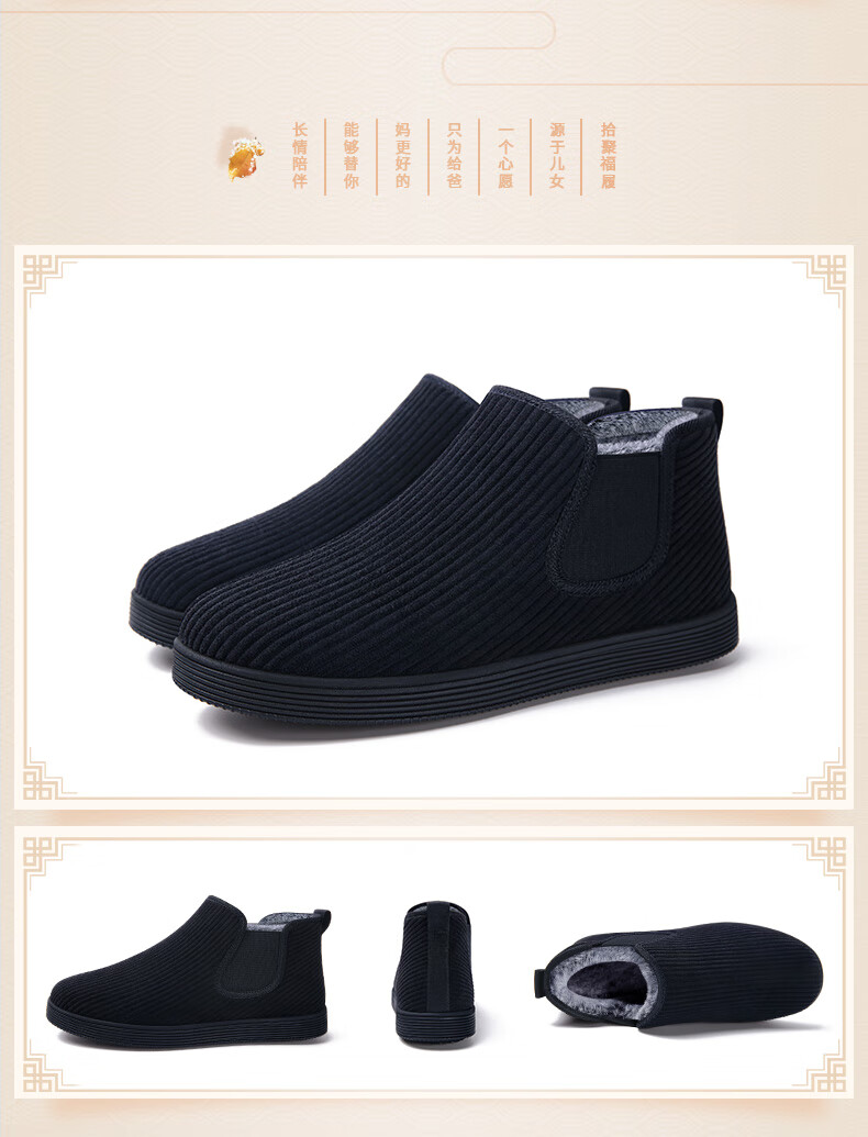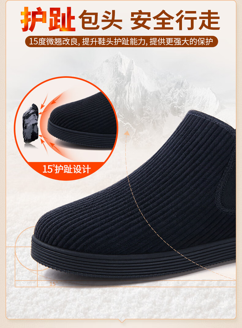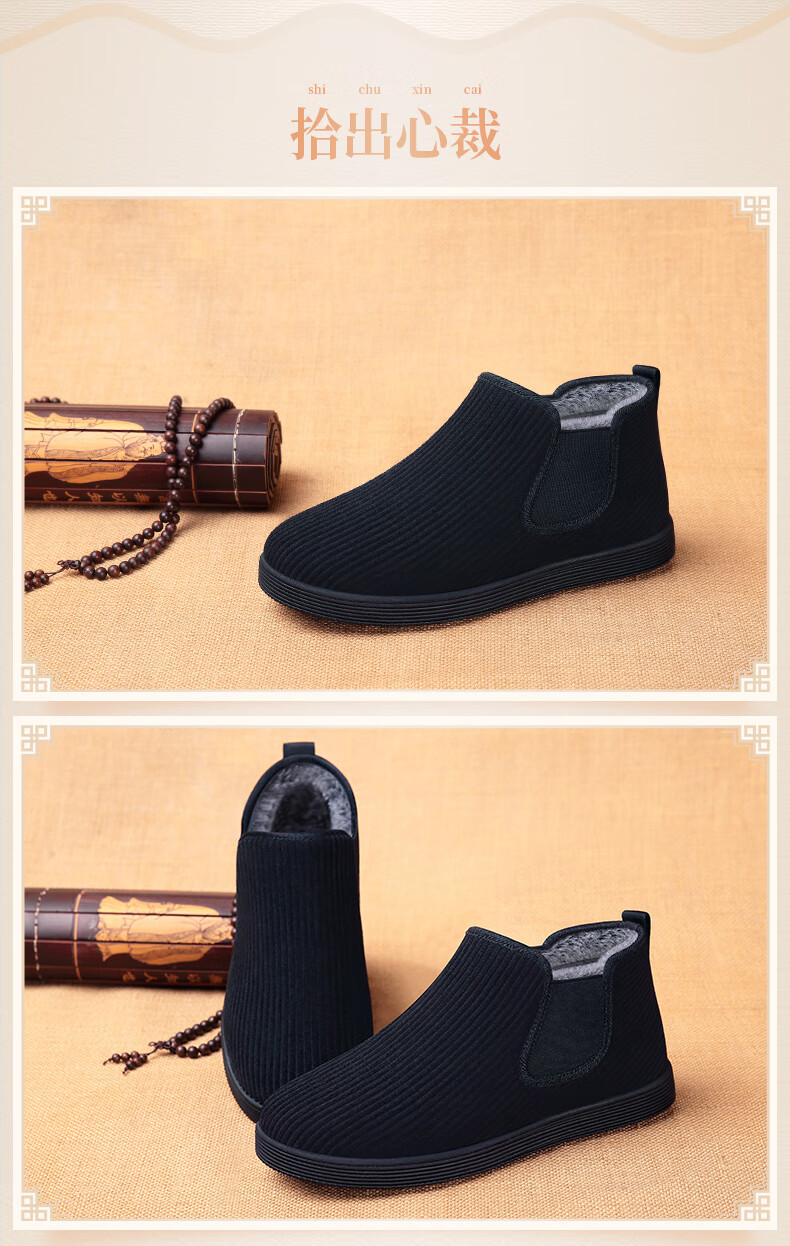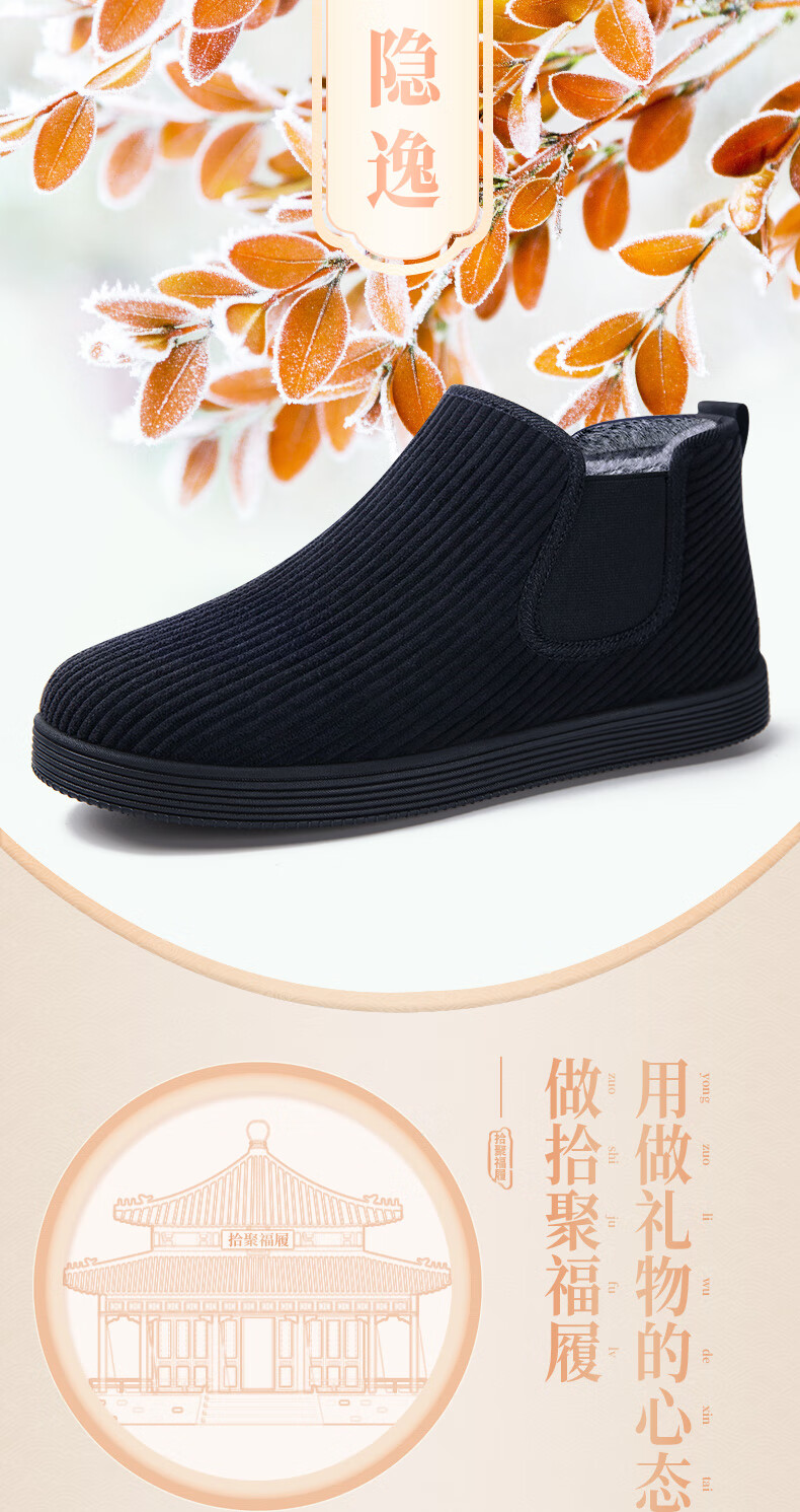 Shiju winter men's shoes plus velvet warm cotton shoes men's old Beijing cloth shoes middle-aged and elderly dad's casual snow boots men's black 40