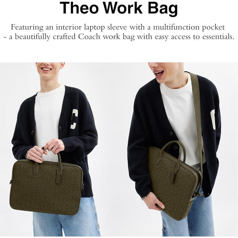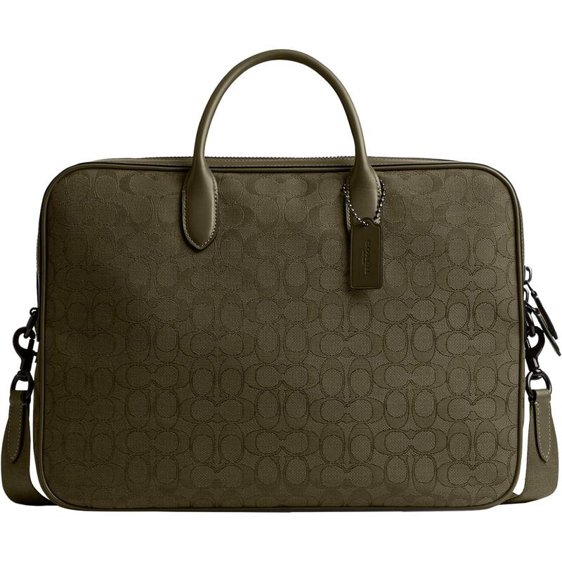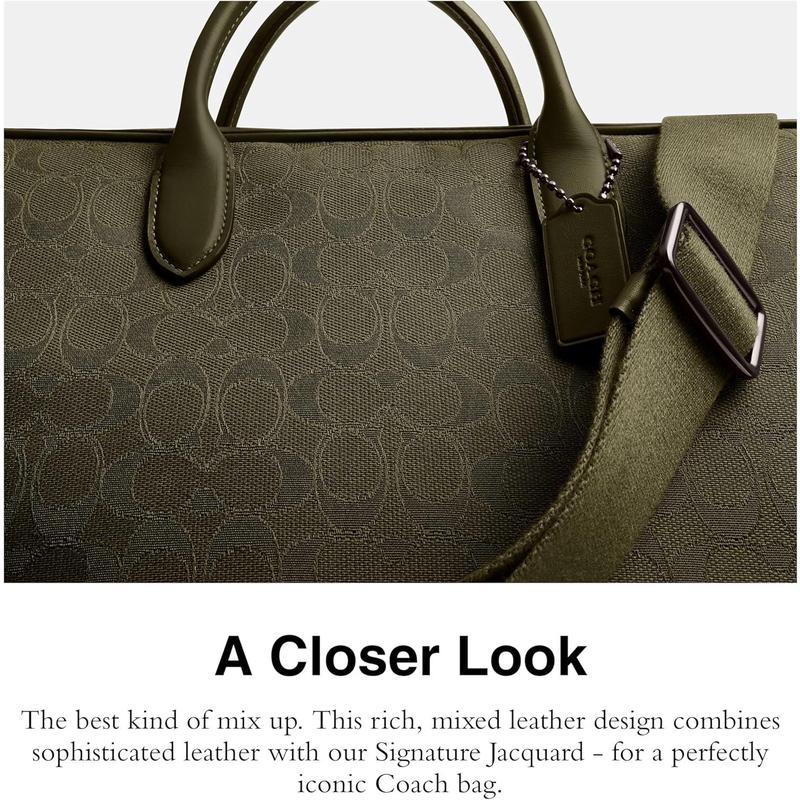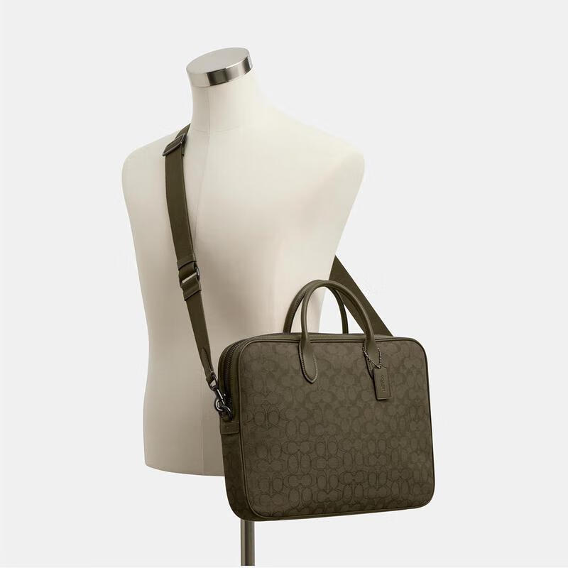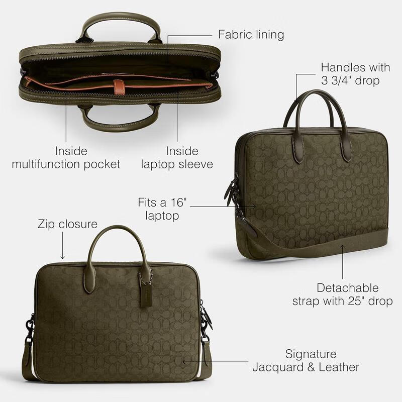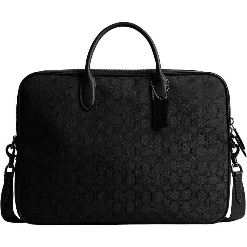 COACH Men's Business Briefcase Multi-compartment Design Built-in Laptop Bag Removable Shoulder Strap Black MEDIUM