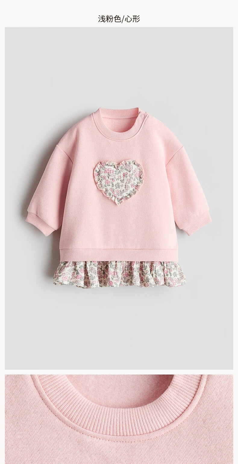 H&M2026 Spring New Children's Clothing Baby Girl Applique Sweater Fabric Dress 1315461 Light Pink/Heart Shape 90 90/52 | 1.5-2Y