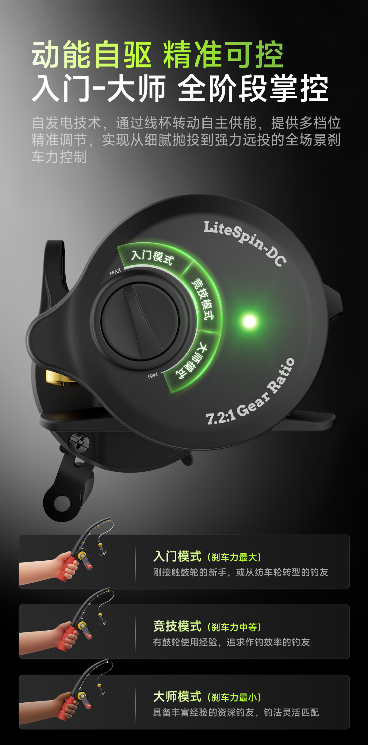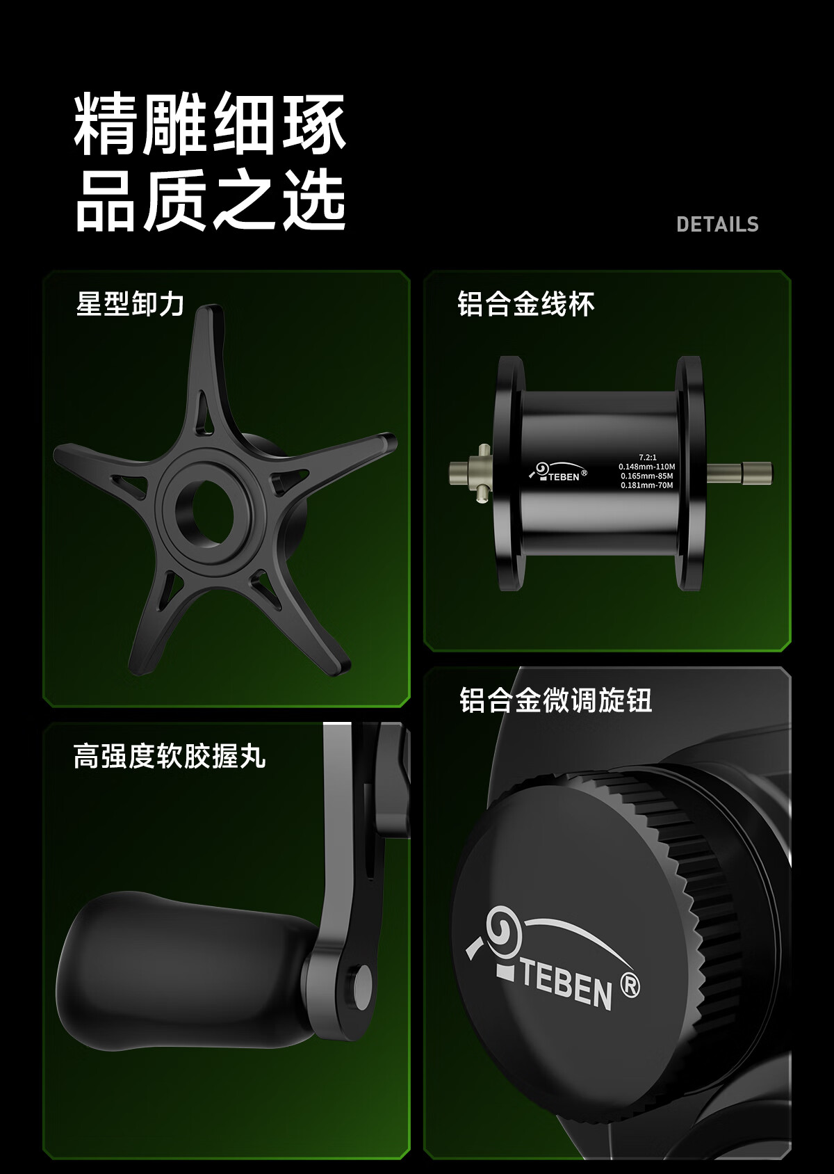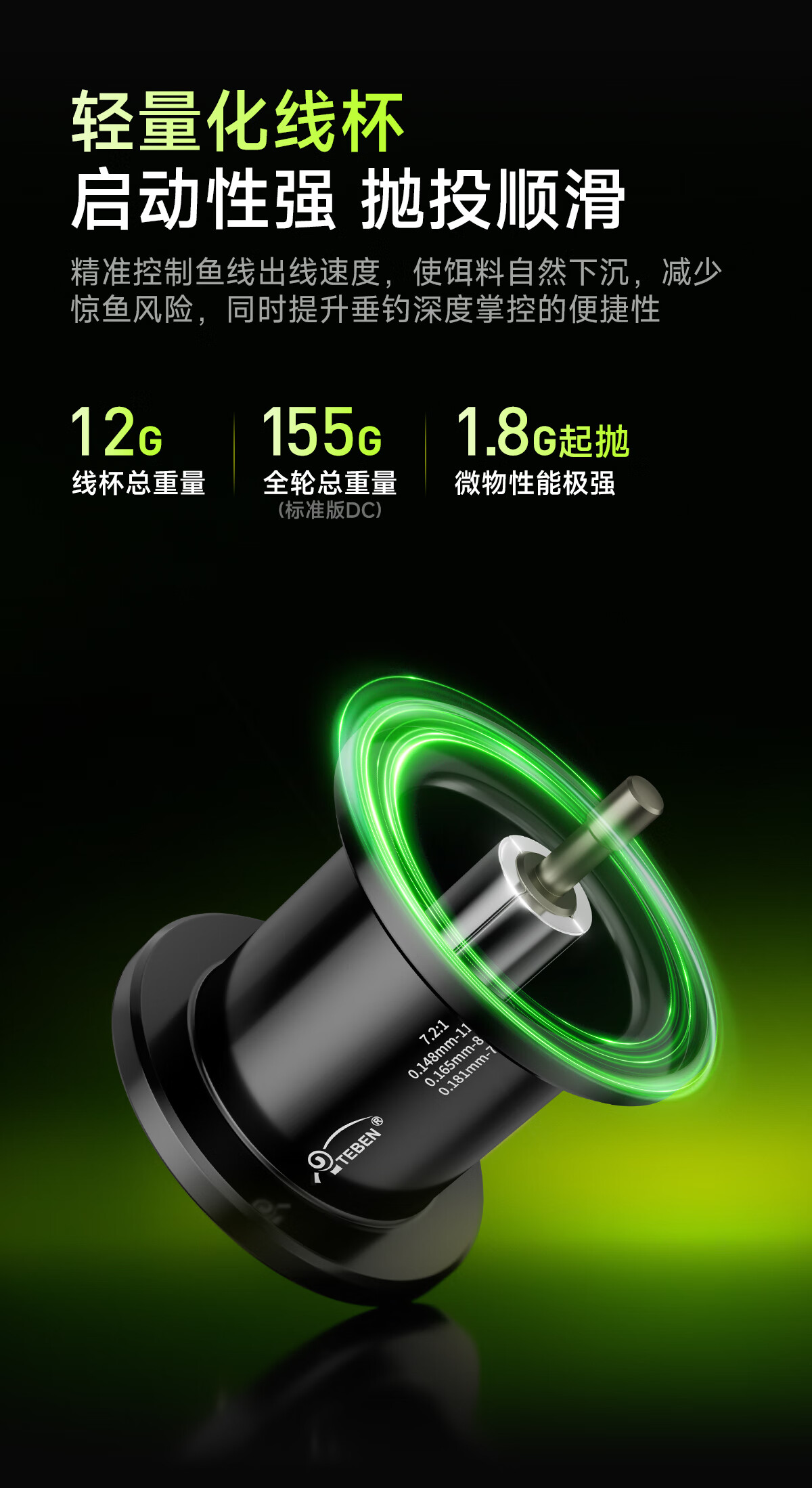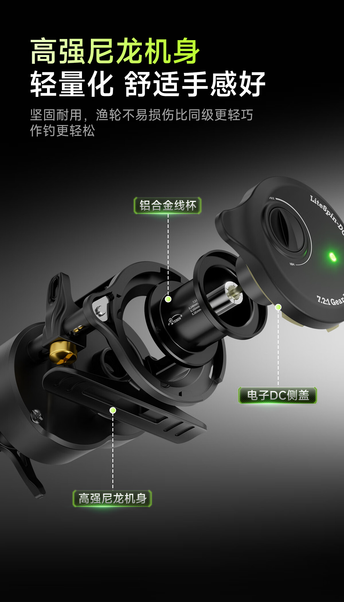 Teben Fishing Gear Linglong DC Drum Intelligent Electronic Brake with Loud Sound Fishing Reel Anti-explosion Line Self-Charging Full Metal Lure Reel Linglong Youth Edition Drum DC with Electronic Brake Left-hand Type