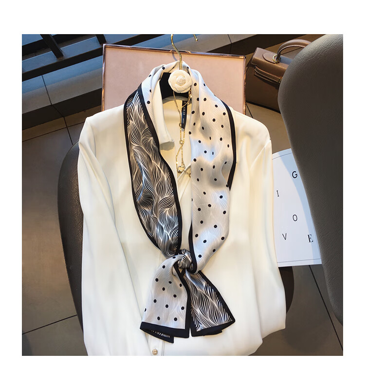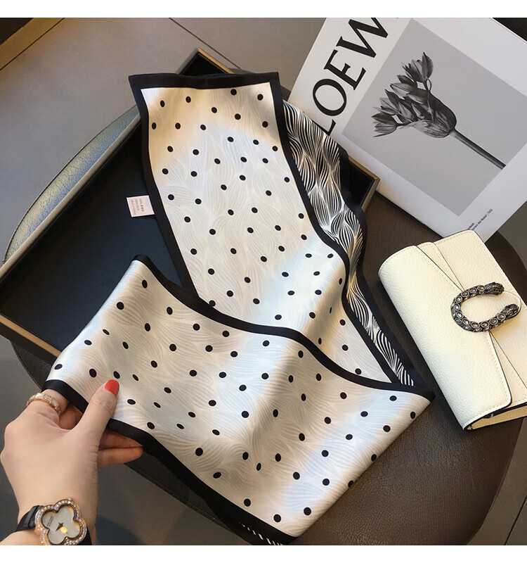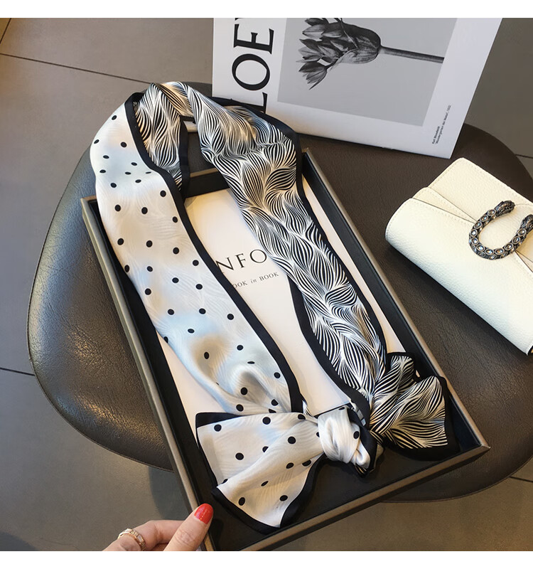 GIAVENTOLA Silk Scarf Women's Mulberry Silk Long Silk Scarf Mother's Day Gift Box for Mother's Birthday Gift for the Elder Girl, Polka Dot Leaves