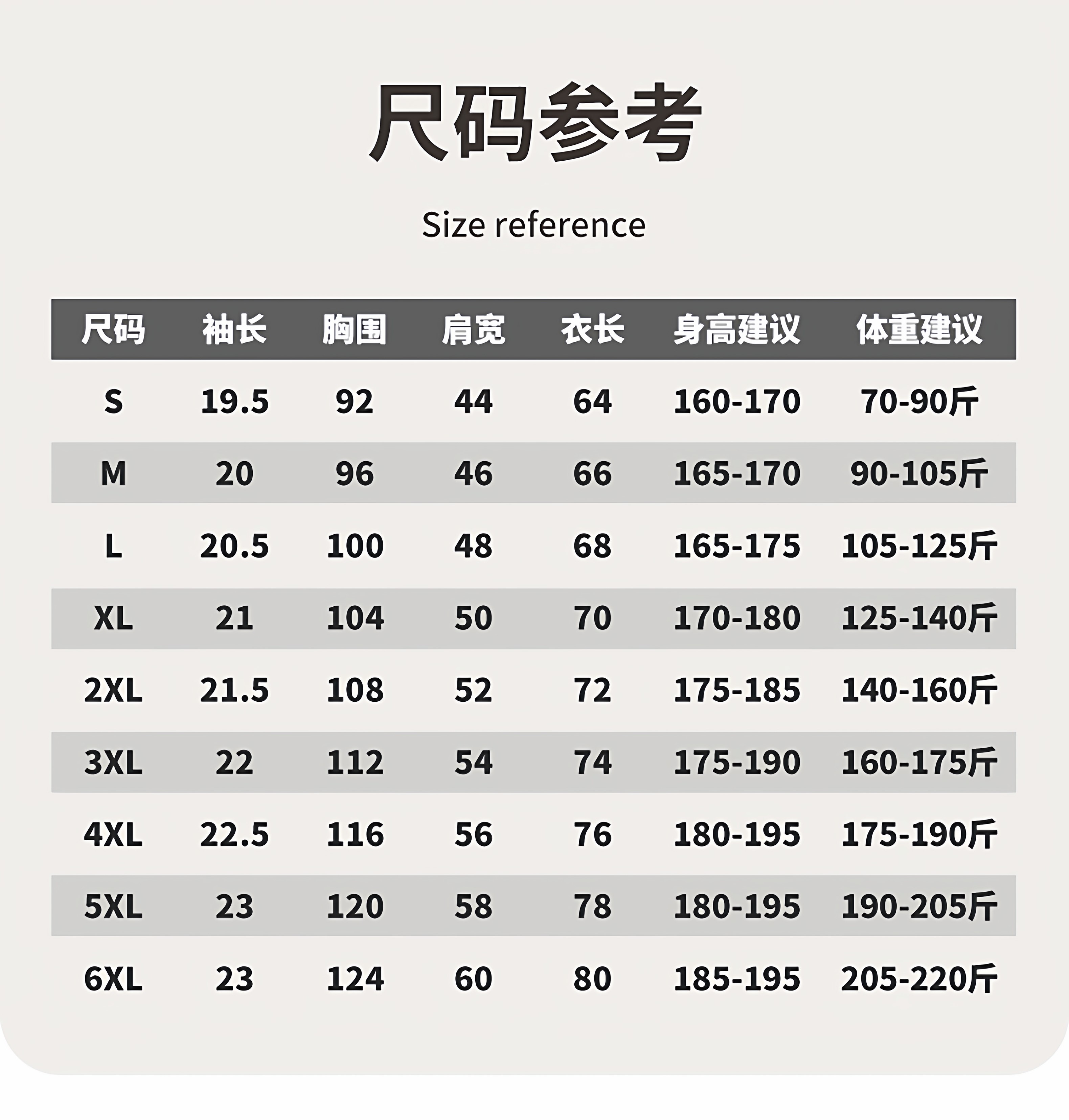 China (cm) 160-165/84-86 165-170 / 88-90 167-172 / 92-96 168-173 / 98-102 170-176 / 106-110