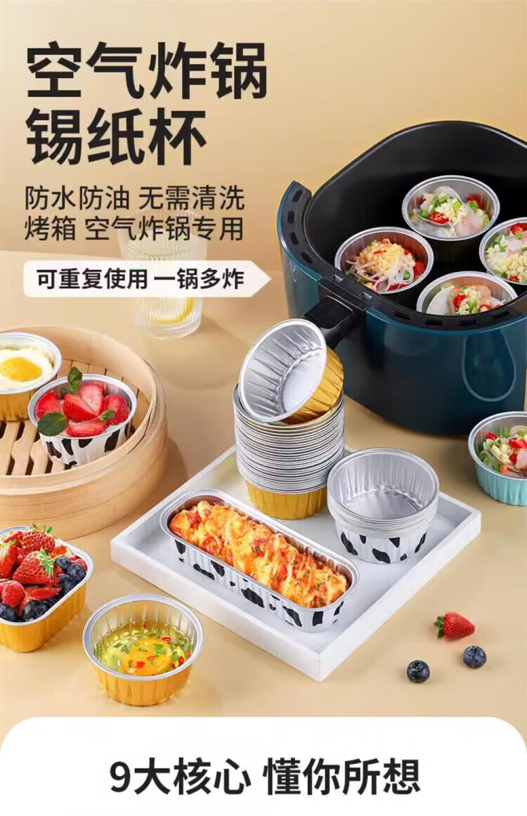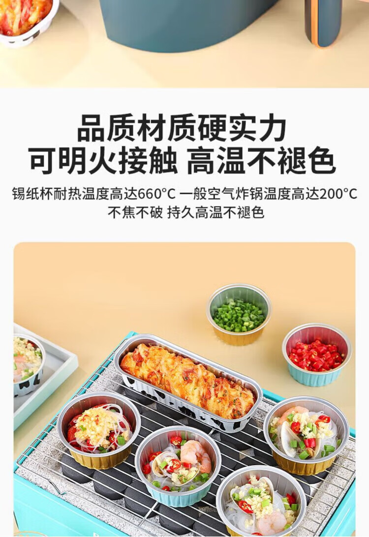 OIMG German quality reusable aluminum foil tin foil bowl for home air fryer oven special cake pudding, anti-bake and anti-scorch mixed color 60 pieces