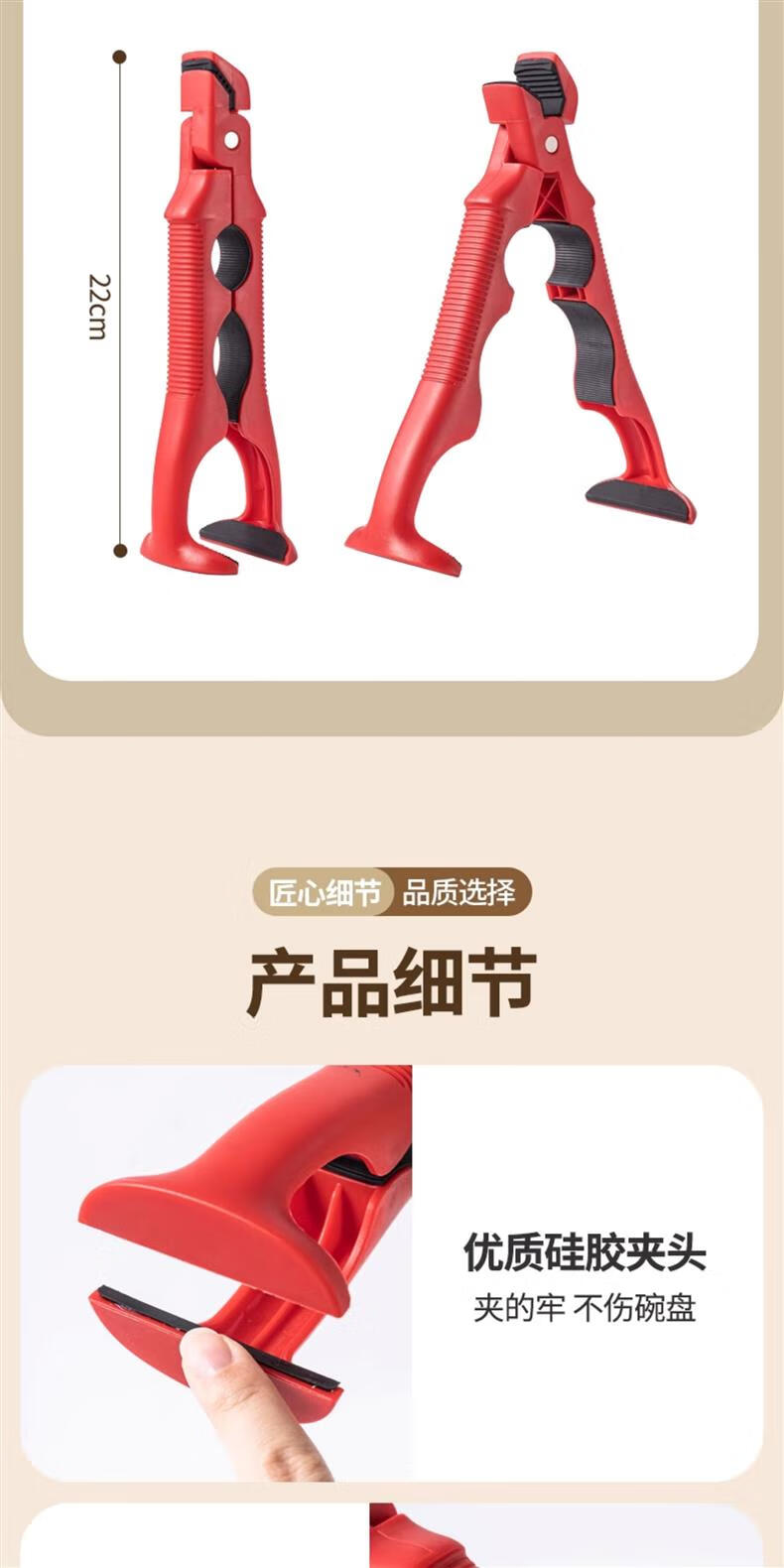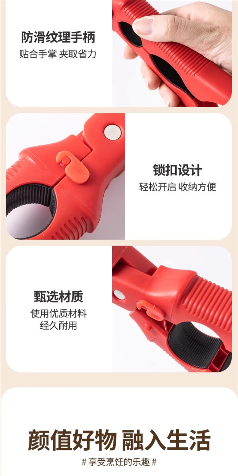 ZOZX Japanese three-in-one anti-scalding bowl clip, anti-slip clip, kitchen chuck clip, steamed vegetable insulated tray clip and bowl clip, true red + milk white, 1 each