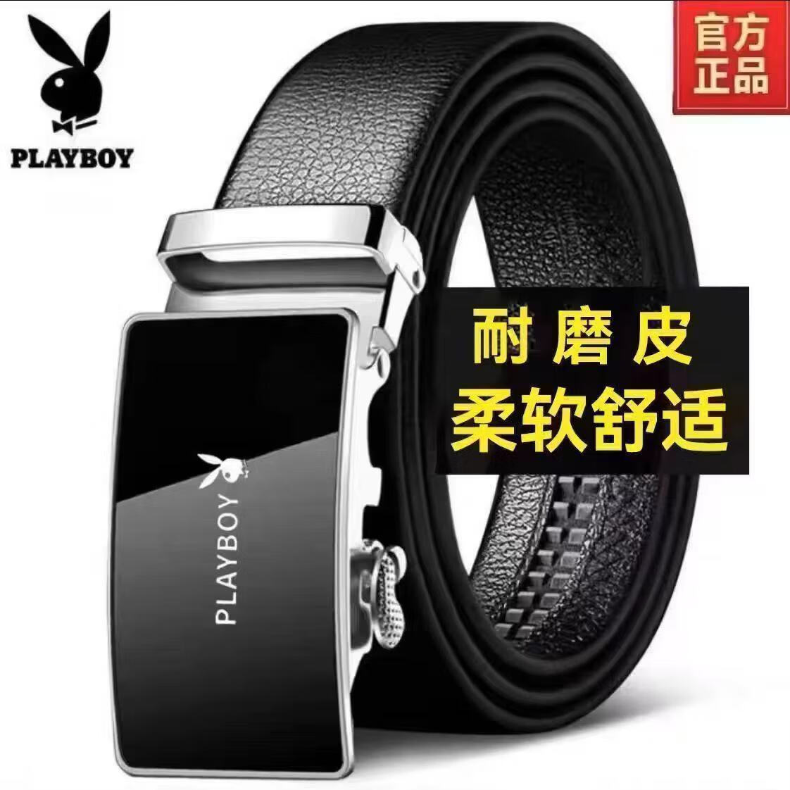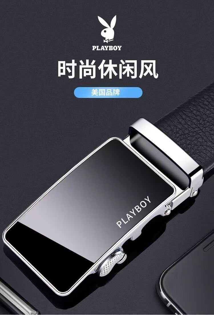 Playboy popular men's belt lazy automatic casual soft leather belt casual men's belt durable silver bilateral triangle 120cm suitable for 130-170 Jin Jin equals 0.5 kg can be cut