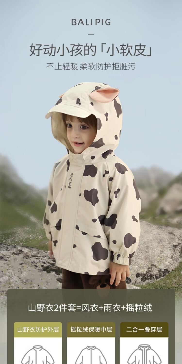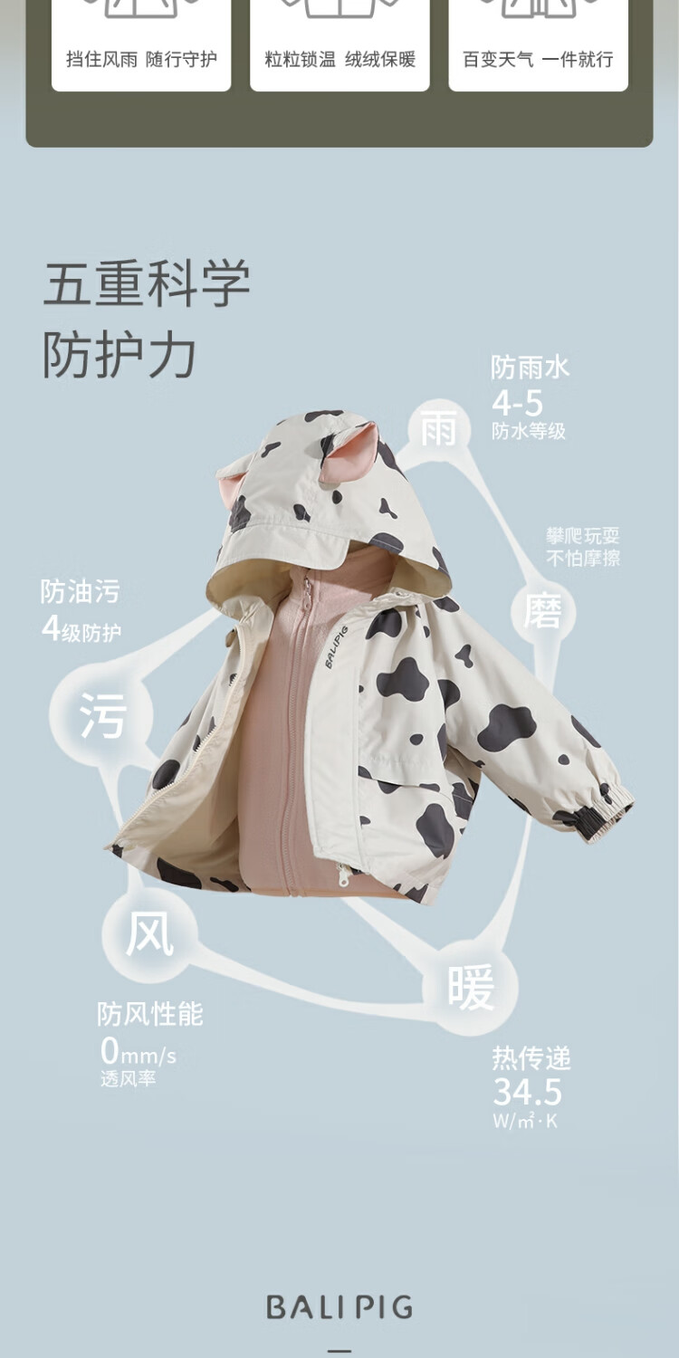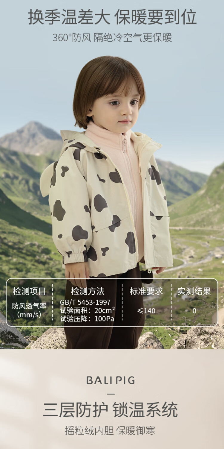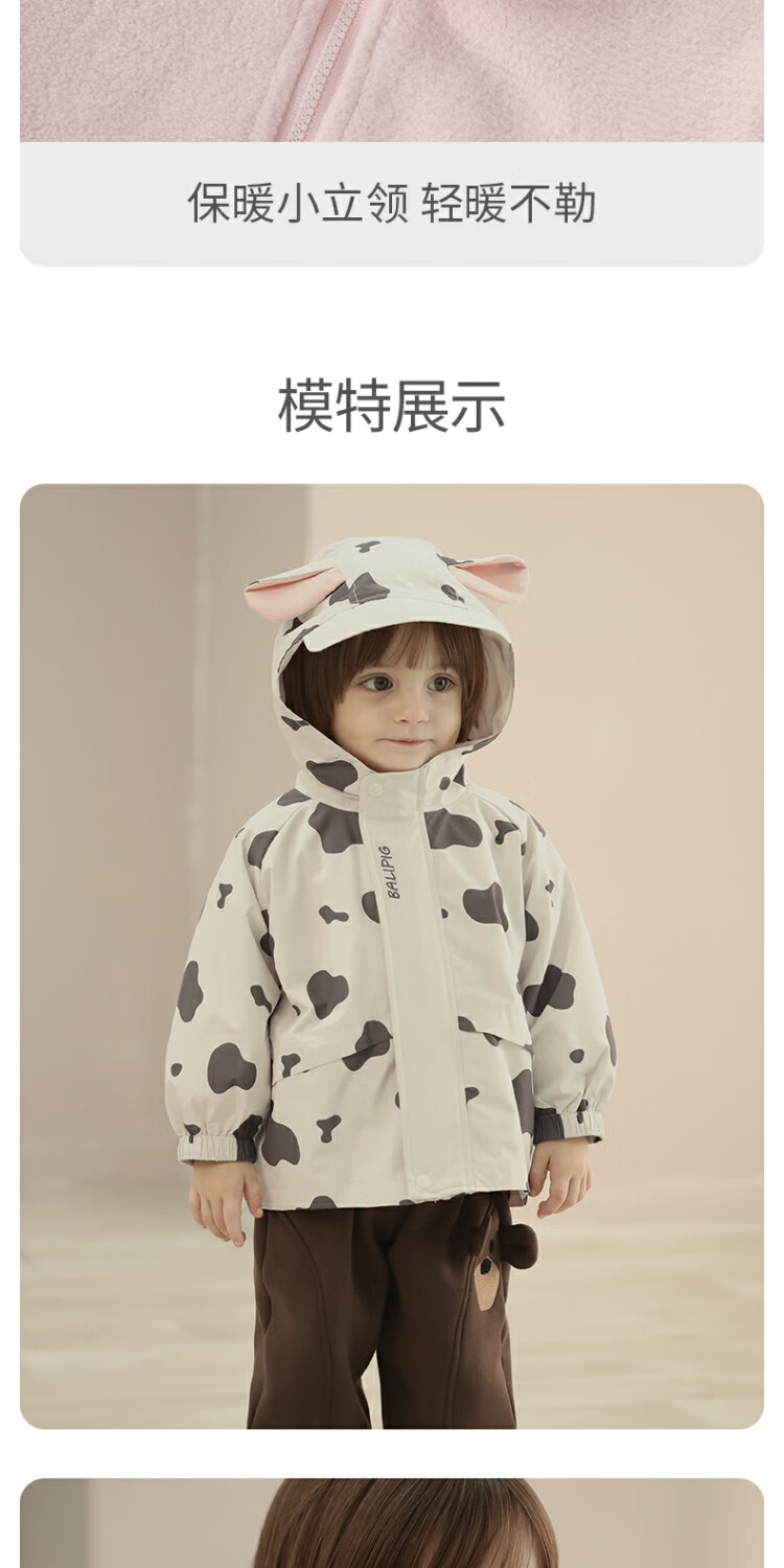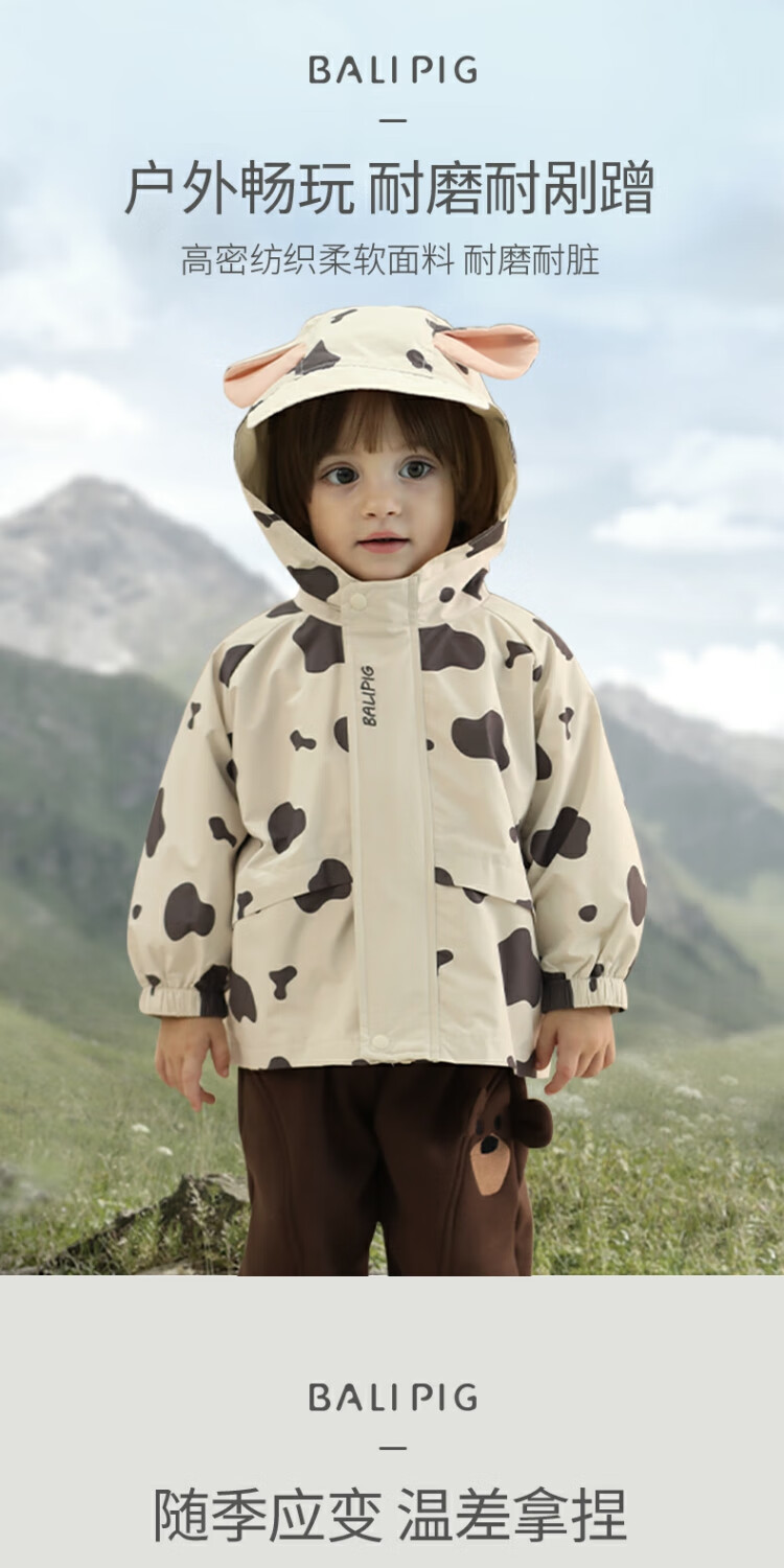 Bali Piggy Baby Charge Jacket Three-in-One Children's Autumn and Winter Thickened Warm Windproof Jacket Super Cute Top for Boys and Girls Little Cow 100