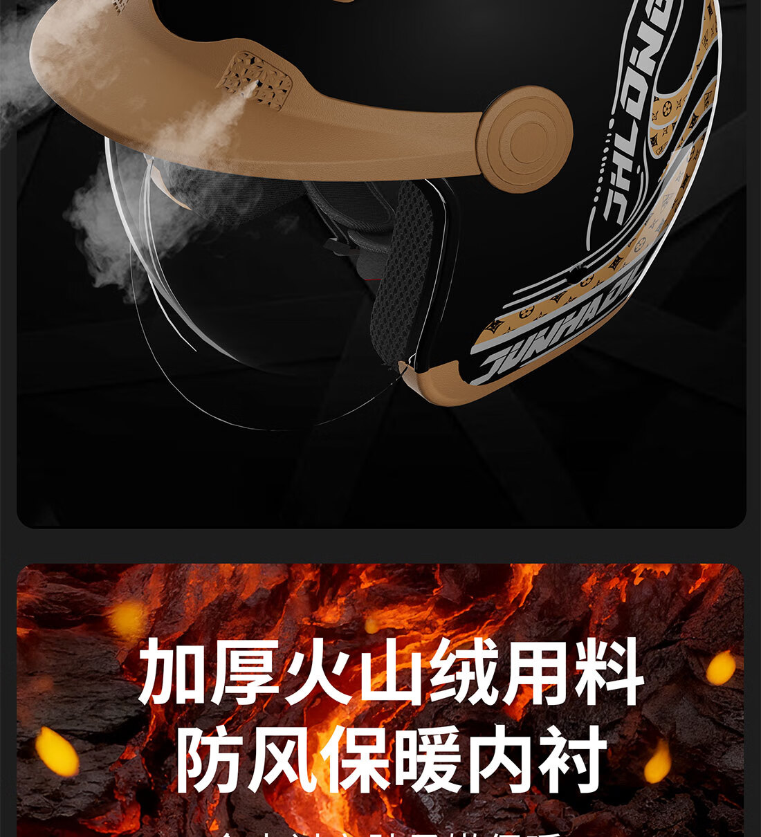 JHLONG URBANSTYLE HELMET electric vehicle helmet winter anti-freeze and warm large head circumference men's large size new 3c certified battery vehicle all-season helmet 3c certified Class A BLSJ bright black high-definition lens (comes with anti-fog agent) one-size-fits-all head circumference 54-64