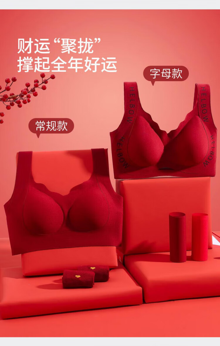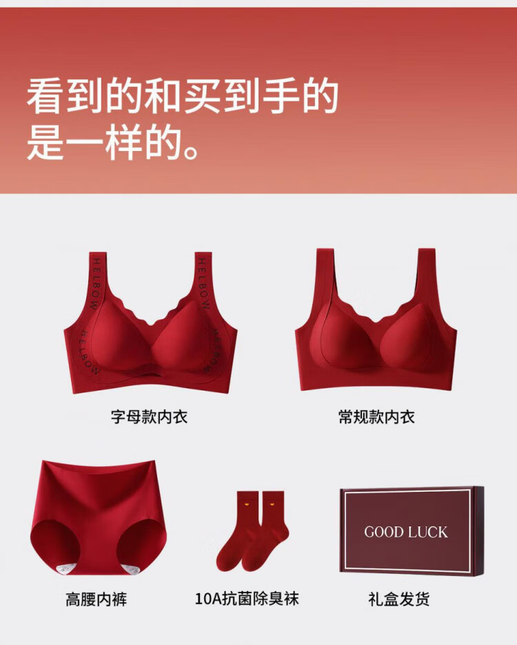 Modal Zodiac Year Red Underwear Ladies Set Gathered 2026 Year of the Horse Bride Wedding Seamless Bra Gift Box Set Letter Style Single Set + Gift Box + Socks L 100-115Jin Jin is equal to 0.5 kg