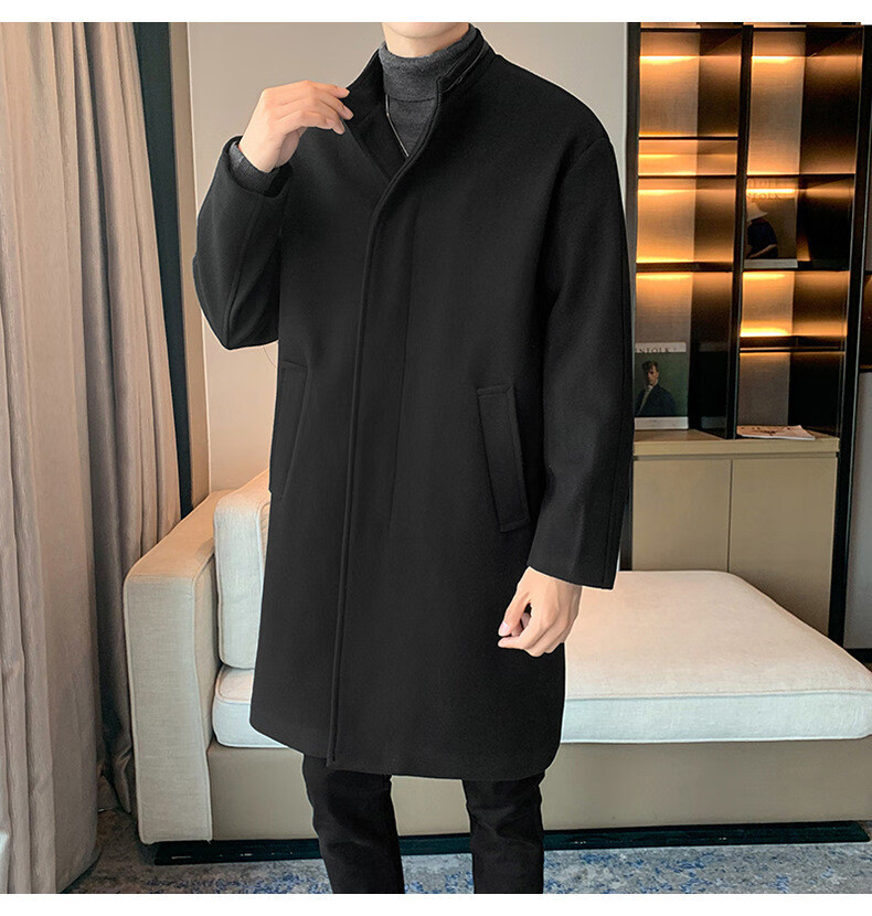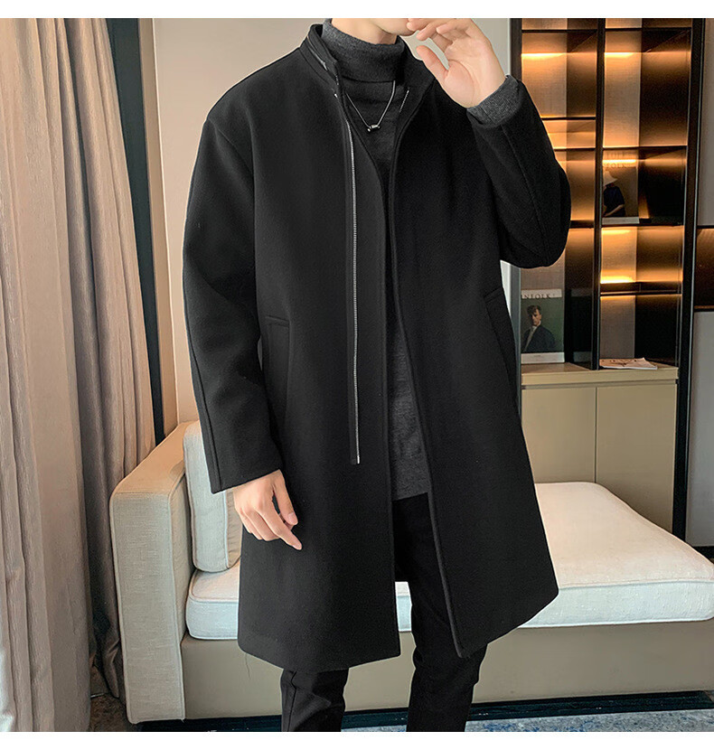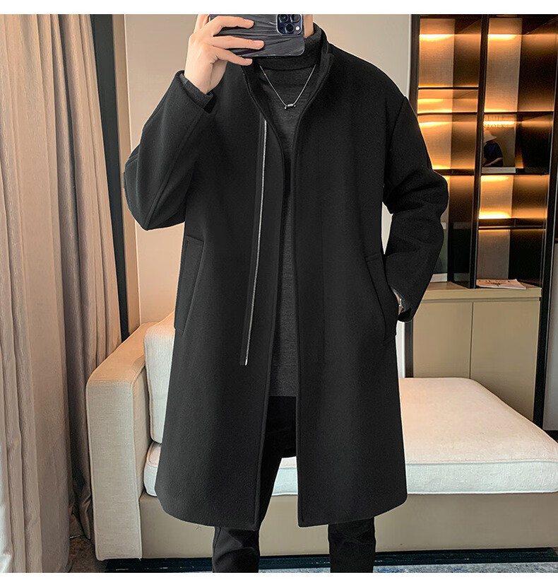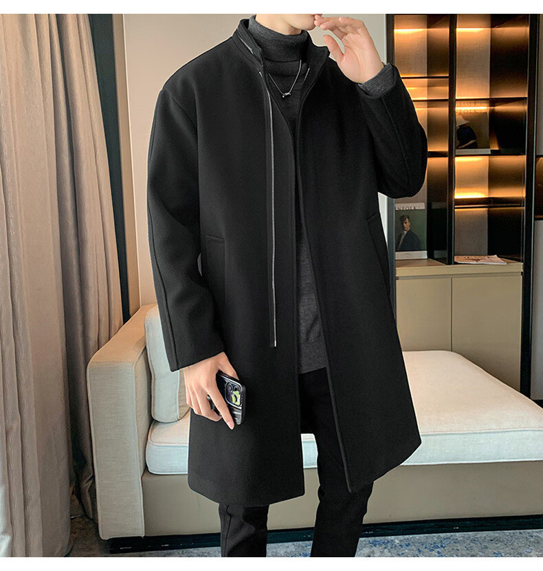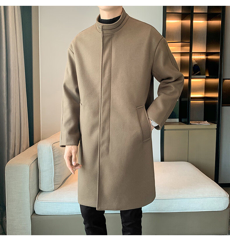 JEEP SPIRIT Spring and Autumn Zipper Design Stand Collar Woolen Windbreaker Men's Mid-Length Thick Casual Woolen Coat Jacket Trendy Coffee and Cotton 2XL