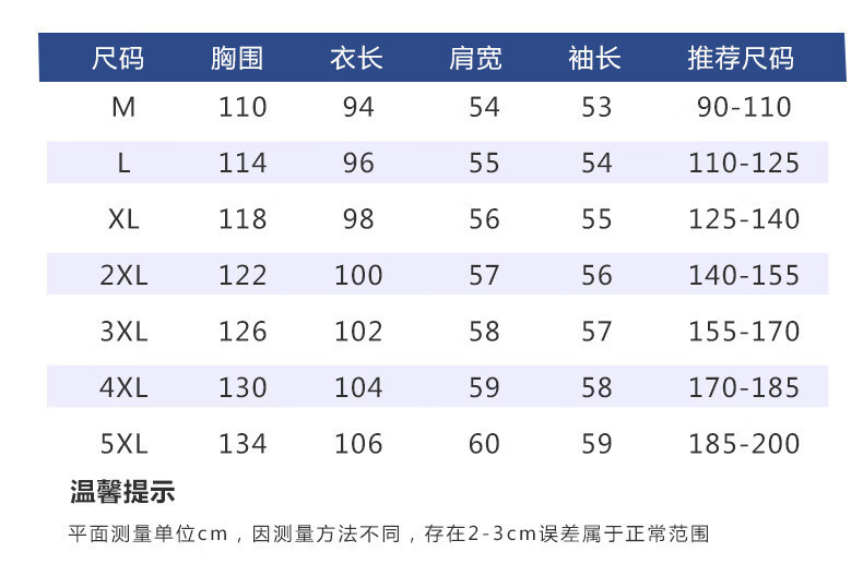 China (cm) 165 / 88-90 170 / 96-98 175 / 108-110 180 / 118-122 185 / 126-130